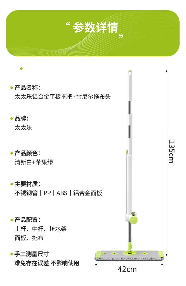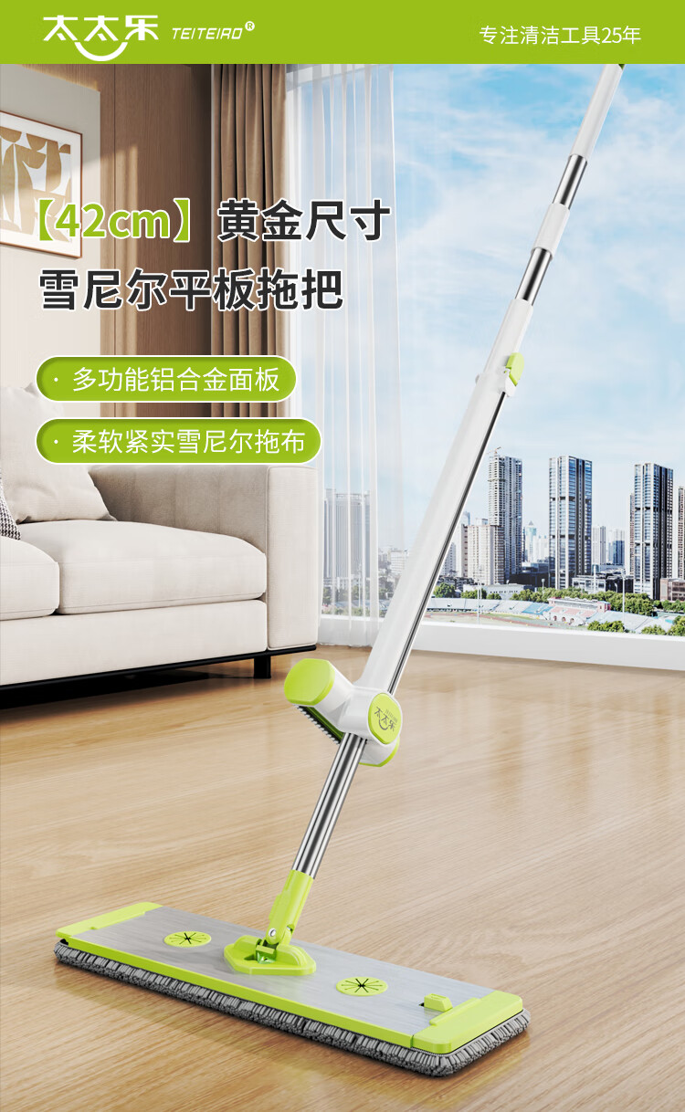太太乐雪尼尔铝合金平板拖把家用一拖净免手洗干湿两用懒人拖地吸水神器 【雪尼尔拖把】42cm铝面板*3布