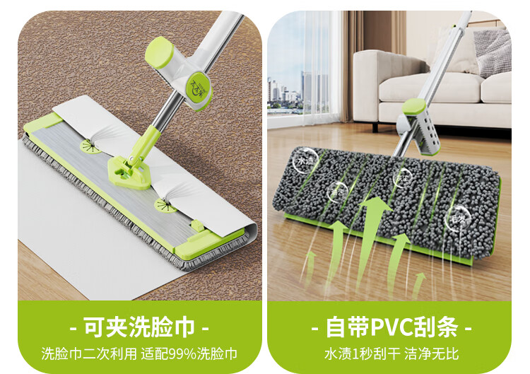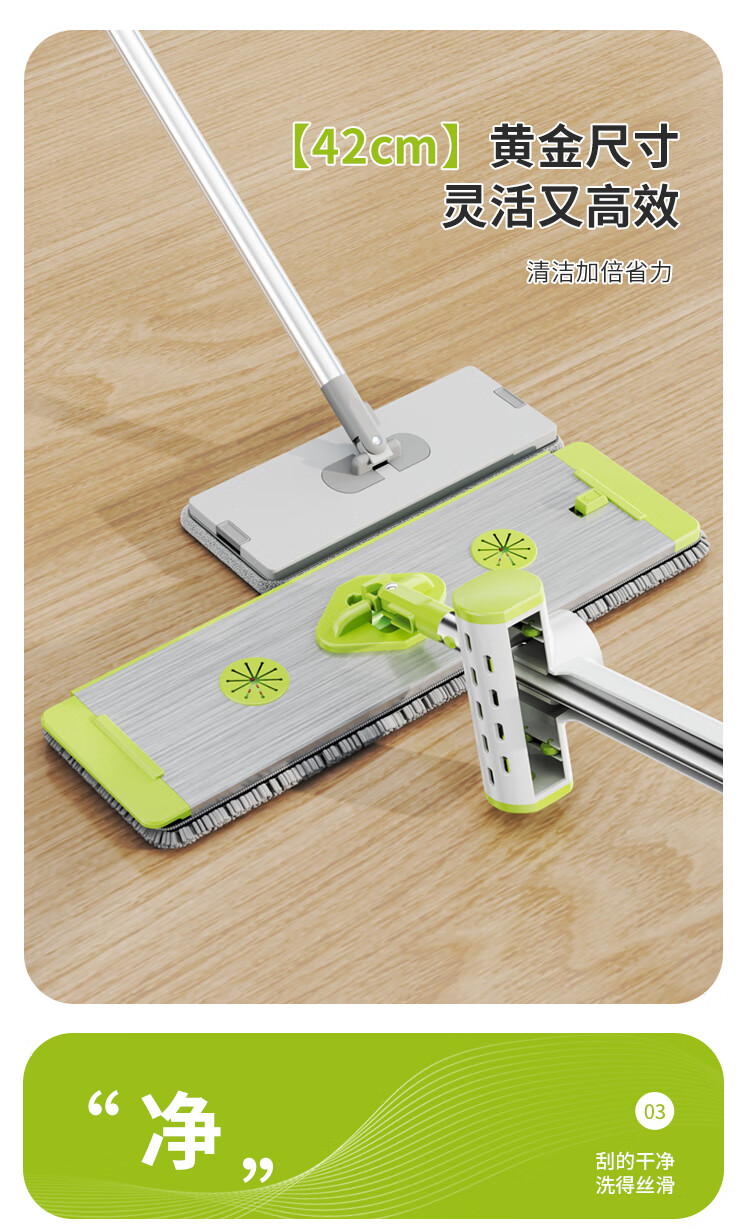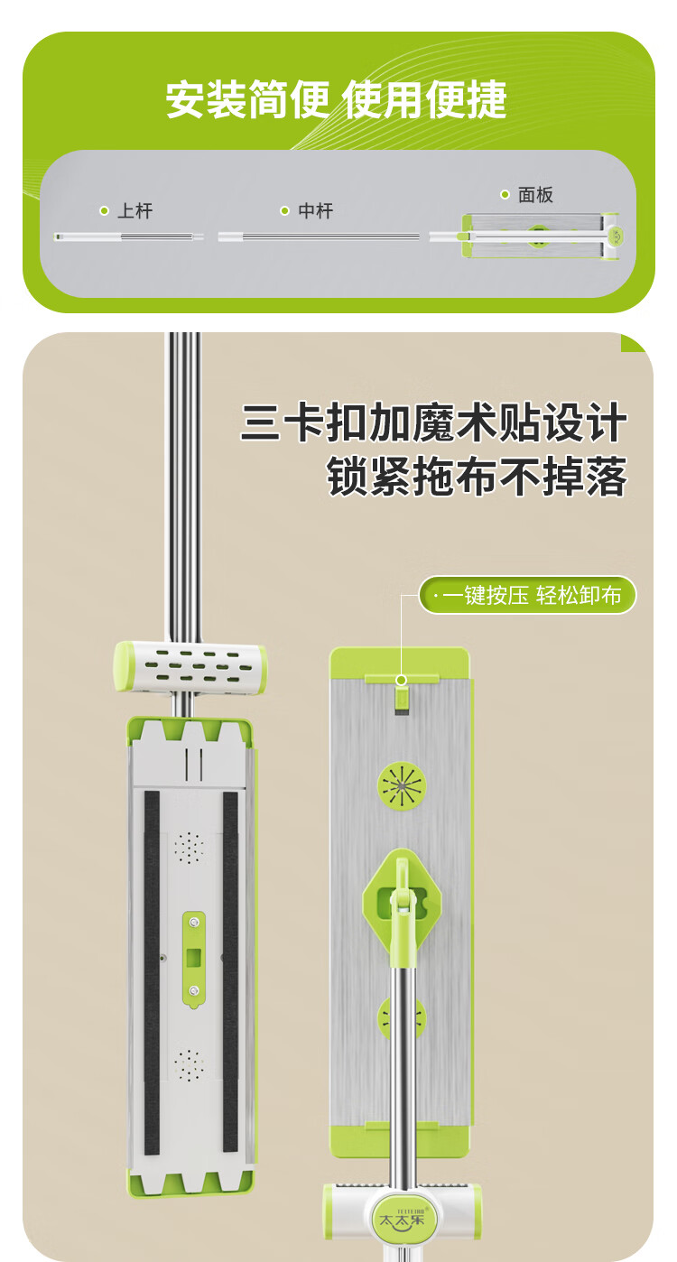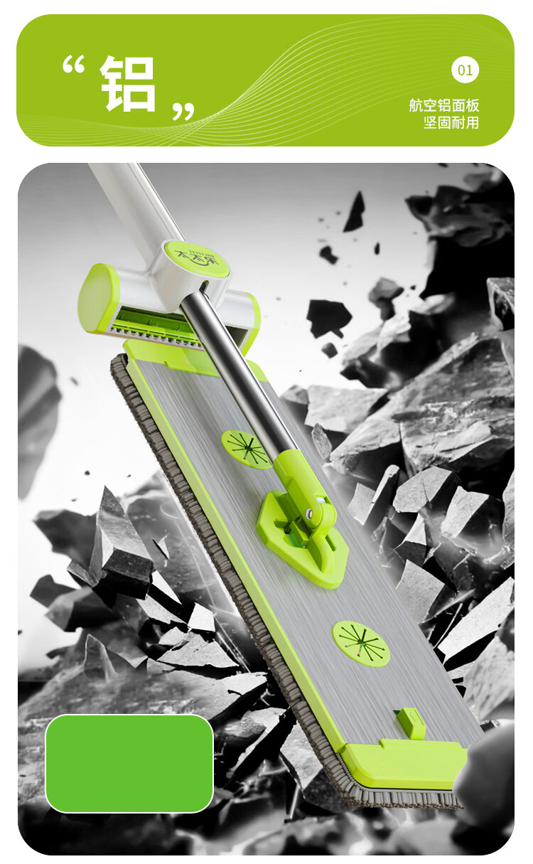 太太乐免手洗拖把平板家用一拖净2024大号拖布干湿两用拖地墩布铝合金板 太空铝板45cm+加粗刚杆+共5块布 45cm