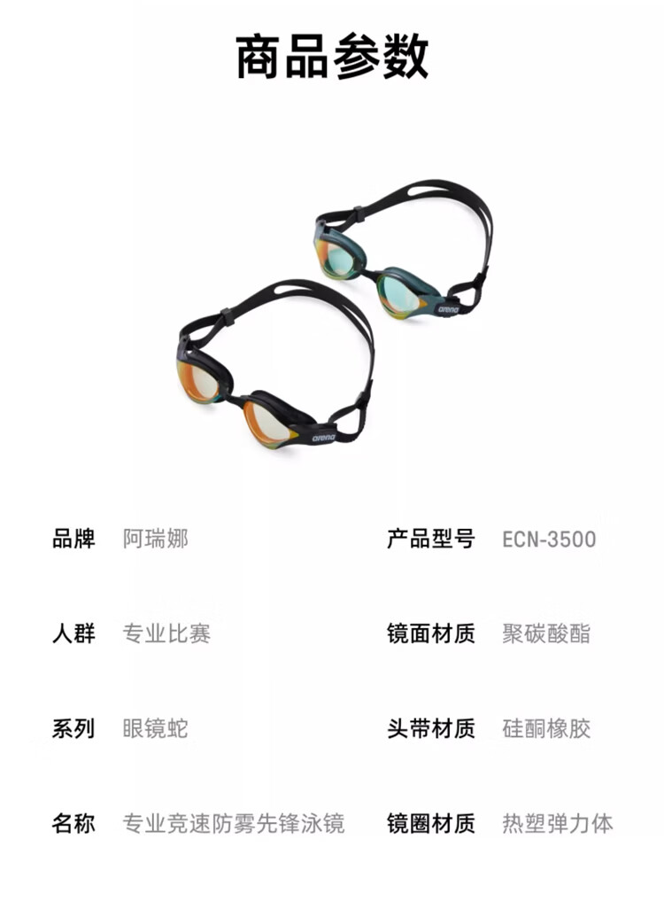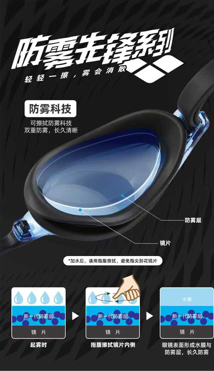 阿瑞娜(arena)进口防雾先锋徐嘉余同款游泳镜眼镜蛇专业游泳装备镜不起雾男女士 黑色(BLK)