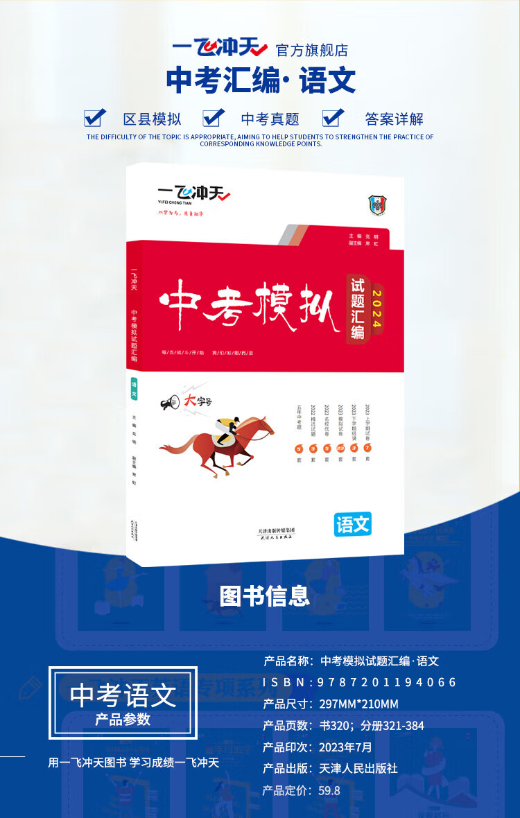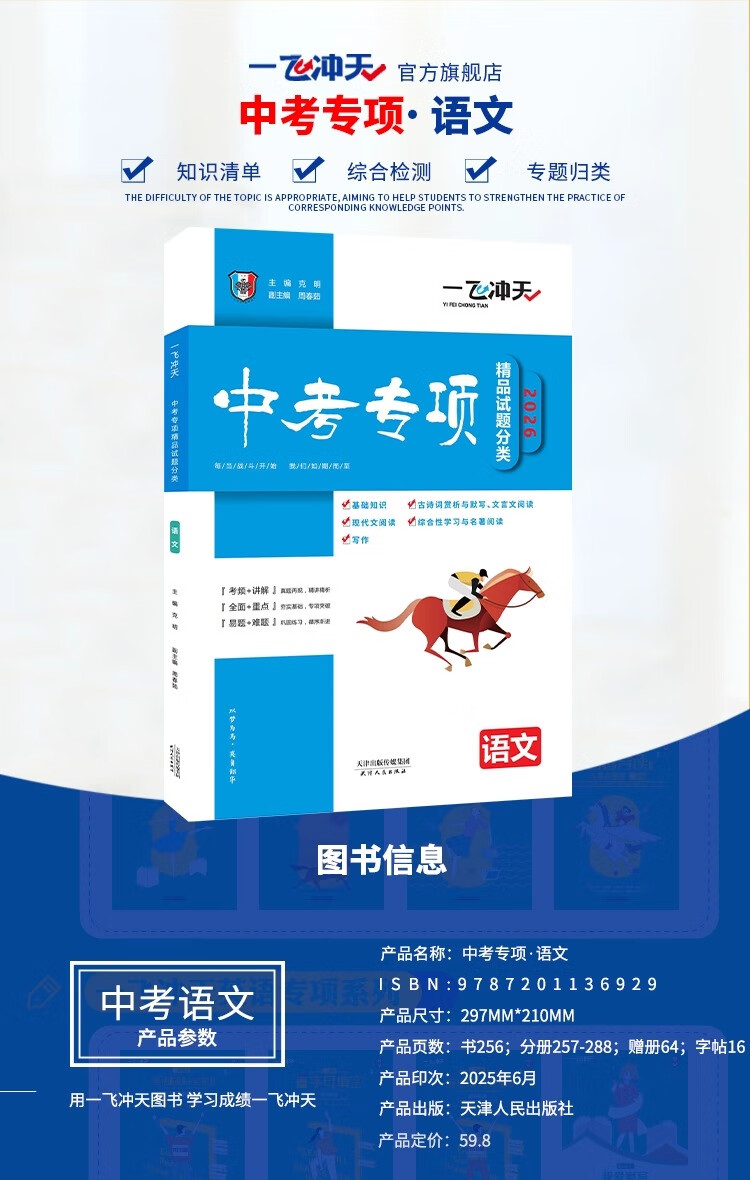 【新华书店正版 极速发货】2026一飞冲天中考模拟试题汇编真题卷全套 一飞冲天2026天津中考 中考分类集训卷 中考专项总复习 天津历年真题试卷初三九年级 一飞冲天2026中考汇编 语数英物化史政7本