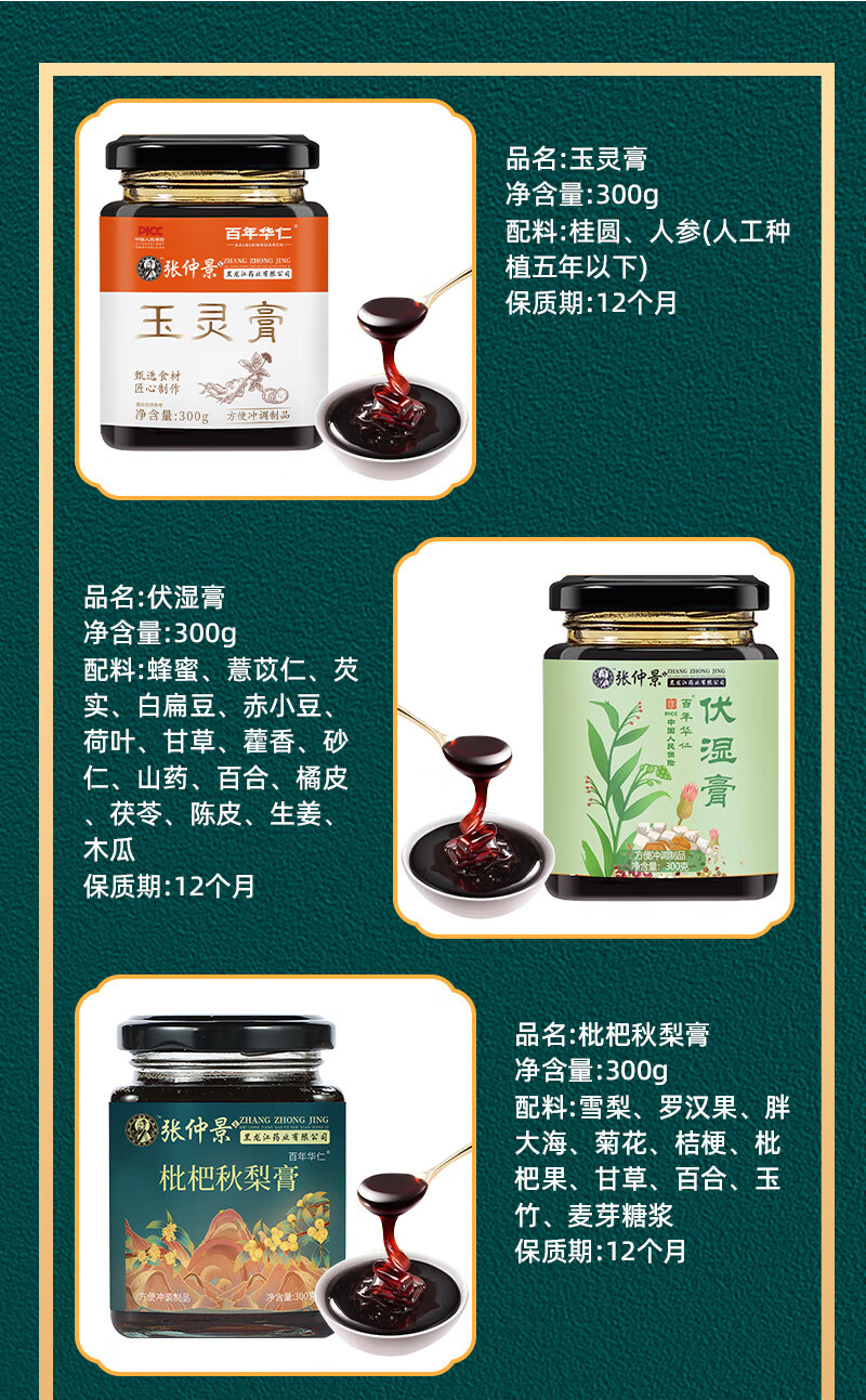 张仲景膏滋枇杷秋梨膏玉灵膏伏湿膏鹿鞭膏酸枣仁膏 枇杷秋梨膏300克1瓶