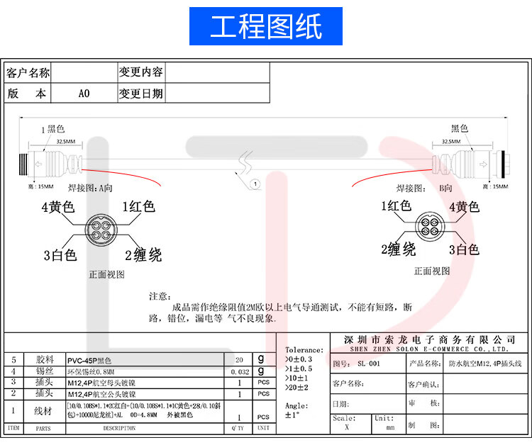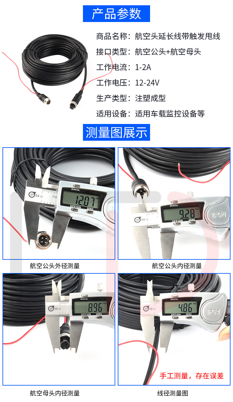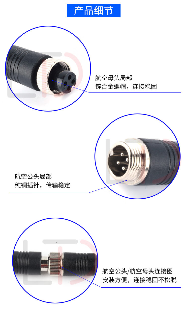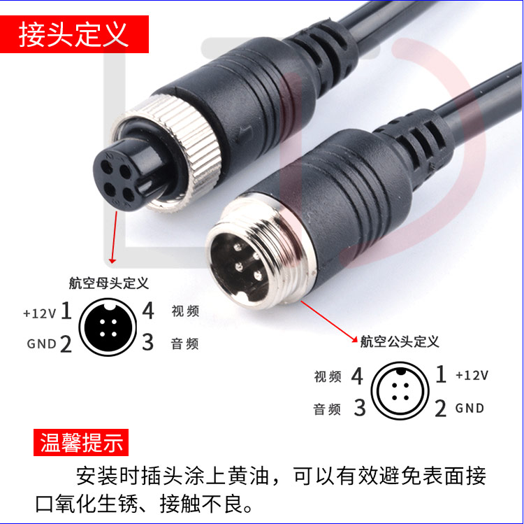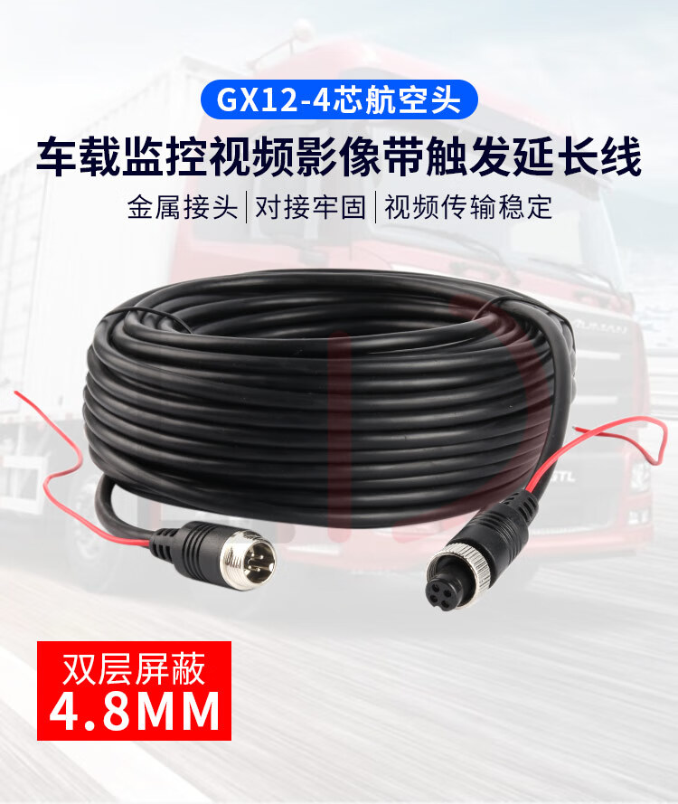 山头林村倒车影像线连接线通用半挂车货车四路监控摄像头视频航空头延长线 4.8mm航空线带触发1米