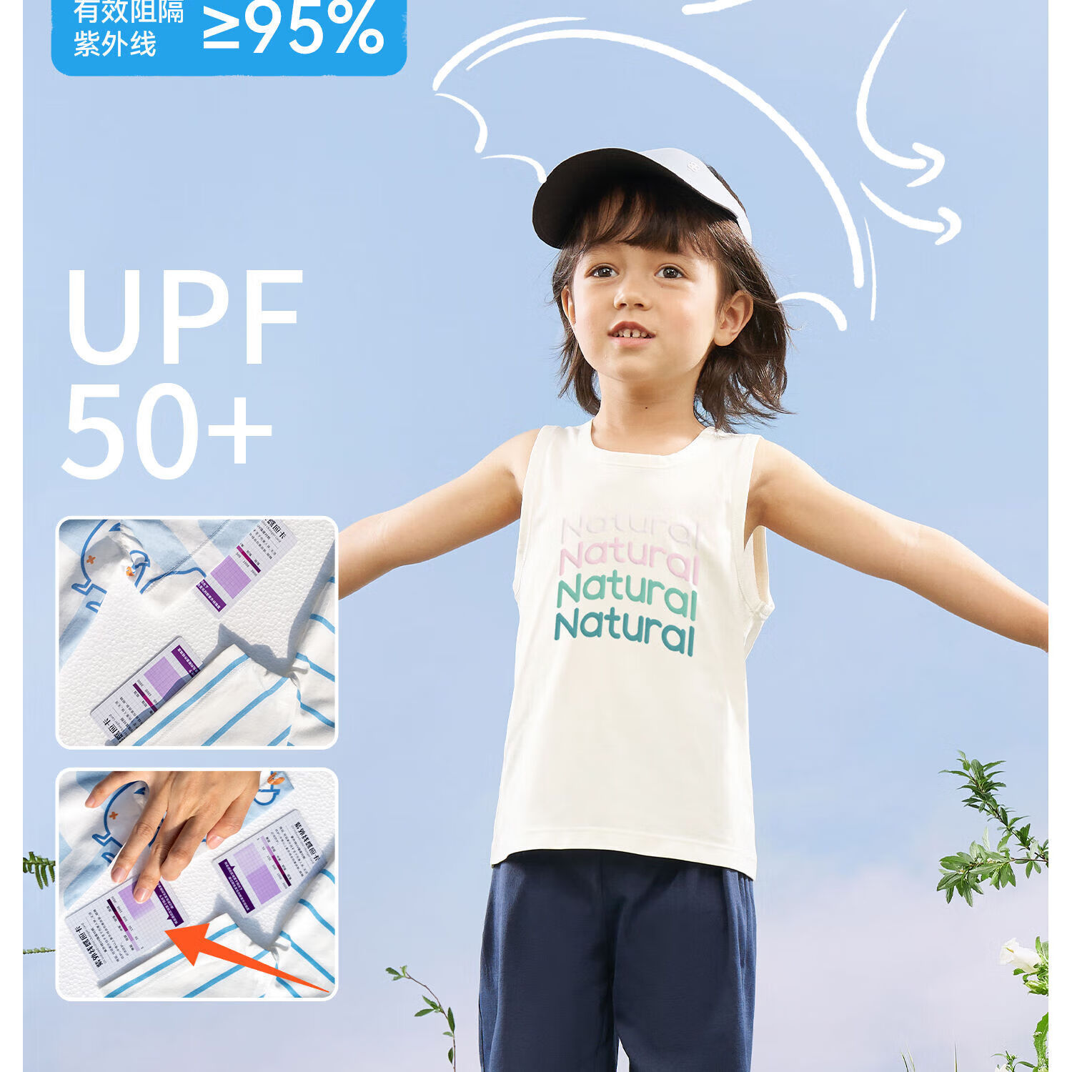 aqpa【UPF50+】儿童背心夏季宝宝衣服速干上衣防晒婴儿内穿 云母 110