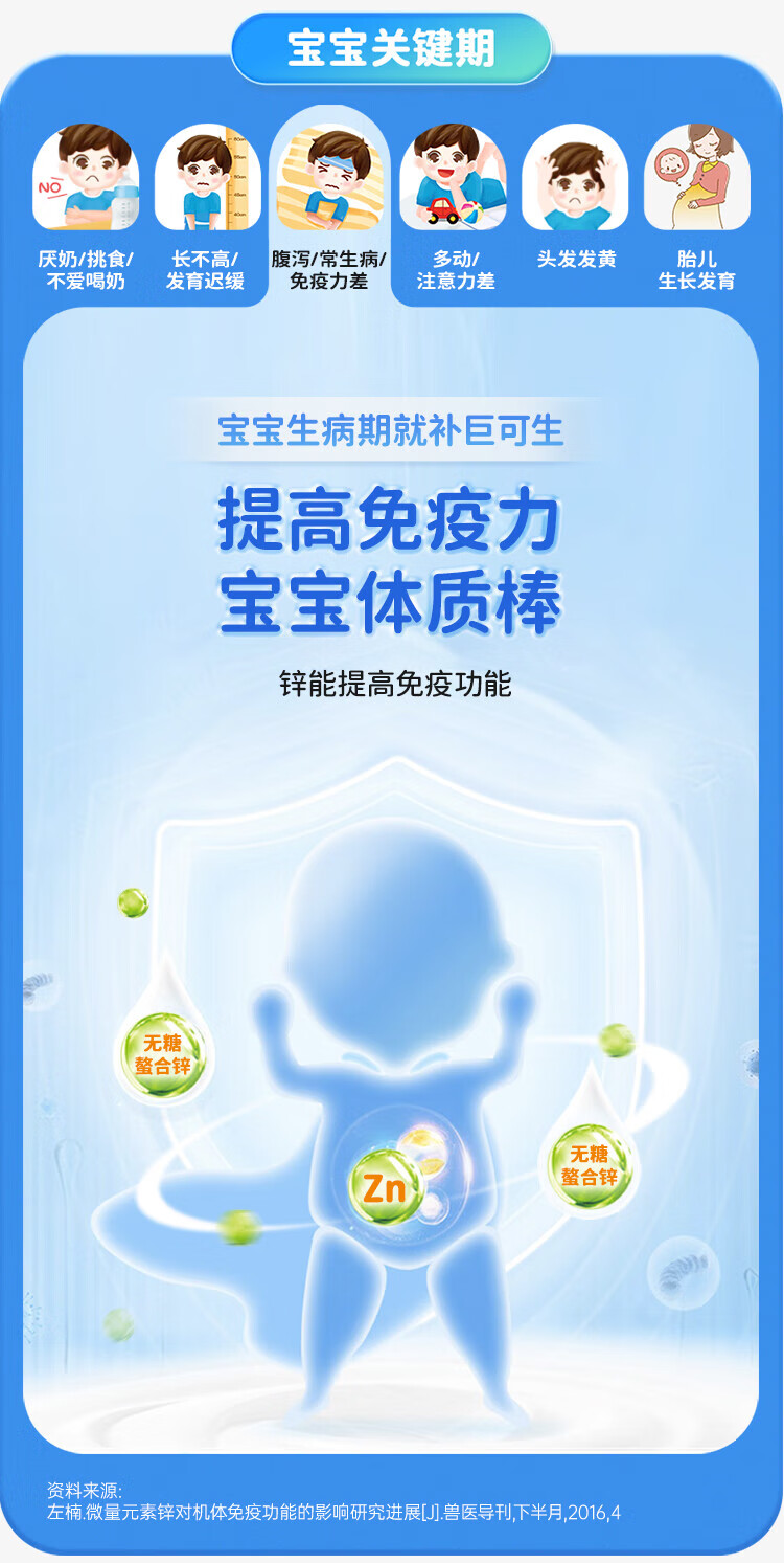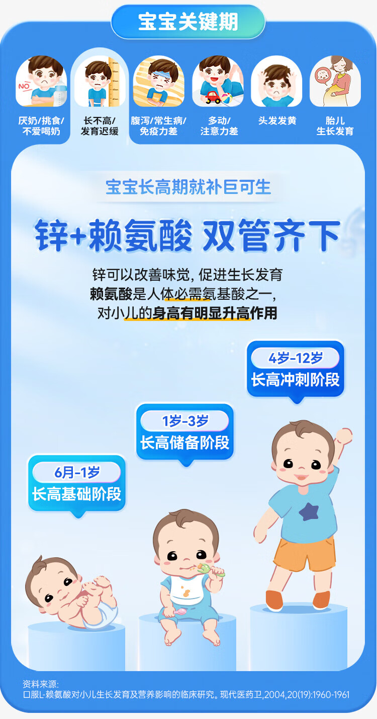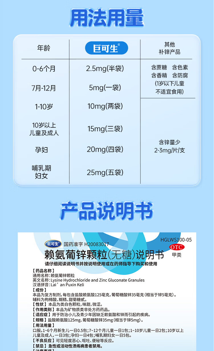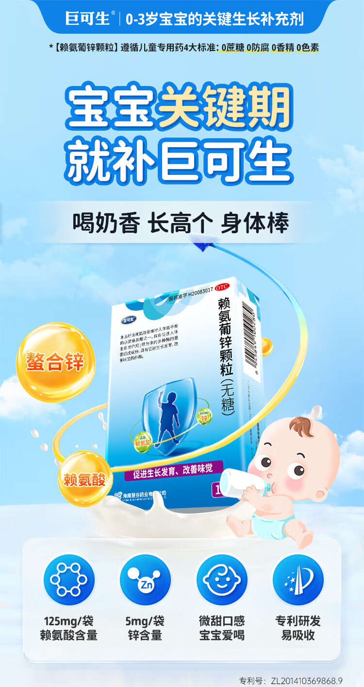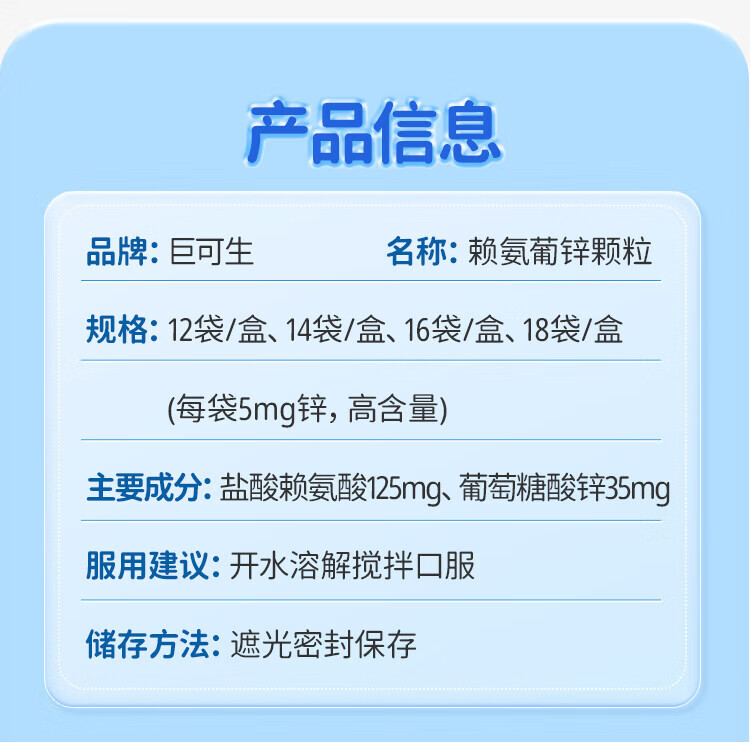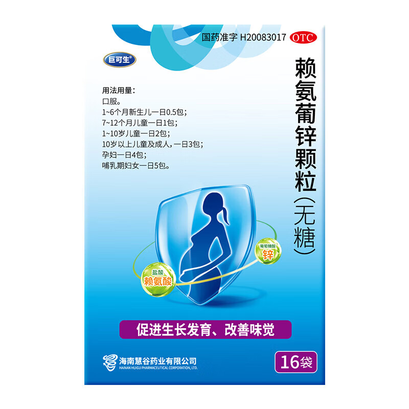 [巨可生]赖氨葡锌颗粒 巨可生 无糖补锌 儿童孕妇宝宝补充赖氨酸锌otc 0.125g:35mg*16袋 4盒装 【64袋】