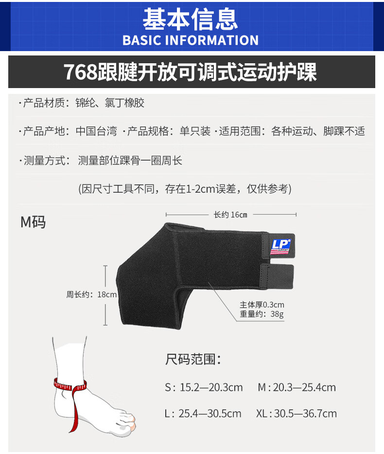 LP768可调节护踝运动扭伤防护足关节崴脚加压固定跑步强防护型 M