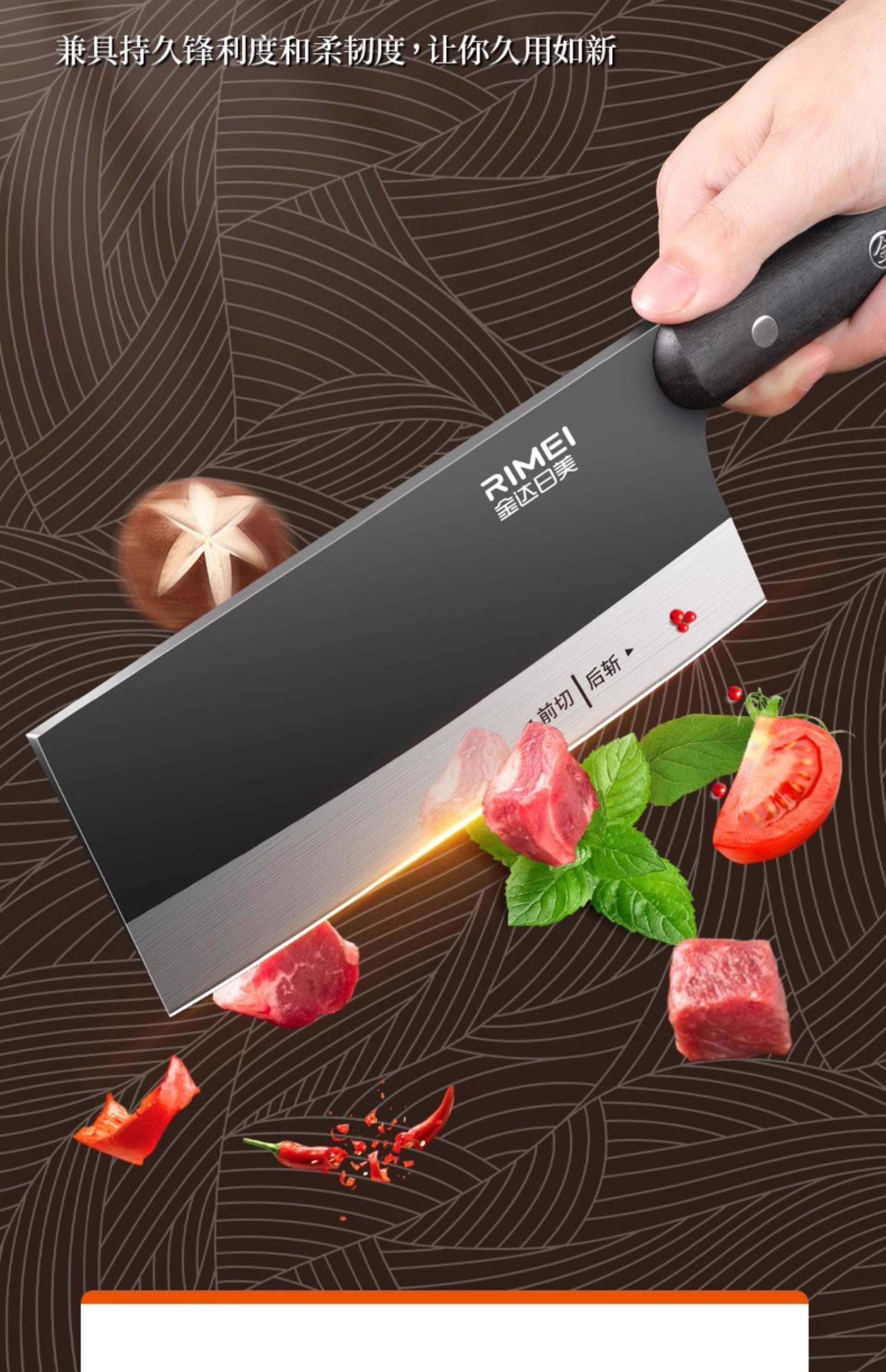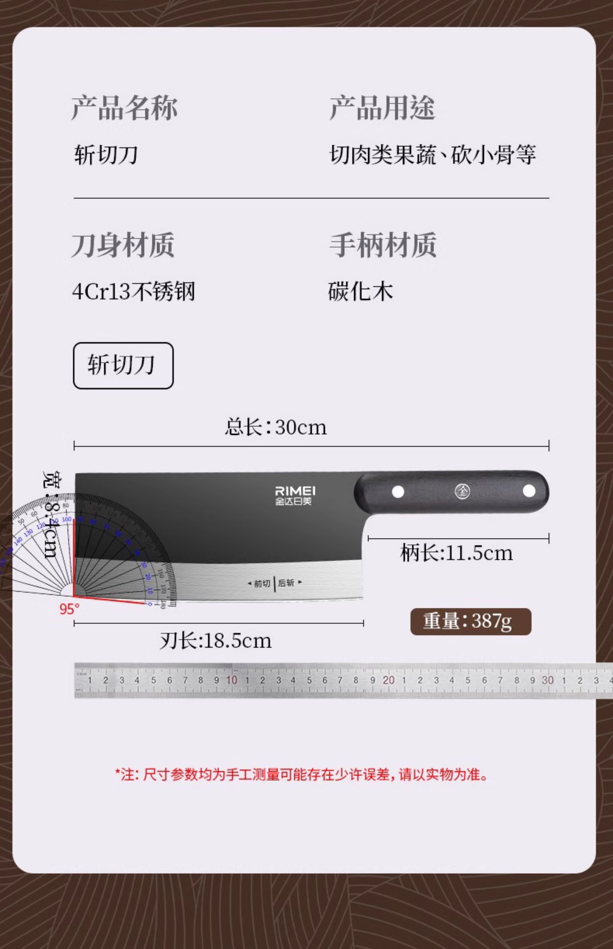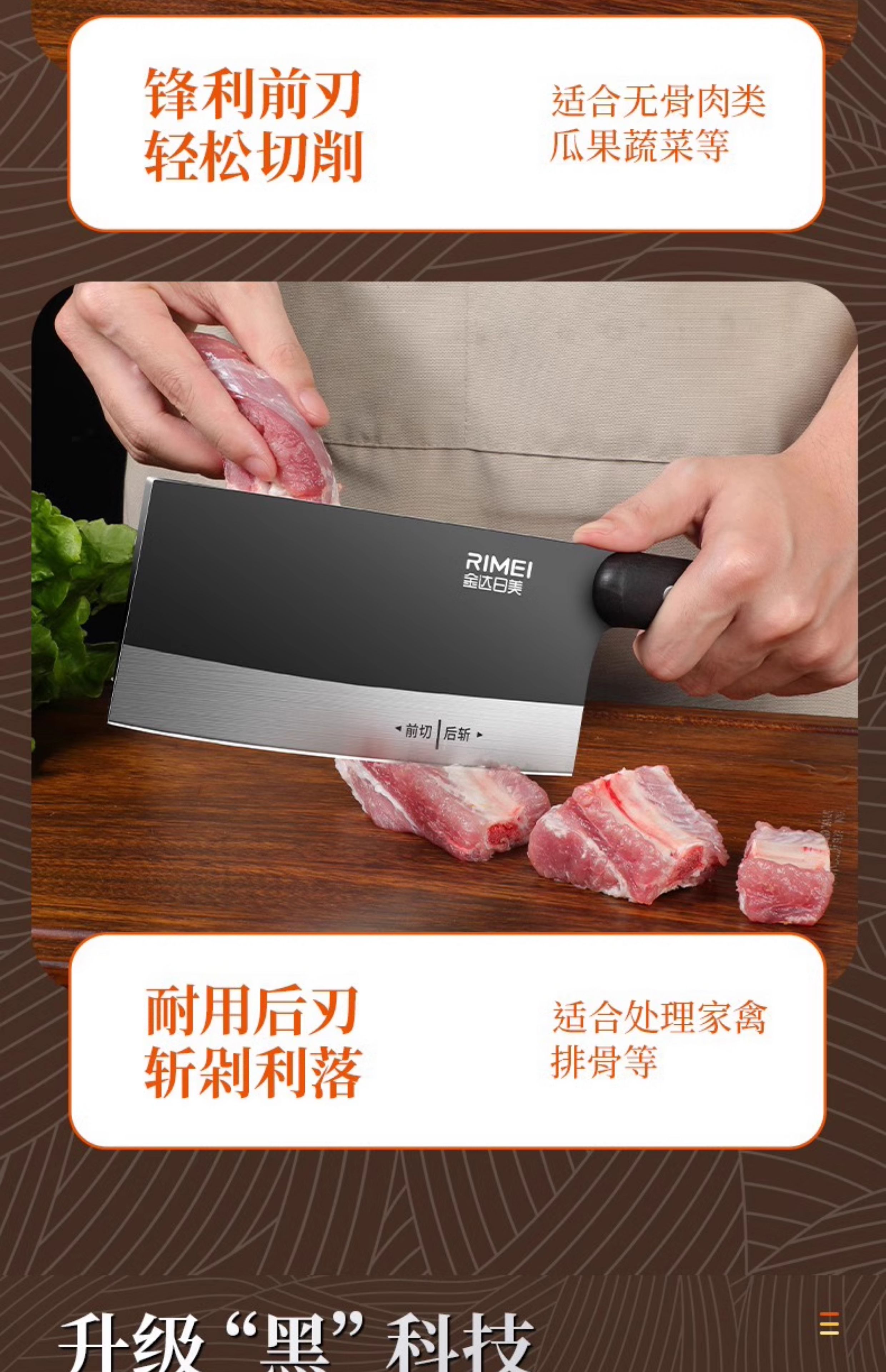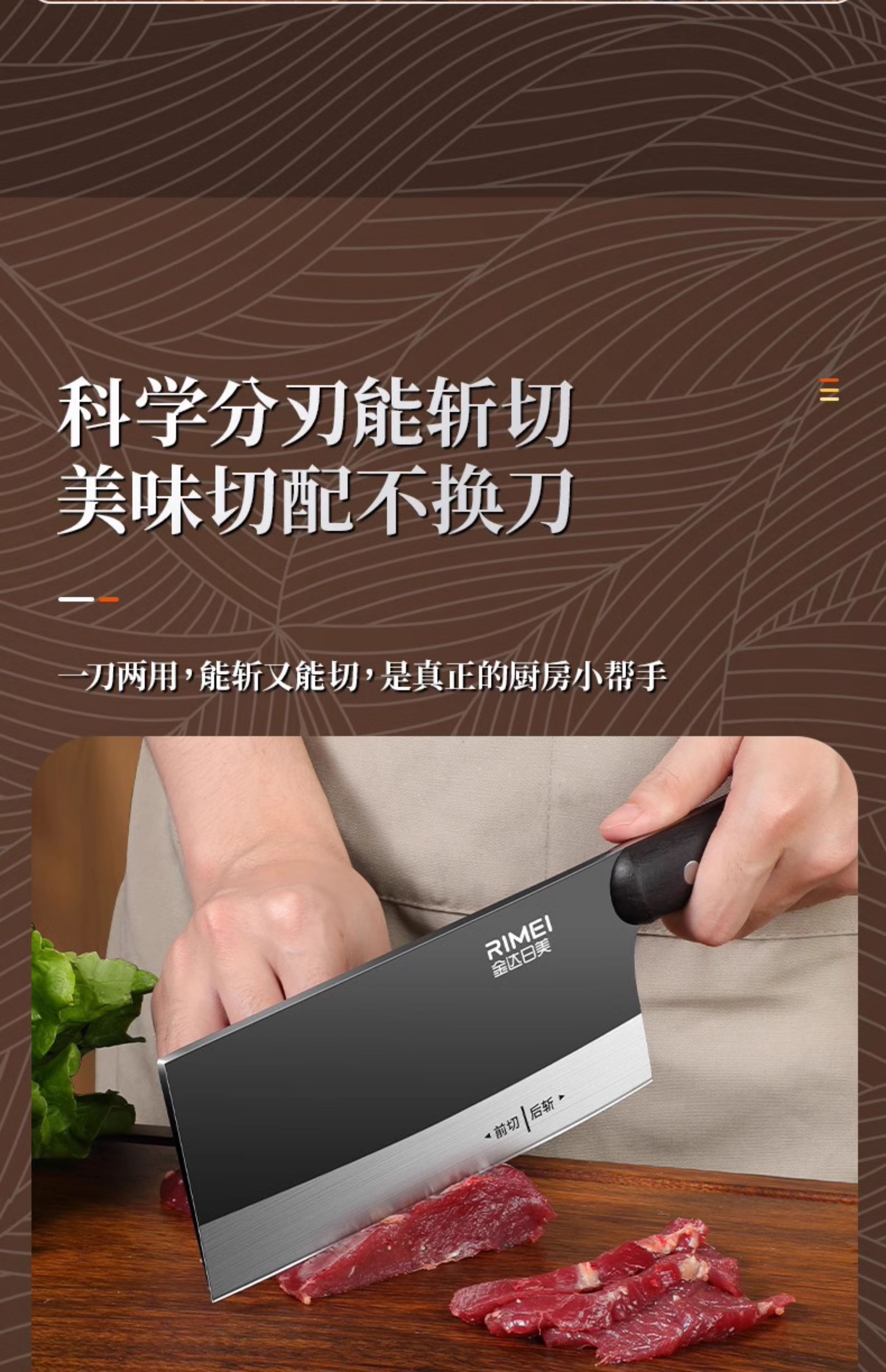 金达日美菜刀家用切菜切肉斩骨头厨师专用锋利不锈钢刀具厨房用斩切刀 金达日美斩切刀【防锈抗菌】