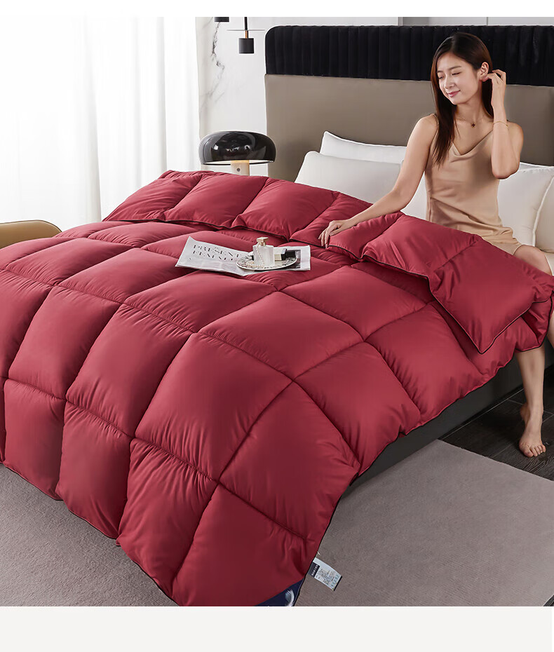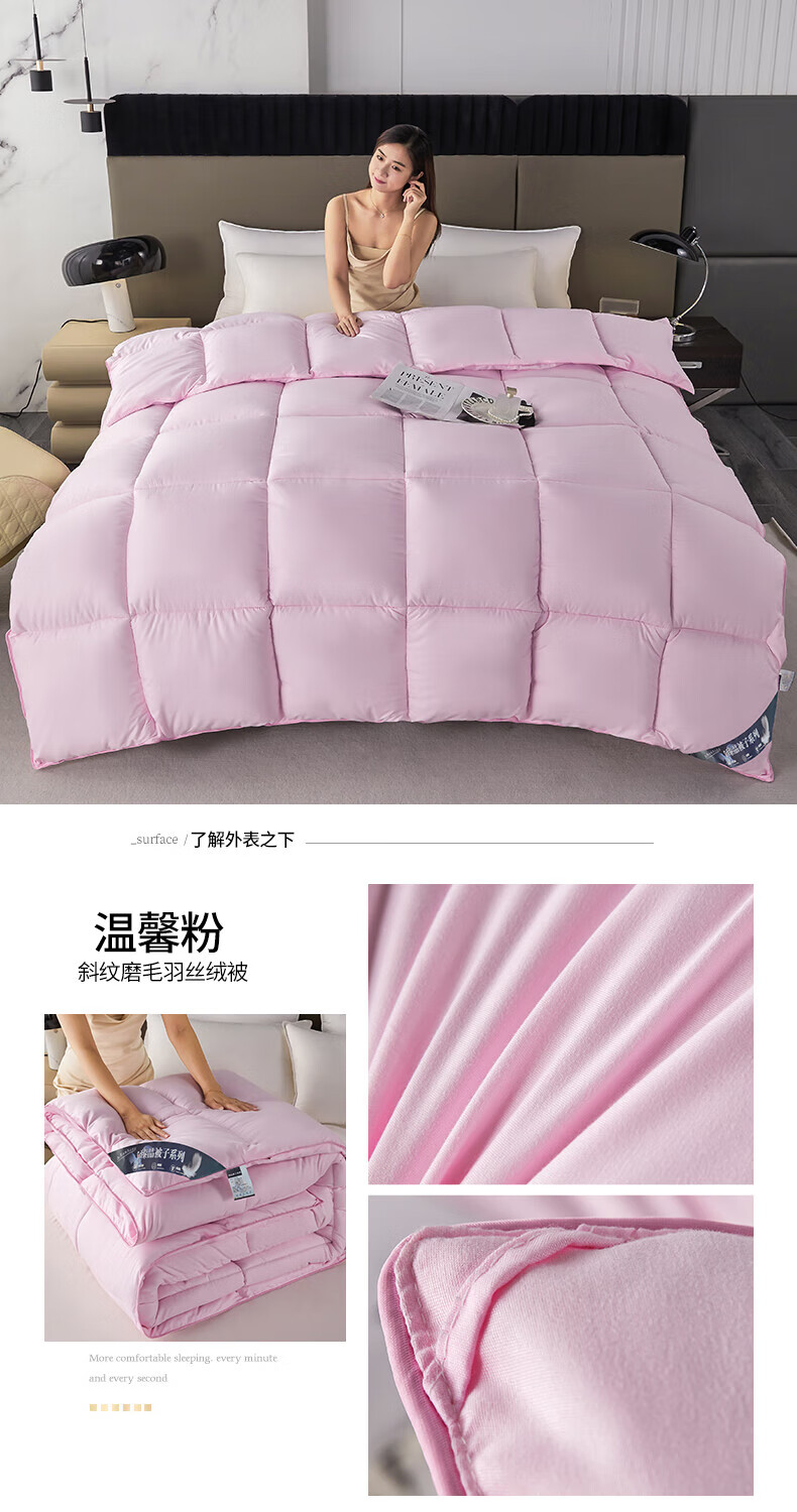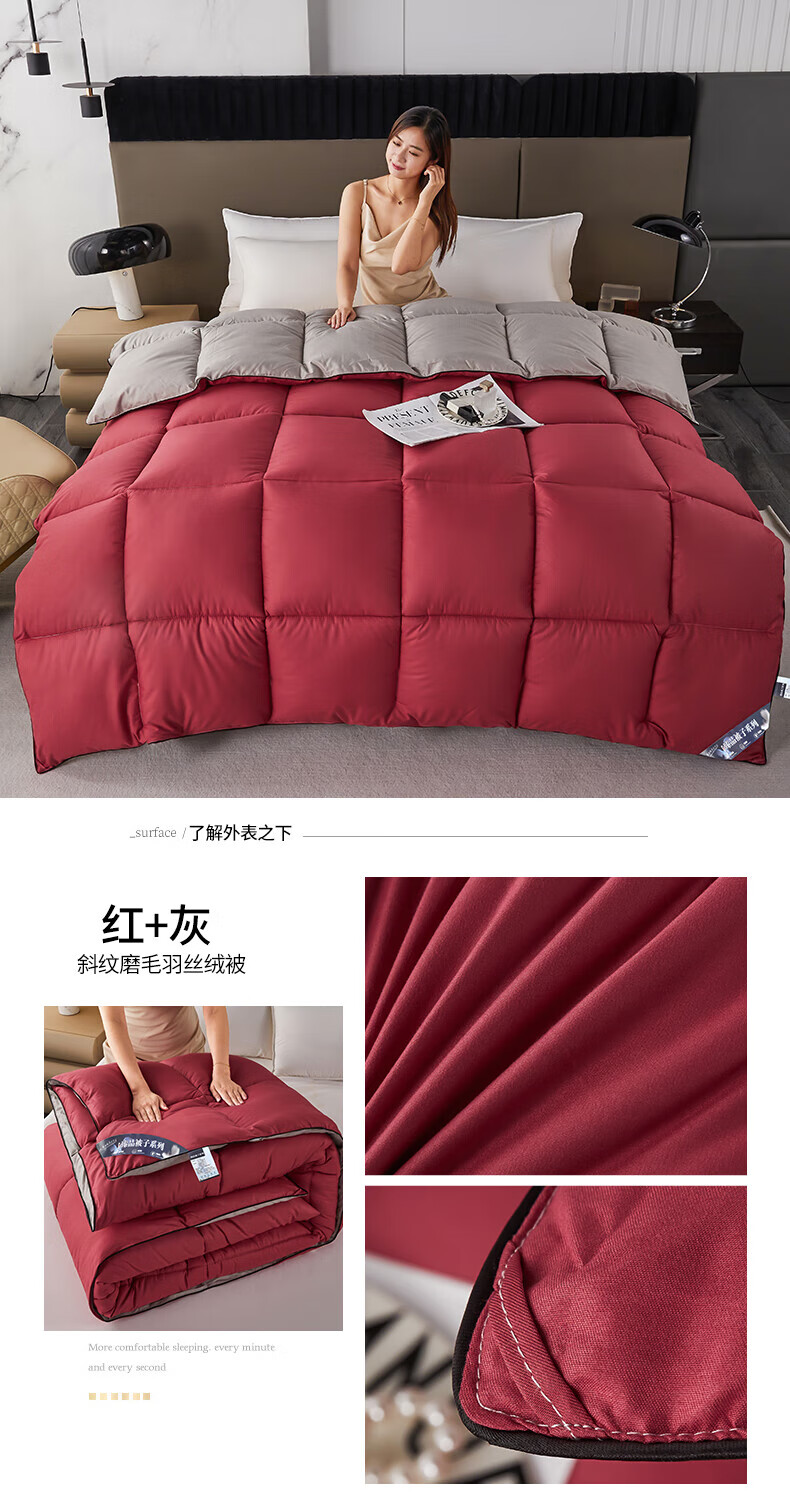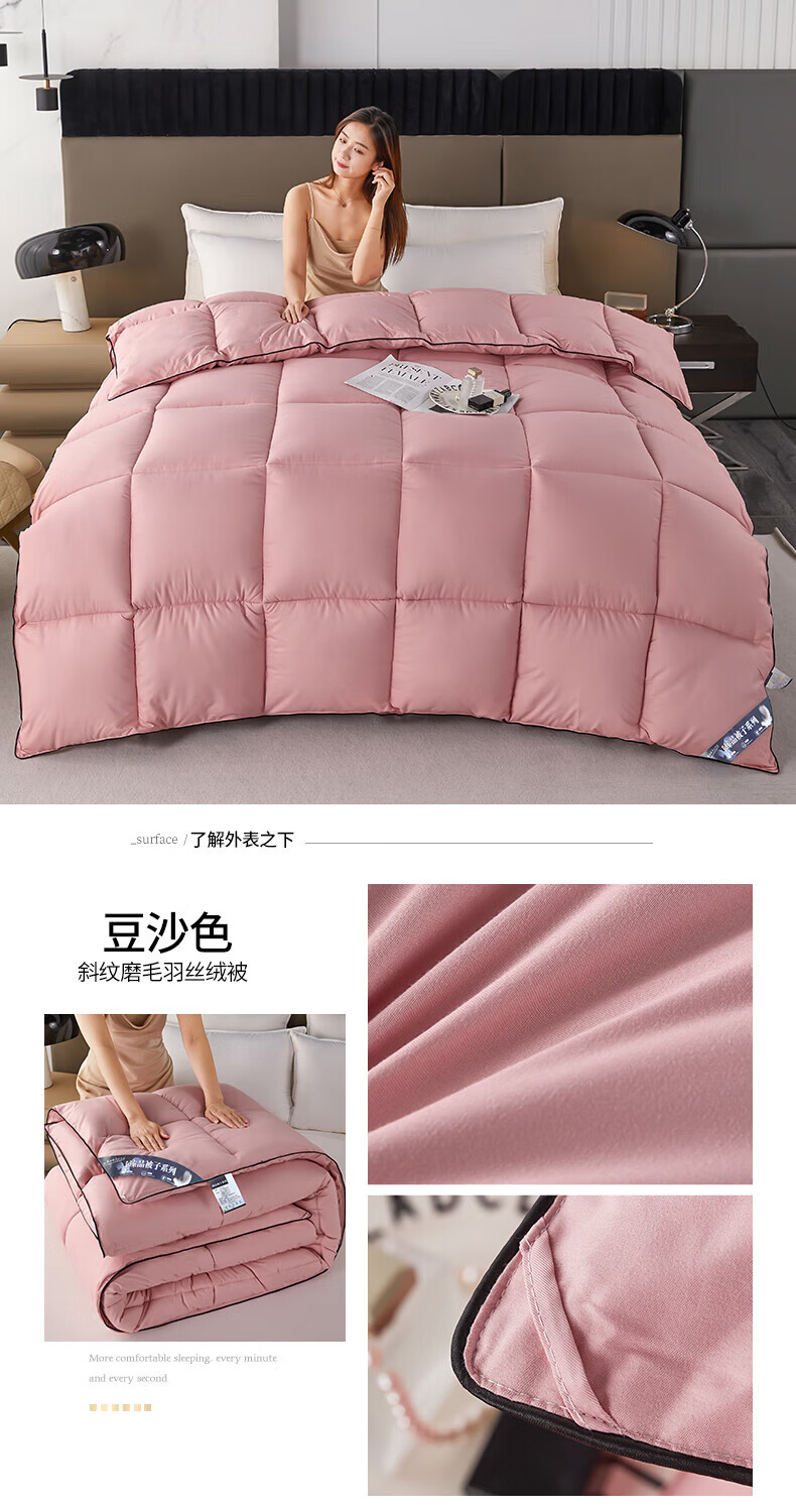 恒源祥羽丝绒被冬季白鹅丝绒8斤冬被棉被加厚10斤保暖被纯色磨毛春秋被 豆沙色 180*220cm【8斤冬被】