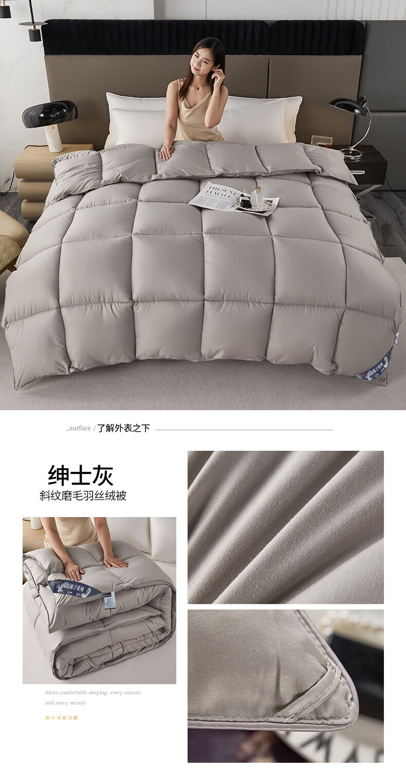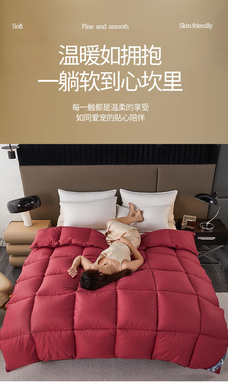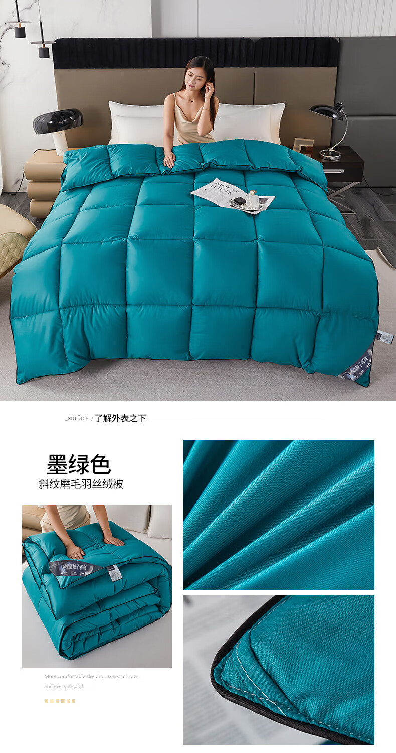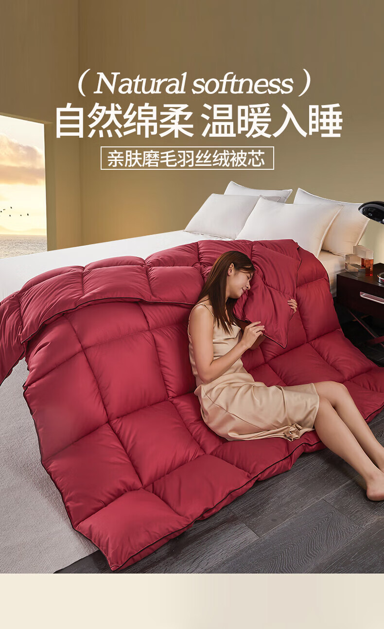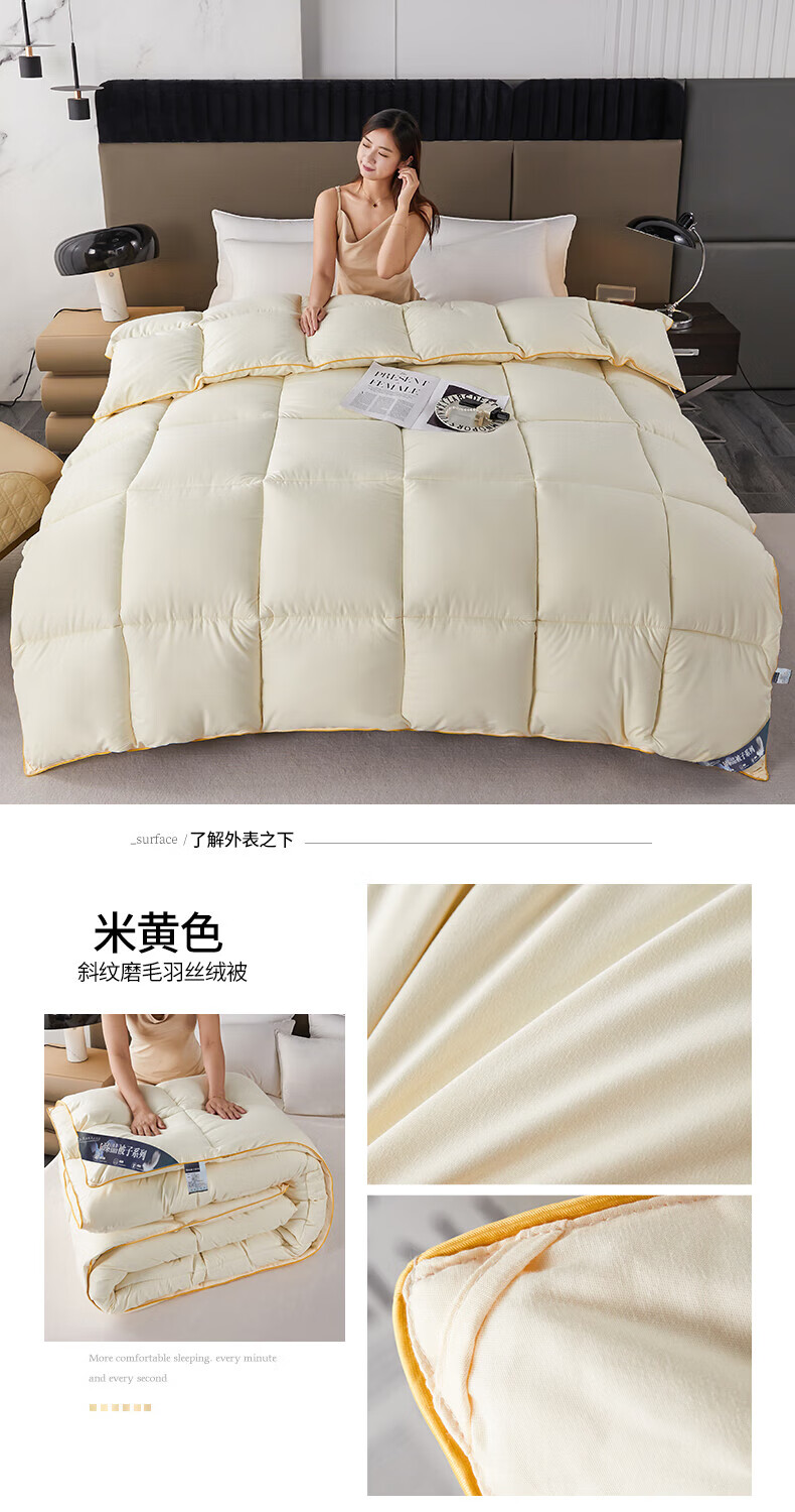 恒源祥羽丝绒被冬季白鹅丝绒8斤冬被棉被加厚10斤保暖被纯色磨毛春秋被 豆沙色 180*220cm【8斤冬被】