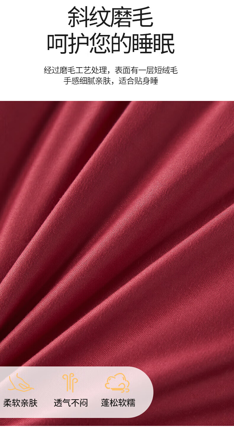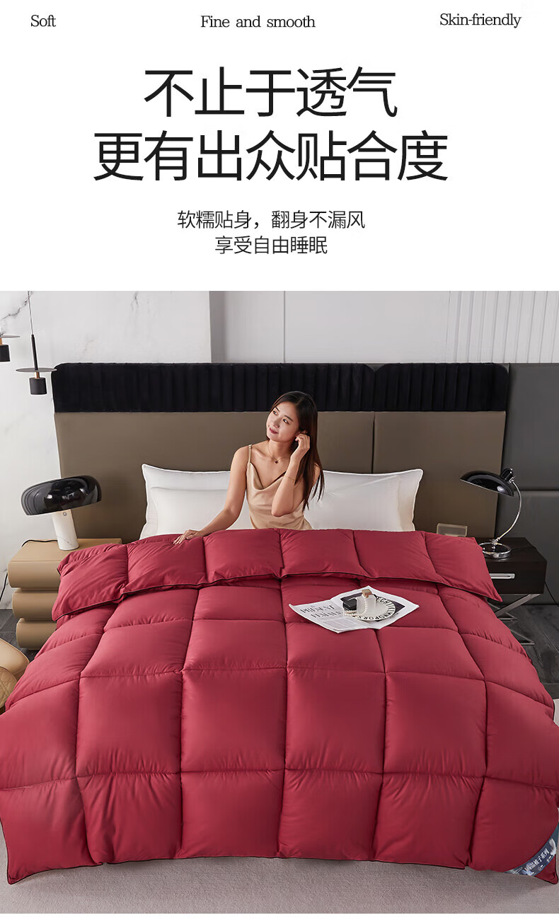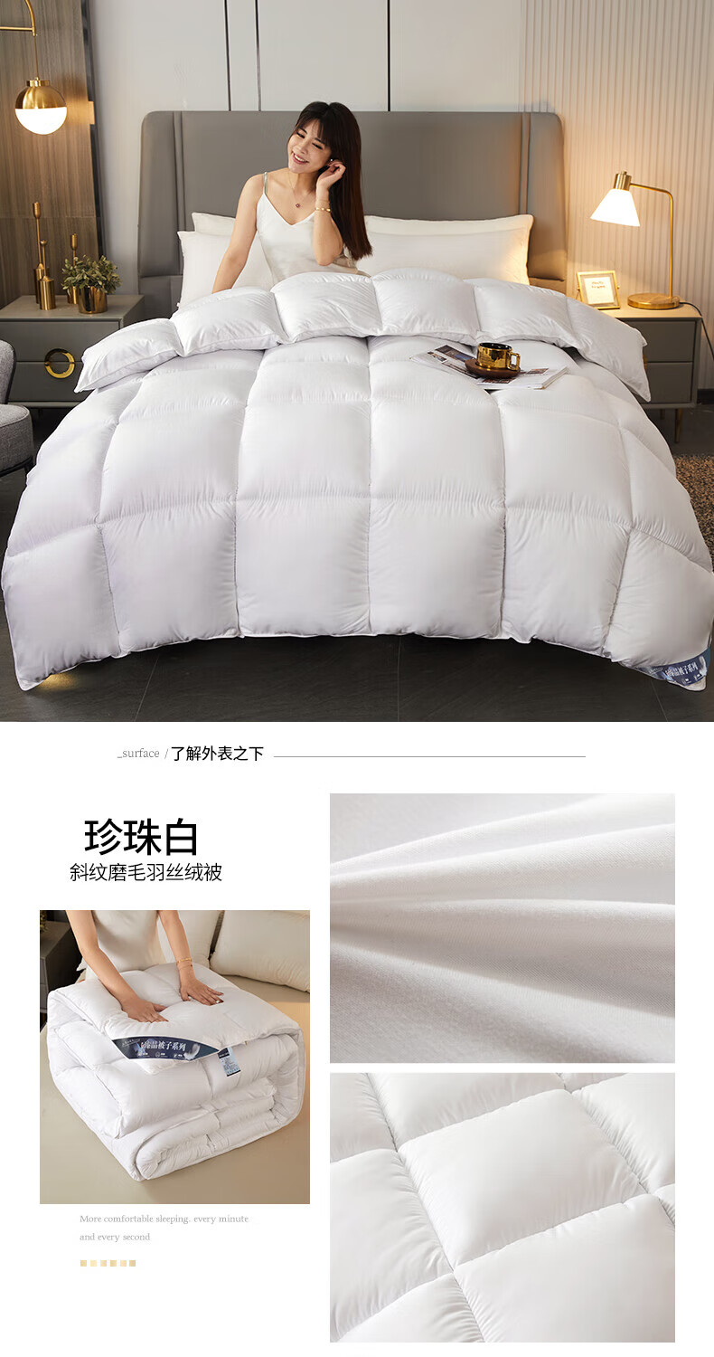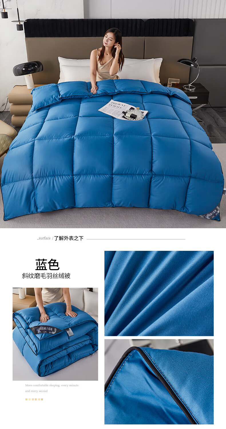 恒源祥羽丝绒被冬季白鹅丝绒8斤冬被棉被加厚10斤保暖被纯色磨毛春秋被 豆沙色 180*220cm【8斤冬被】