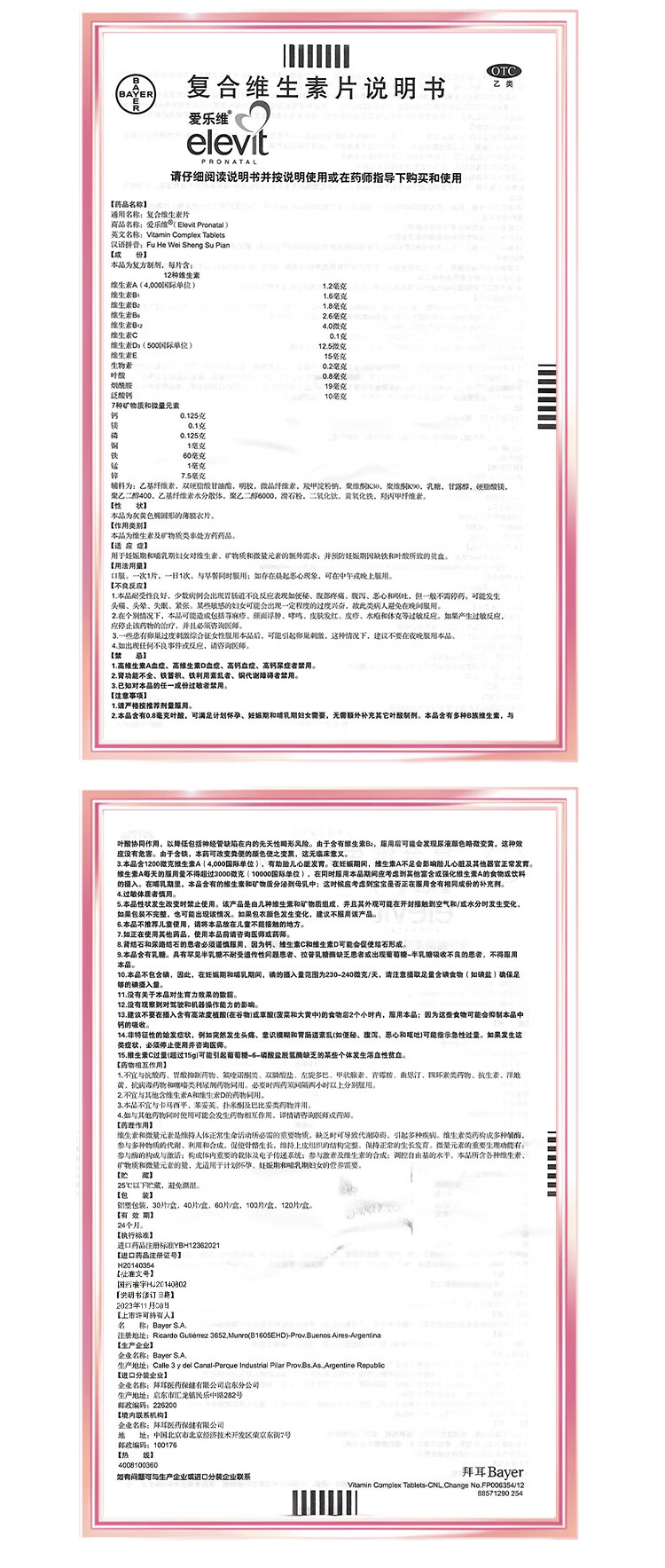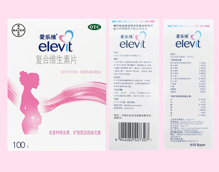 【原研好药】拜耳爱乐维叶酸 复合维生素片100片 补充钙铁锌维生素c 孕妇叶酸备孕片女性艾乐维
