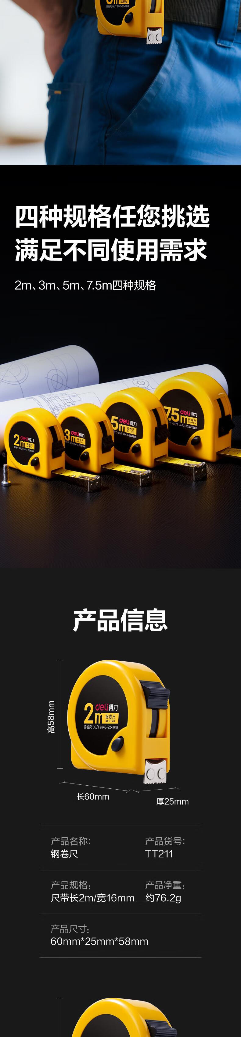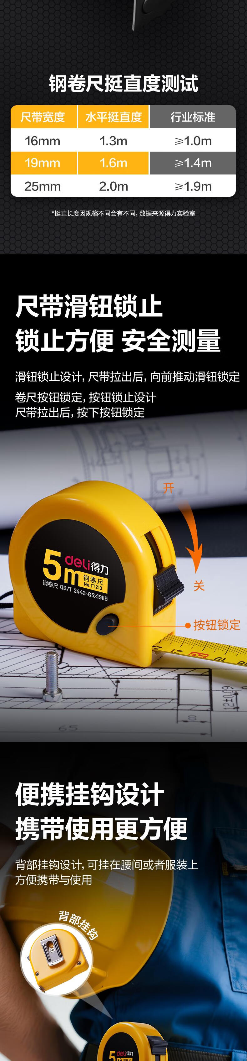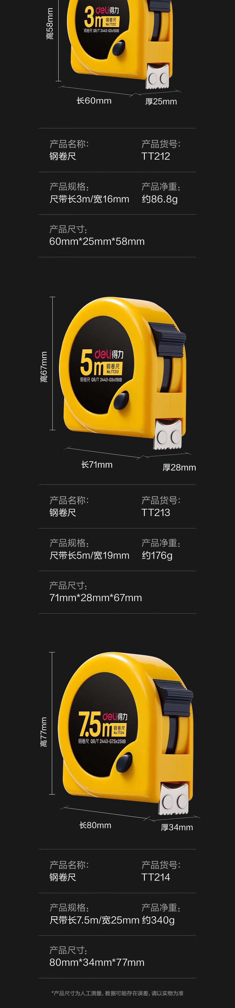 得力【磁吸尺带头-升级不加价】3m锁定功能钢卷尺 木工尺装修测量尺子 办公用品TT212(原8202新老混发)