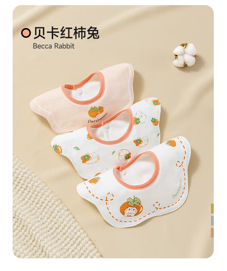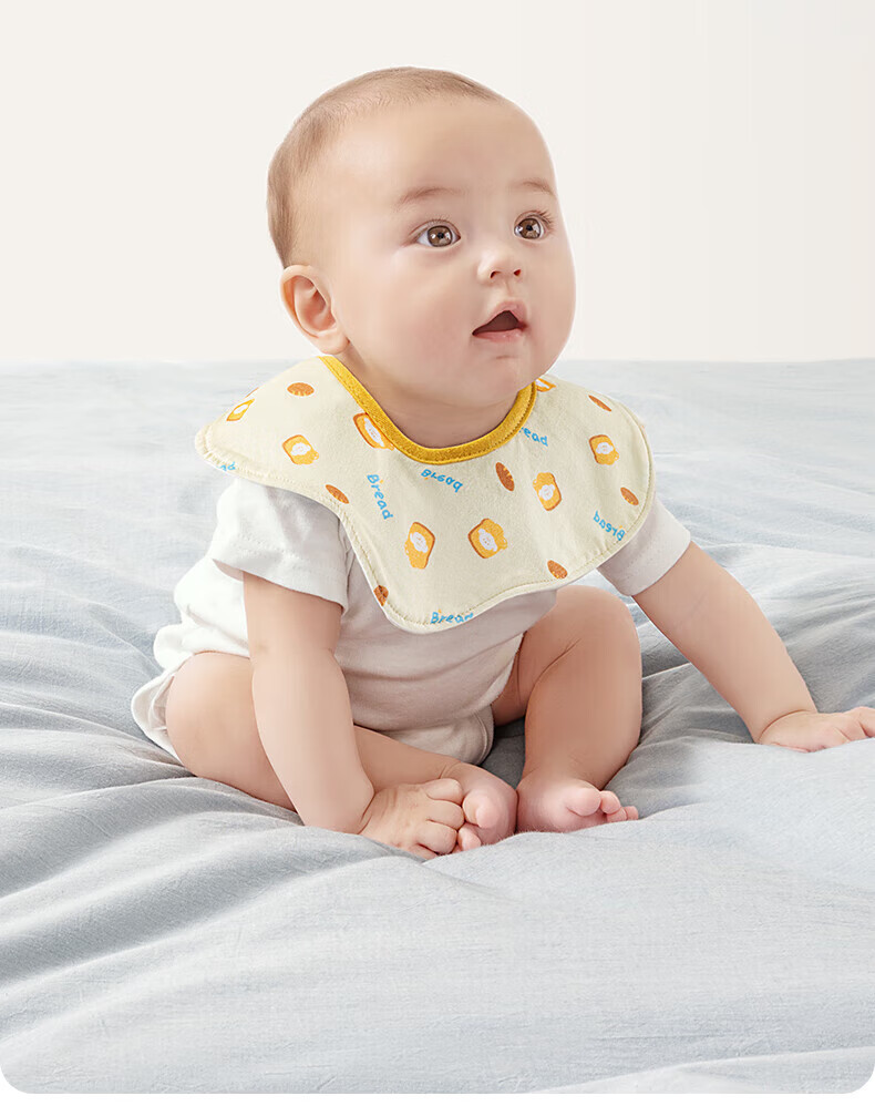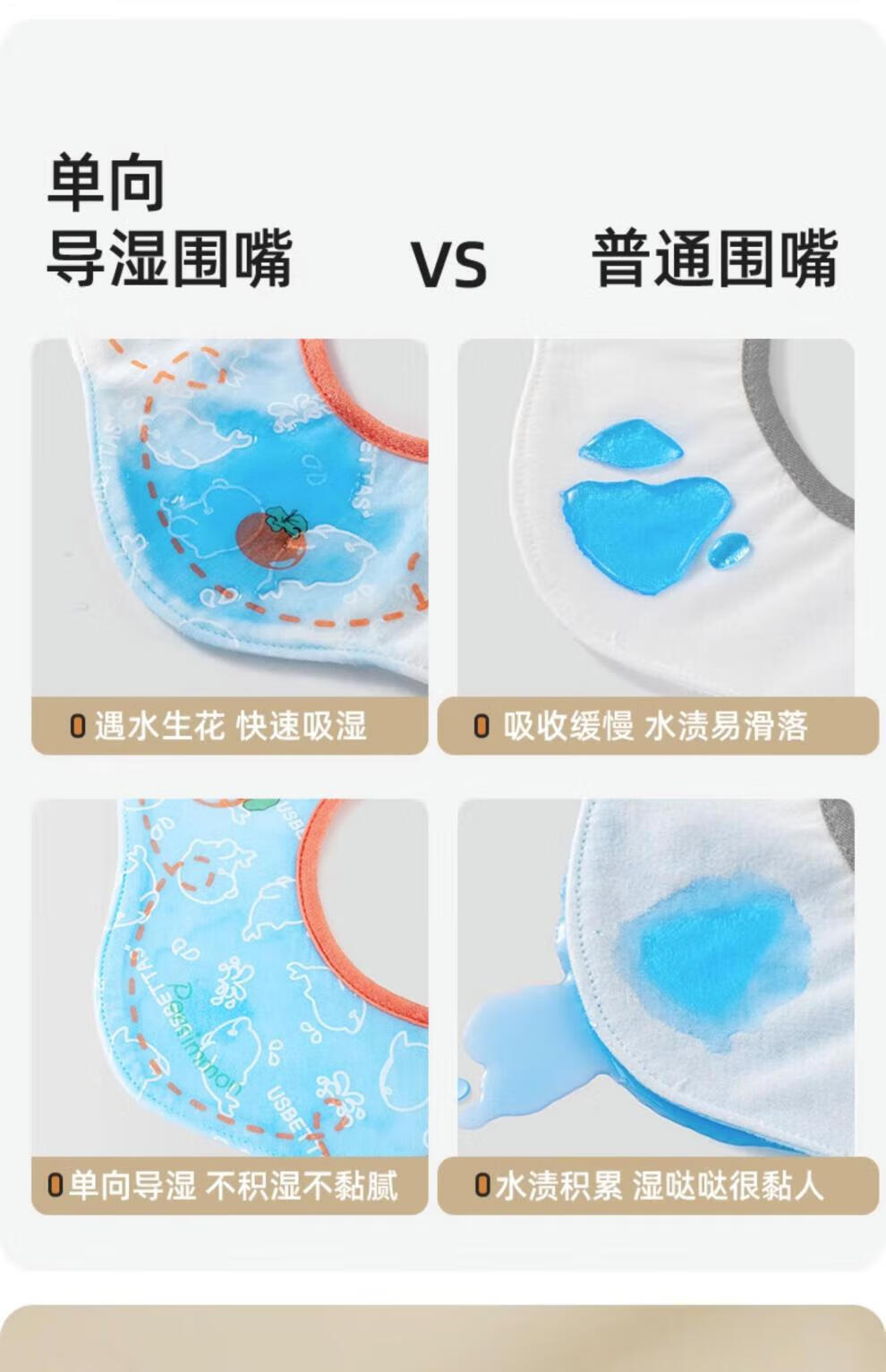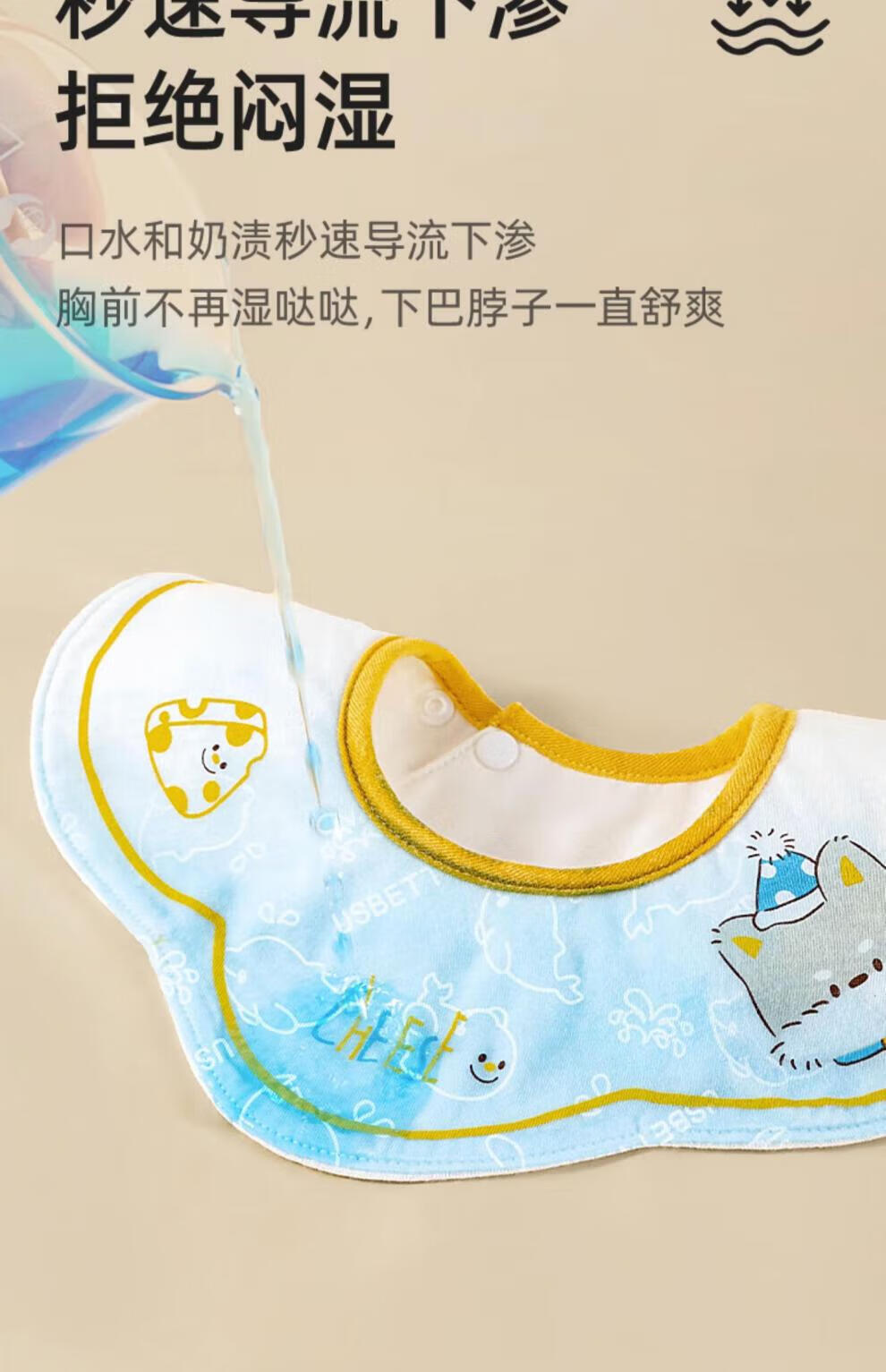 贝肽斯口水巾婴儿围嘴宝宝防吐奶纯棉防水新生儿饭兜围兜 泰贝蛋糕熊-防水*导湿速干3条装