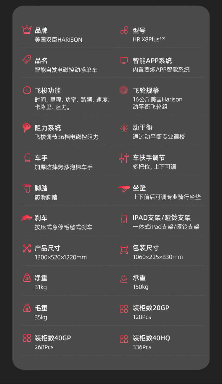 HARISON美国汉臣动感单车家用智能自发电健身器材室内自行车HR X8Pluseco