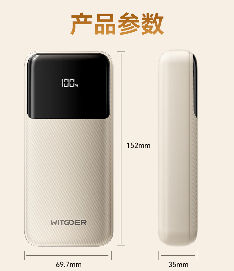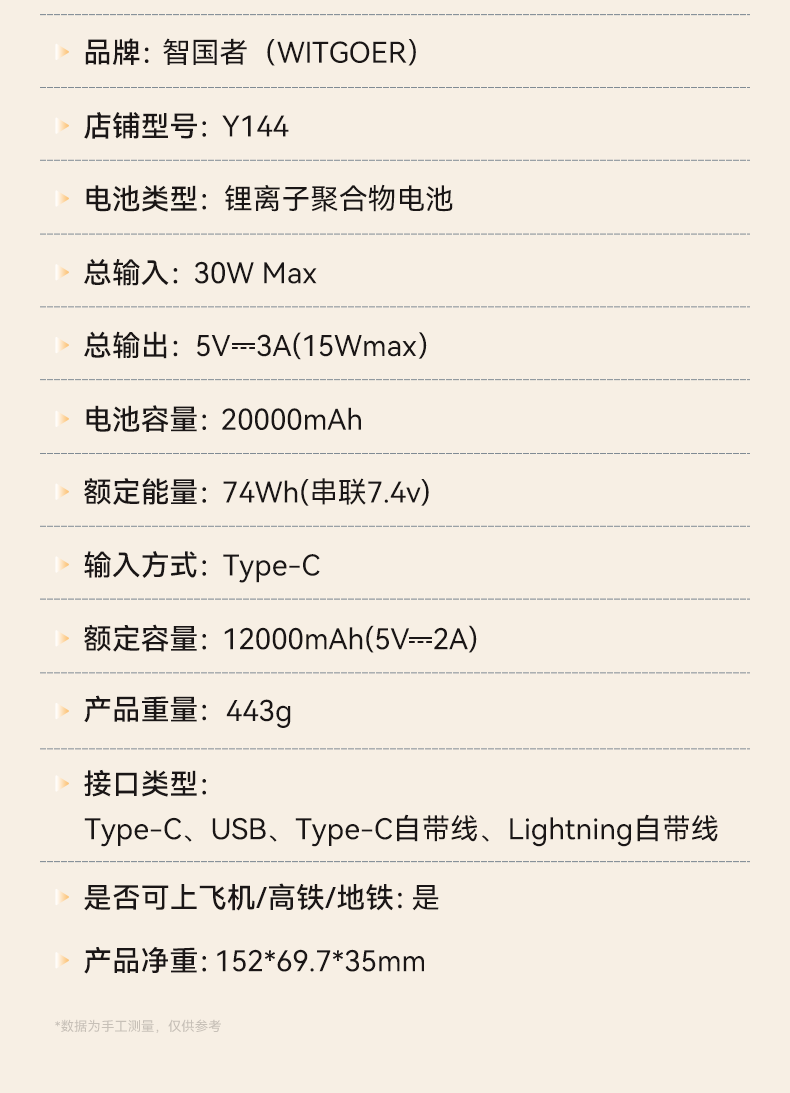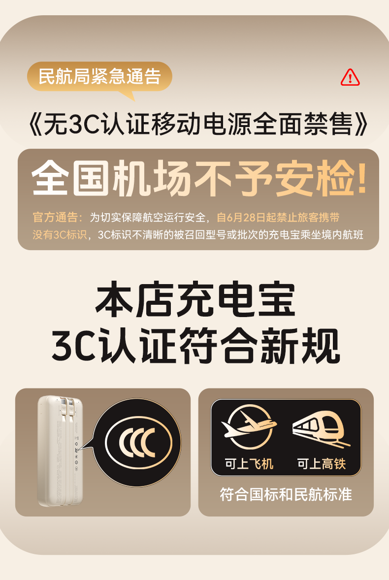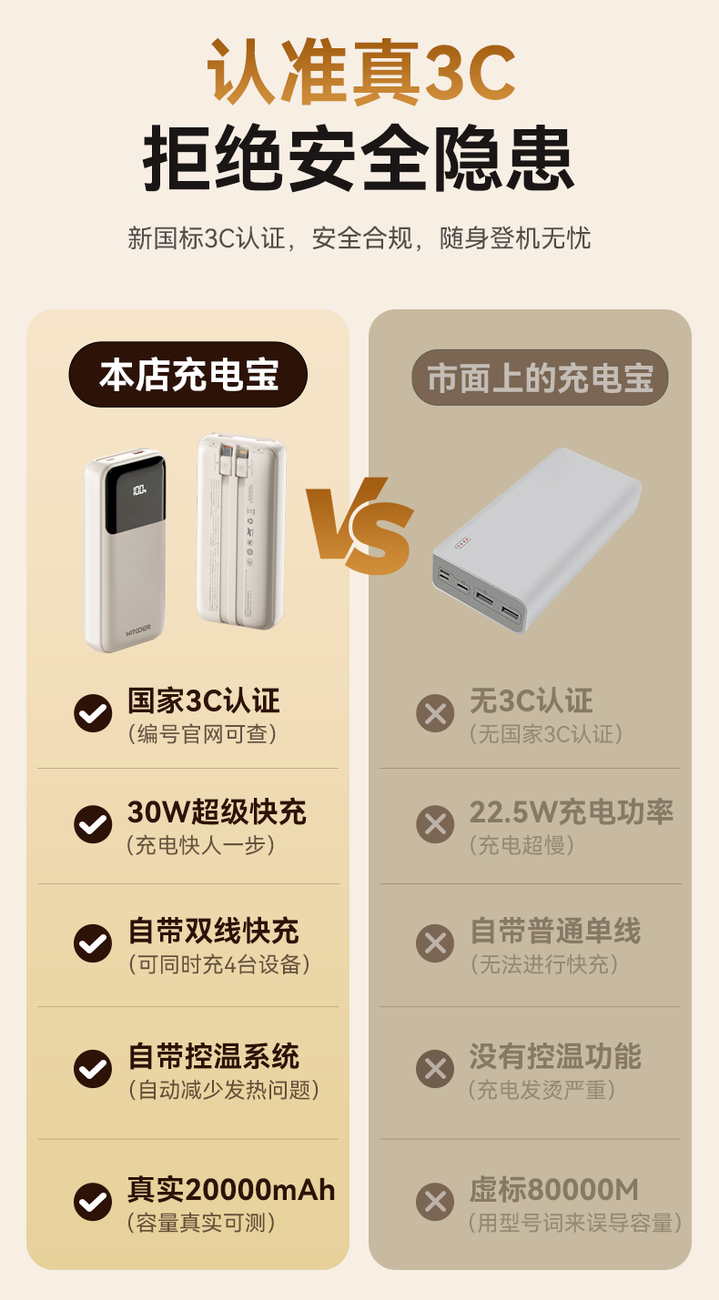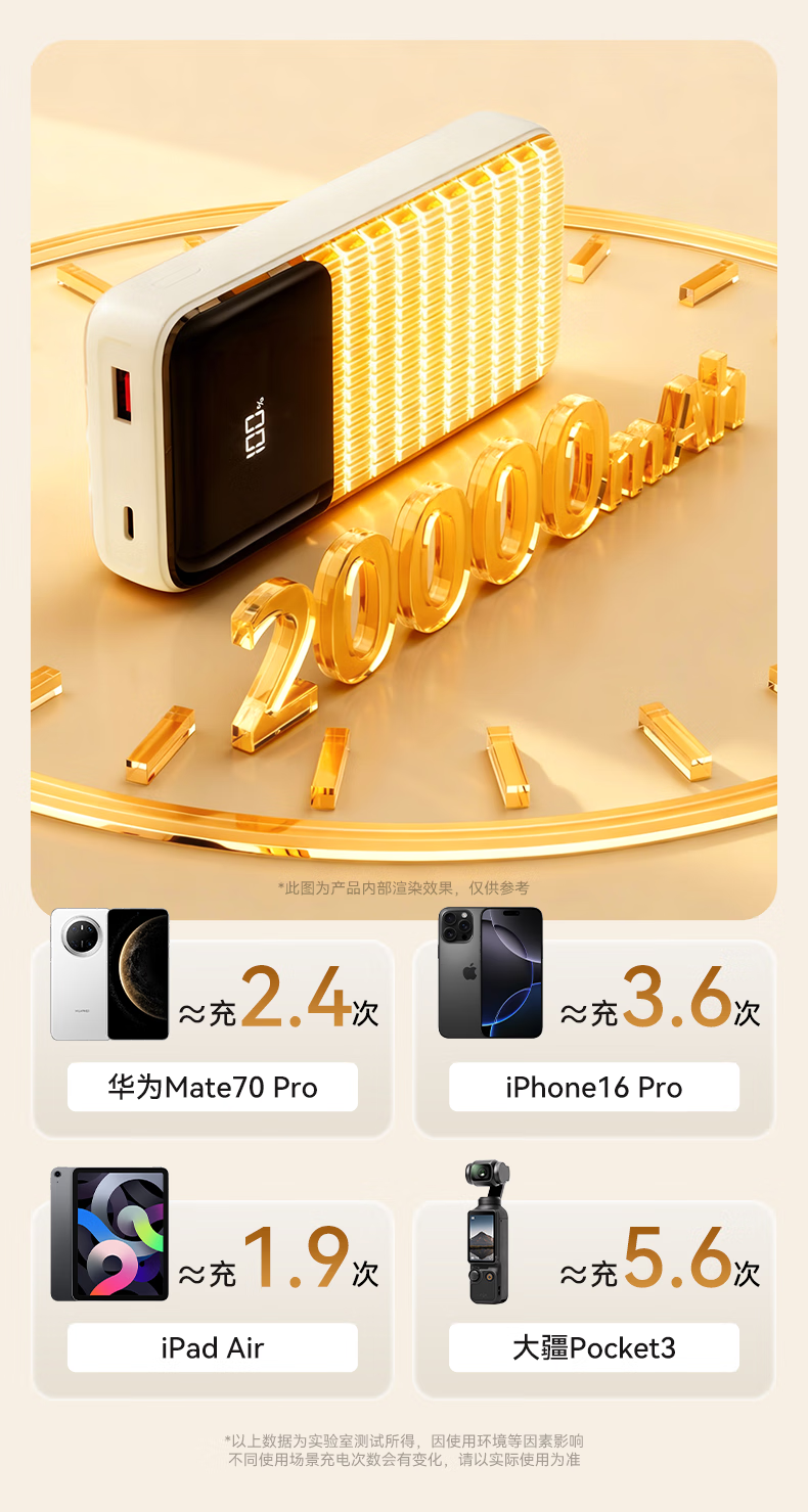 智国者【3C认证可带上飞机】30W充电宝自带线20000毫安超级快充大容量移动电源适用于华为苹果17小米手机