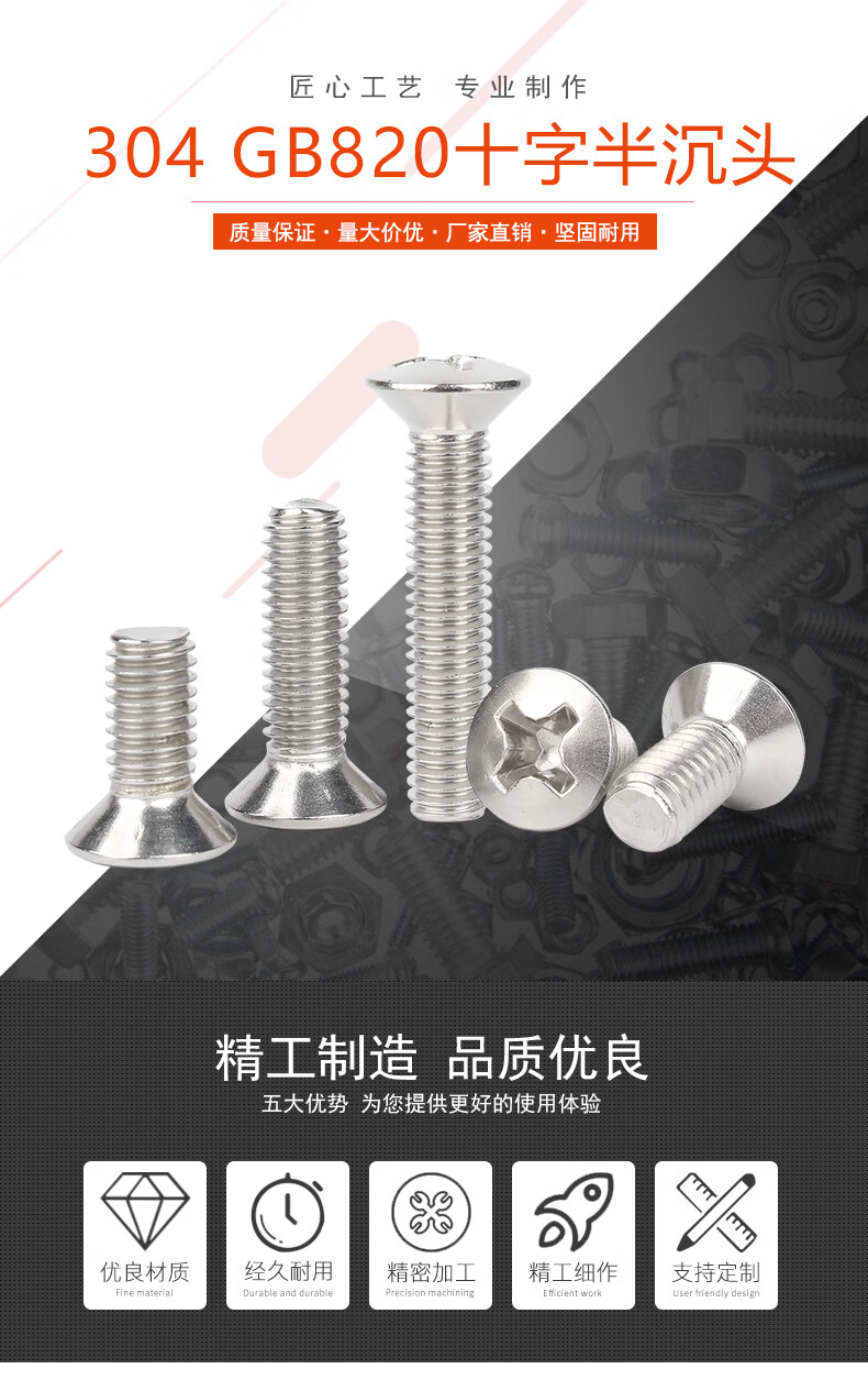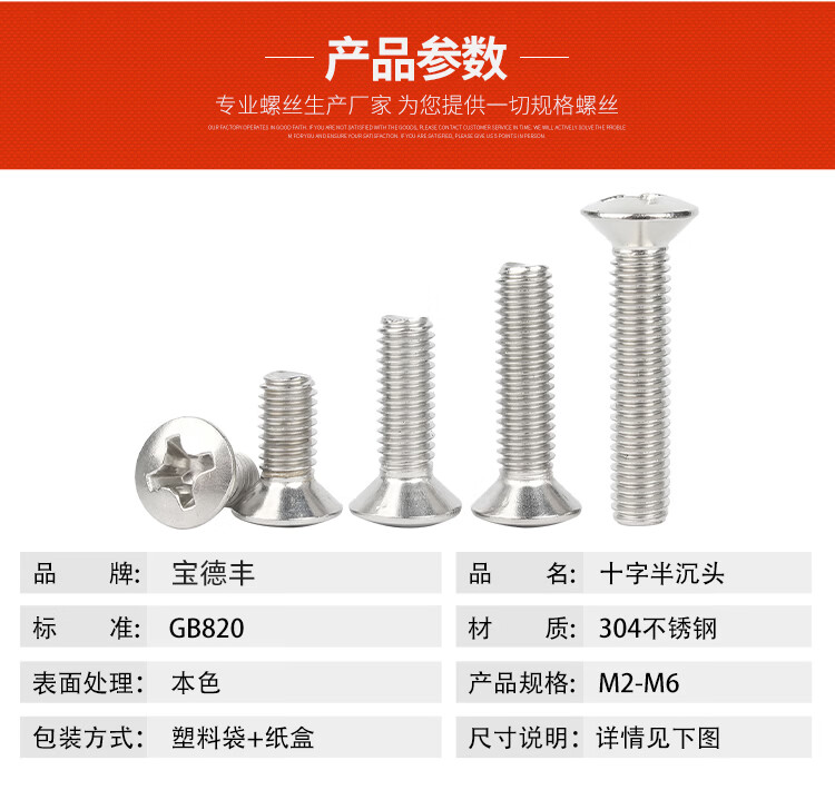 宝德丰304不锈钢GB820十字半沉头螺丝钉螺栓小半平头螺杆国标紧固件大全 M2x5(200只)