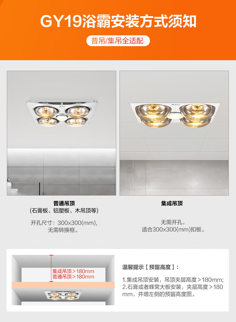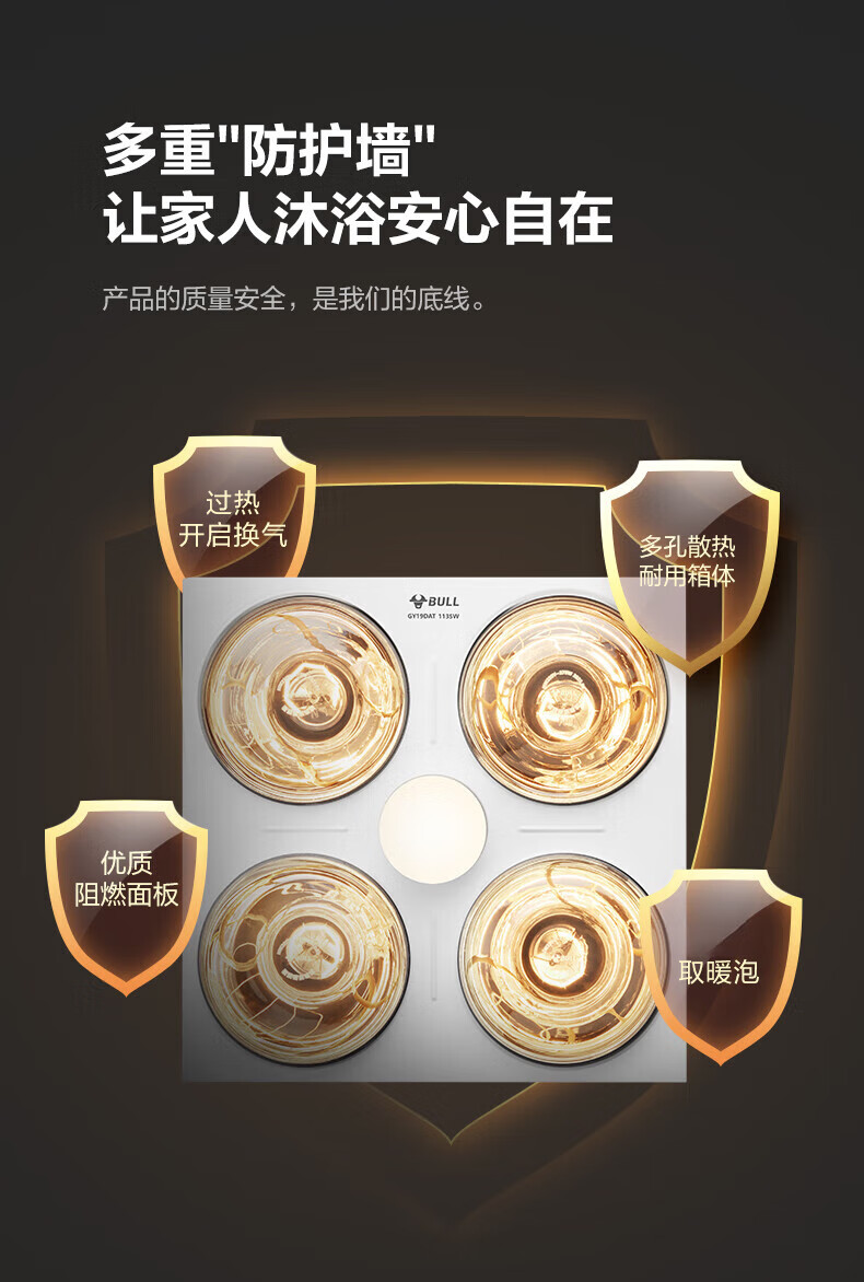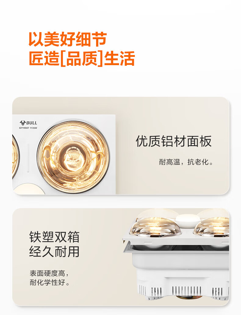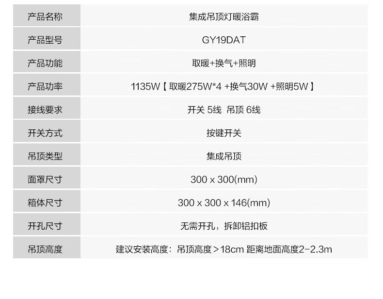公牛灯暖浴霸集成吊顶照明排气一体300x300三合一浴室老式四灯卫生间 集成吊顶【取暖+照明+换气】三合一