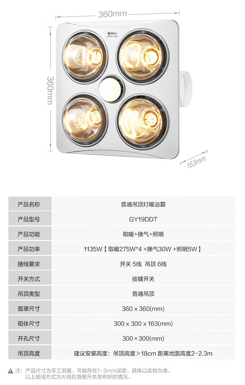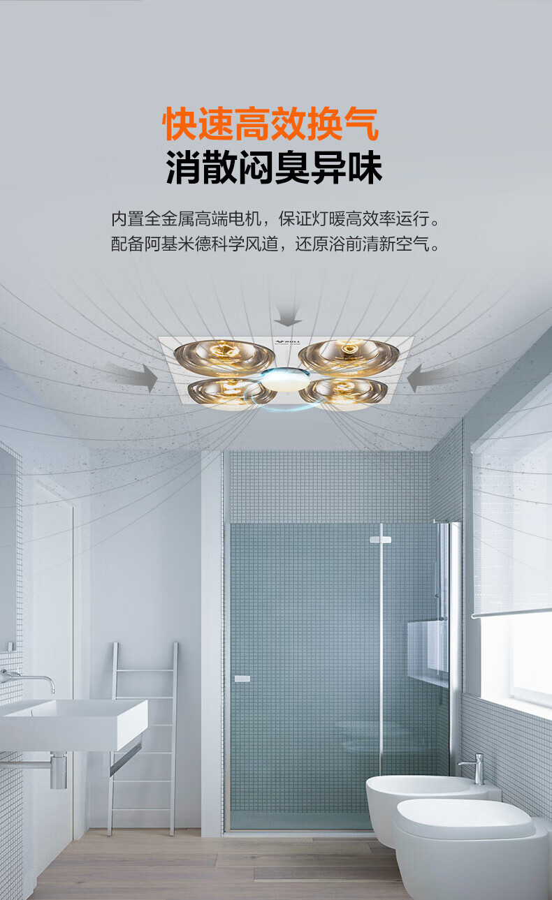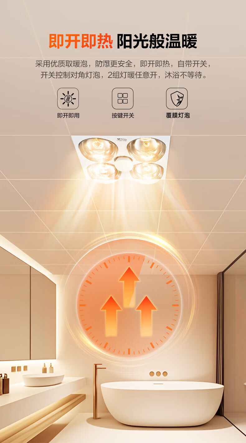 公牛灯暖浴霸集成吊顶照明排气一体300x300三合一浴室老式四灯卫生间 集成吊顶【取暖+照明+换气】三合一