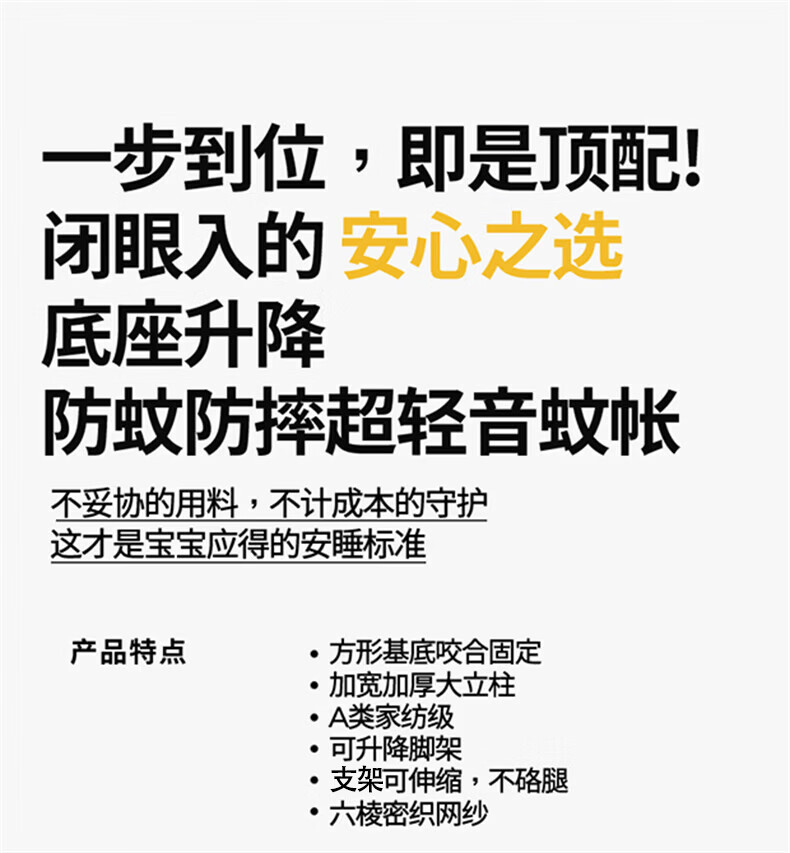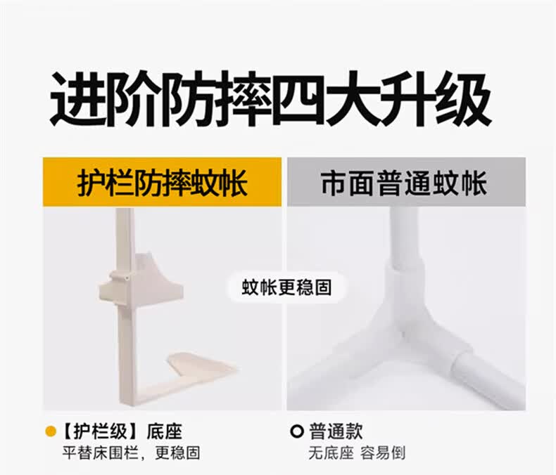 无印良品婴儿防摔蚊帐1.8x2米家用一体式免安装儿童防掉床围栏蚊帐二合一 光年-黄【围栏支架+防尘顶+风扇杆】 1.8m床-宽180x长200x高170cm