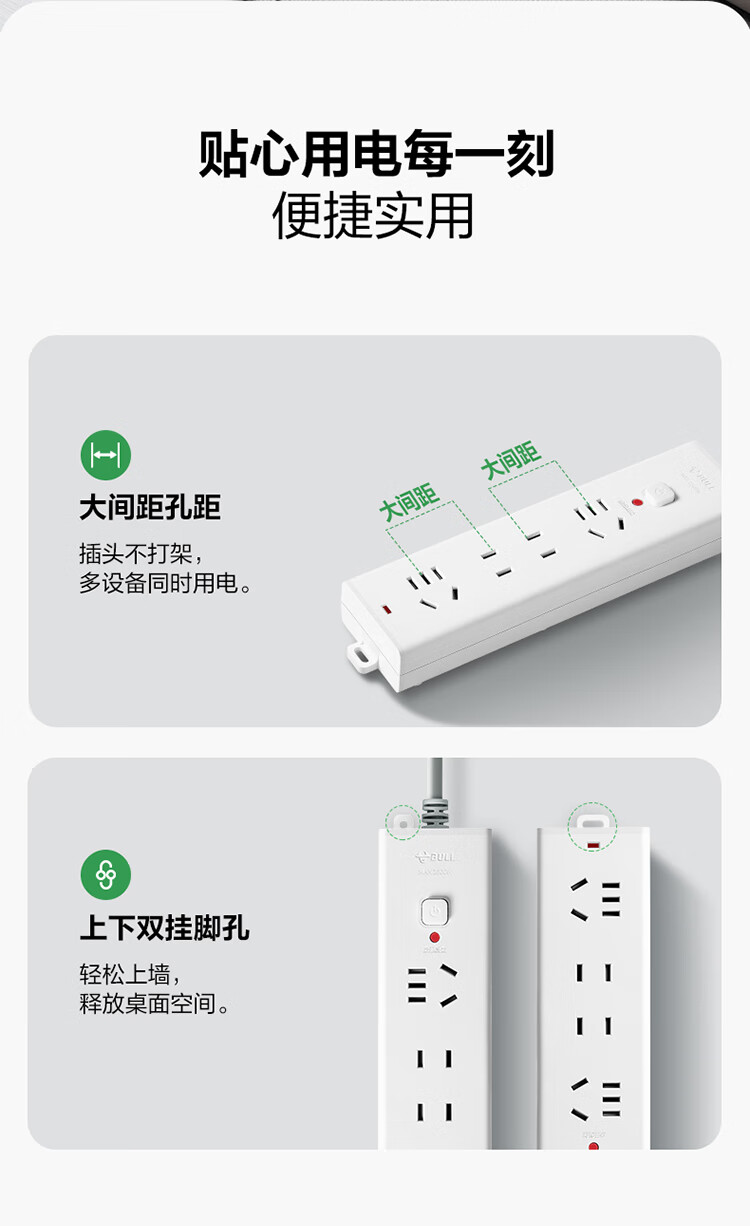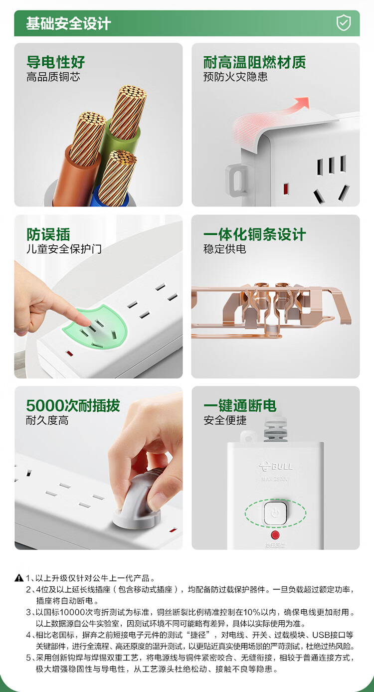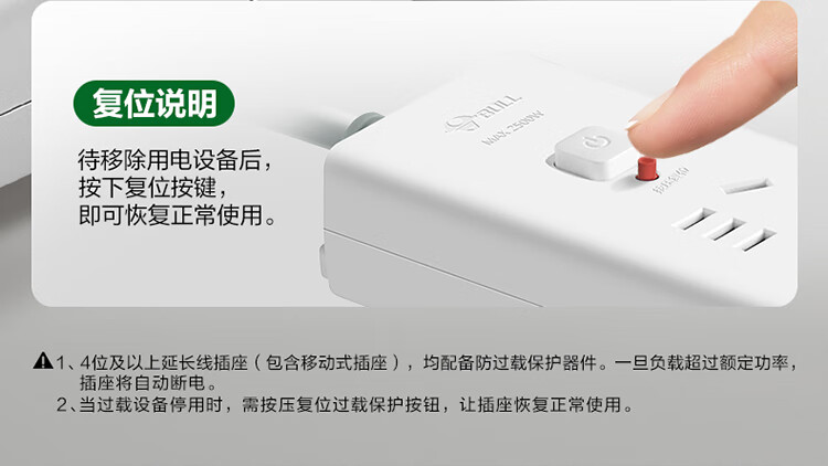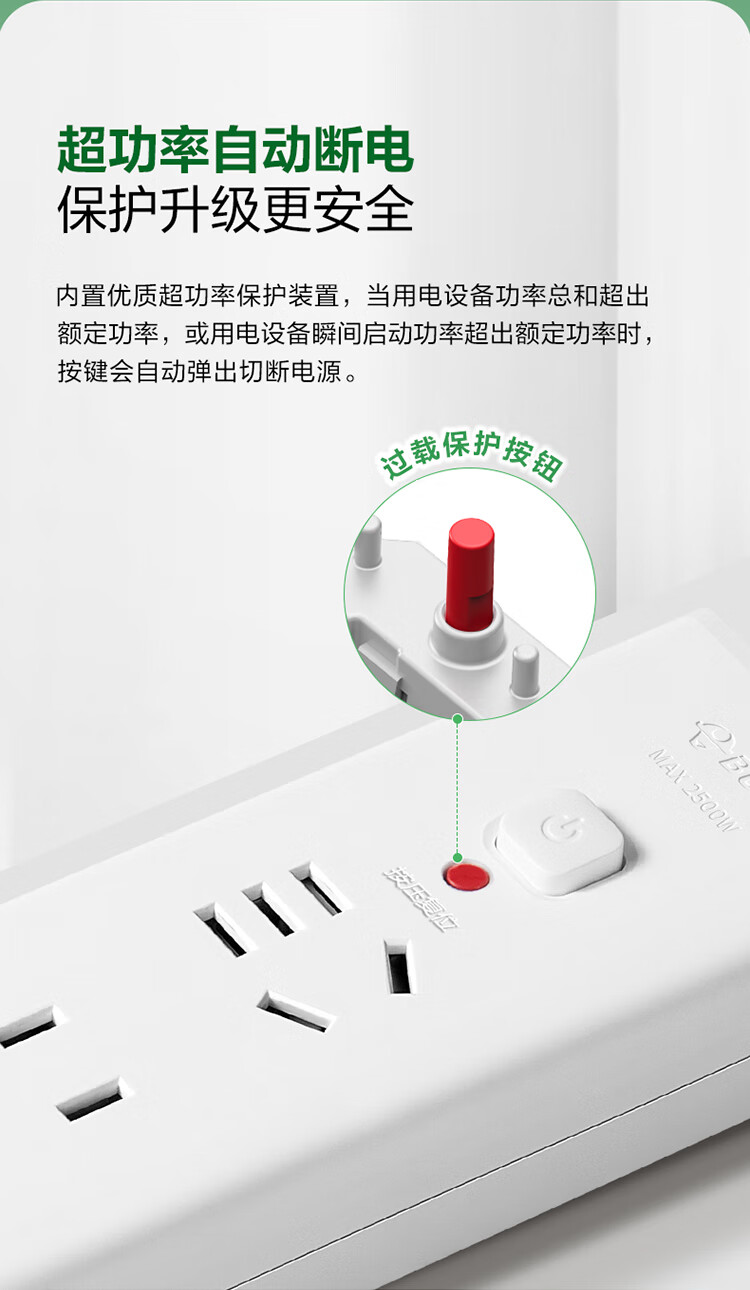 公牛(BULL)安全插座 白色排插转换器 B9220新国标超功率自动断电 【四位总控1.8米新国标】B9220 全长1.8米