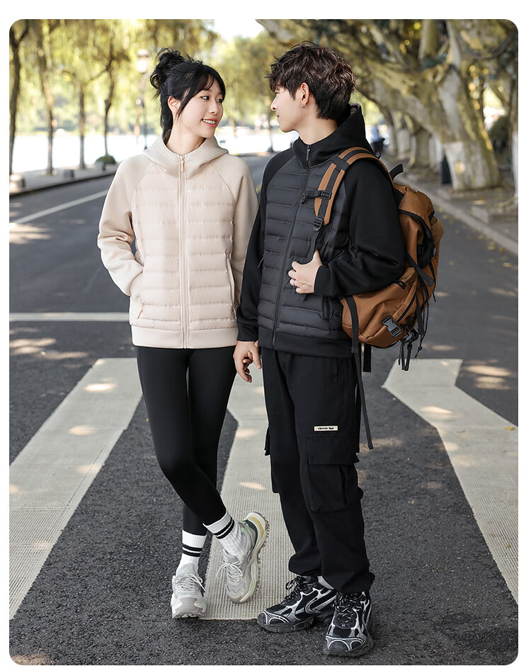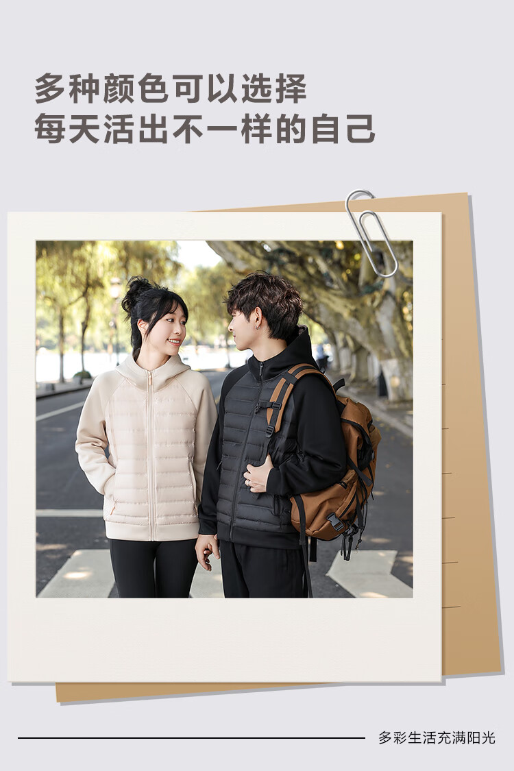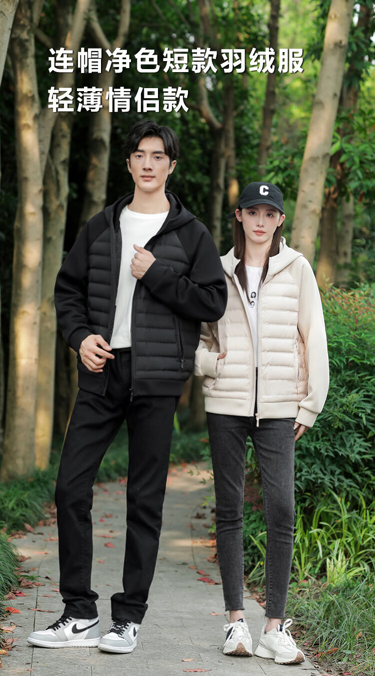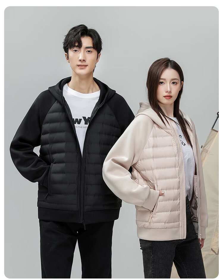 雪中飞轻薄羽绒服男女秋冬休闲时尚百搭户外内里多口袋设计情侣羽绒外套 粉色 XL 140-155
