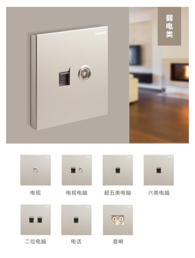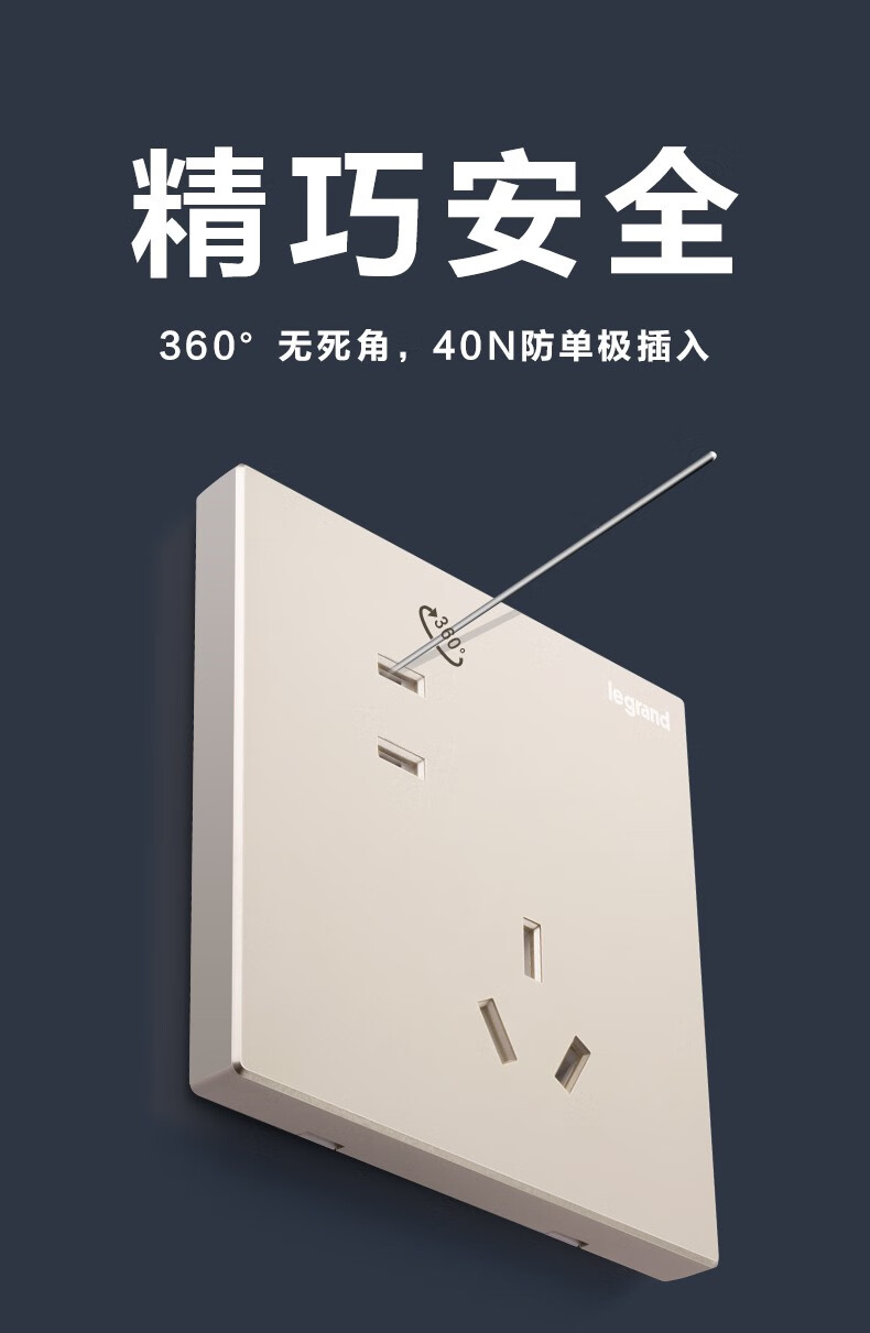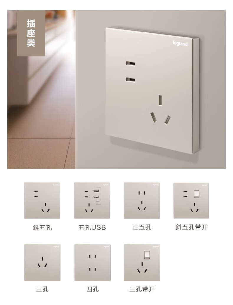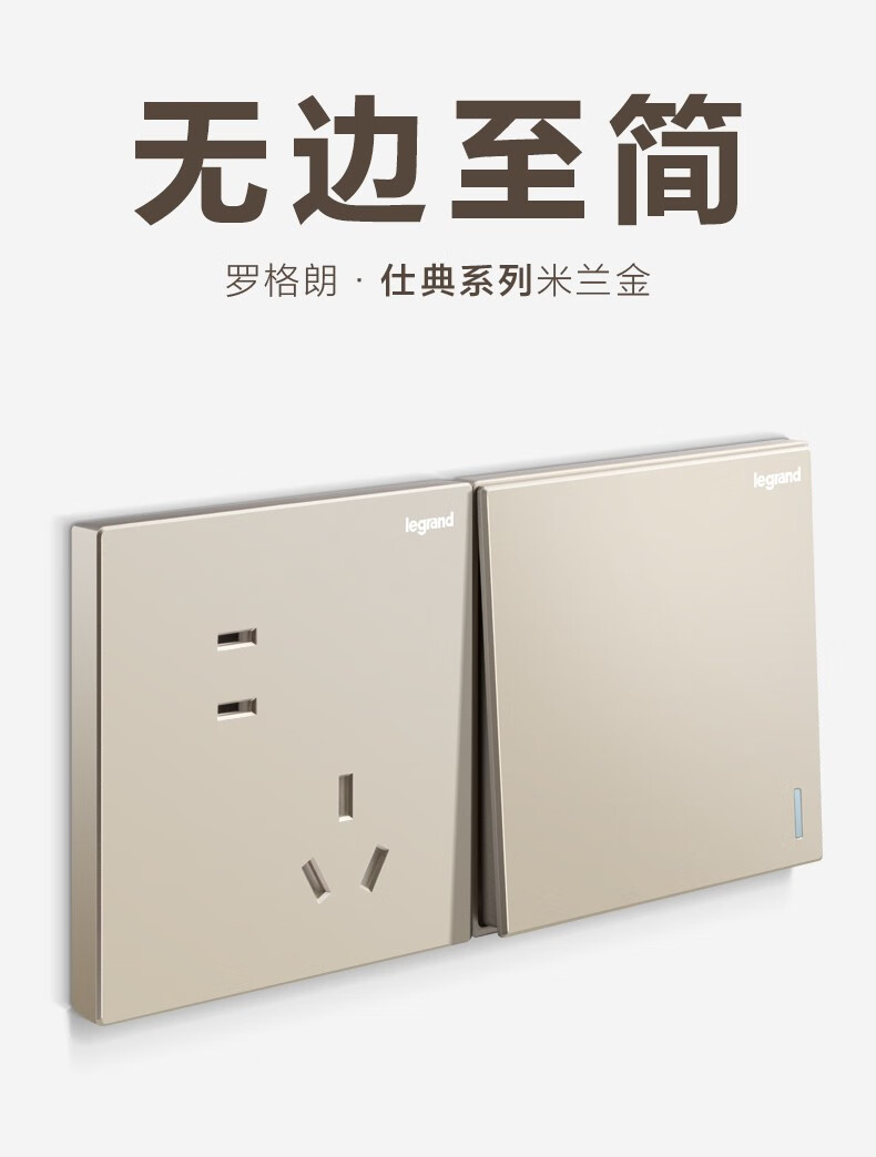 罗格朗 开关插座面板仕典米兰金家用86型五孔带USB墙壁电源暗装多孔插座 逸景银色五孔10只装 【开关插座清单报价】