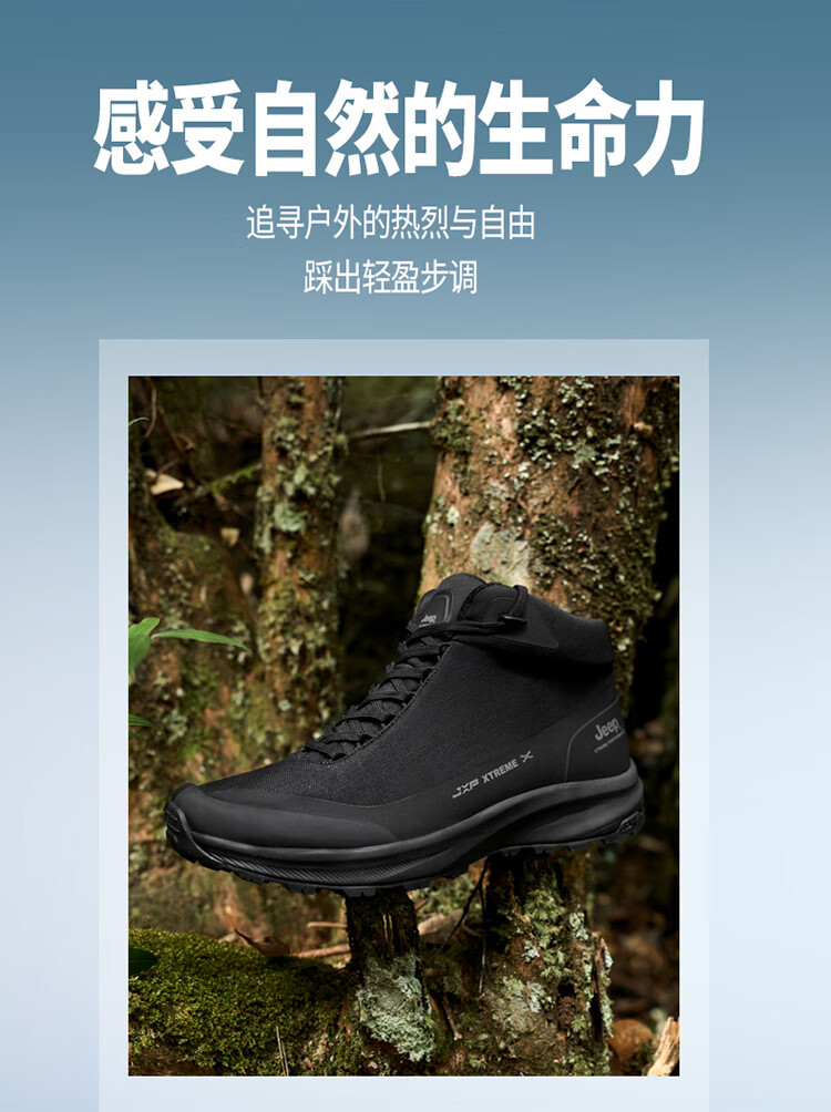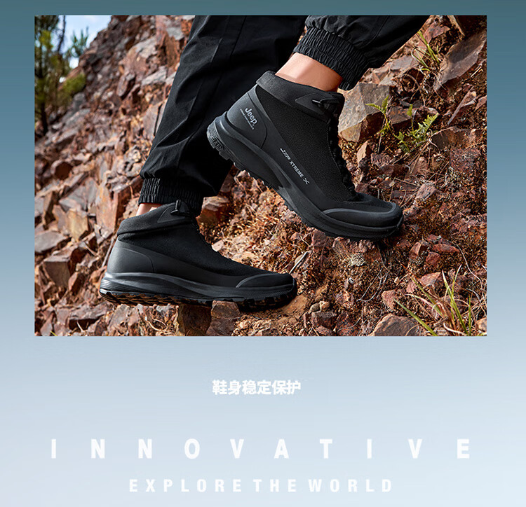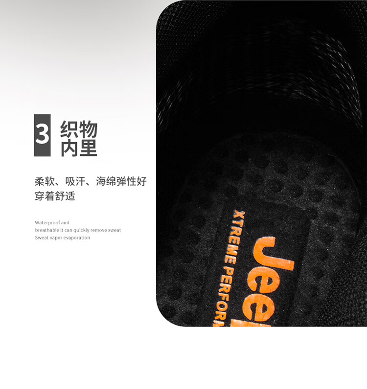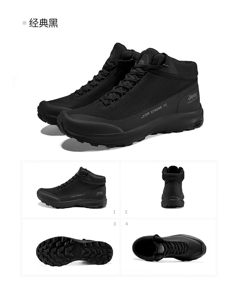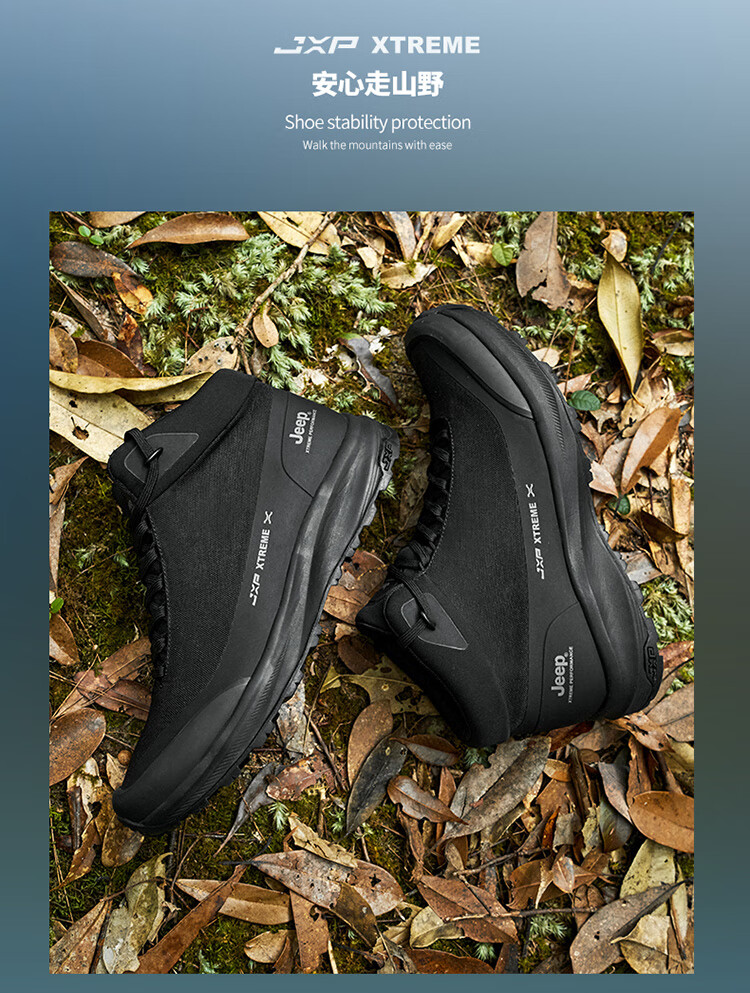 JEEP黑武士老爹鞋男秋冬新款防滑防水徒步登山鞋户外透气休闲运动鞋 经典黑 39
