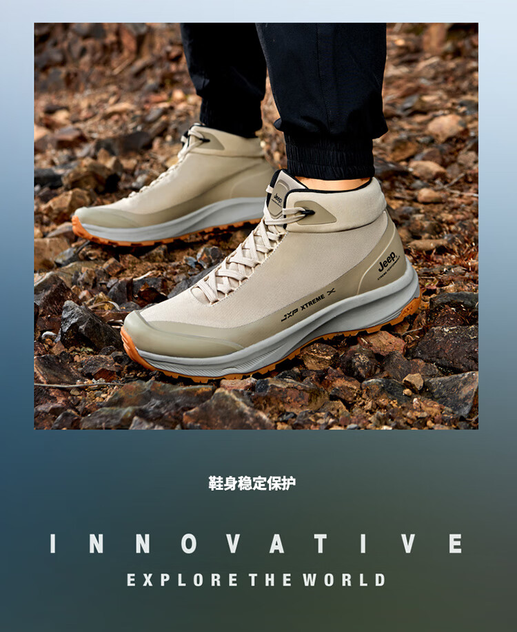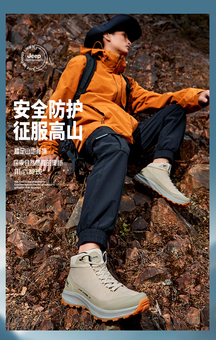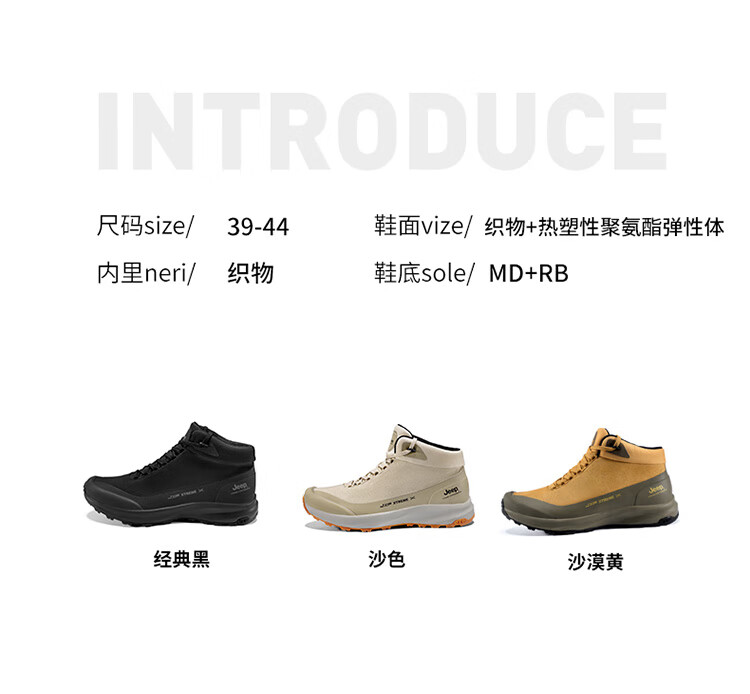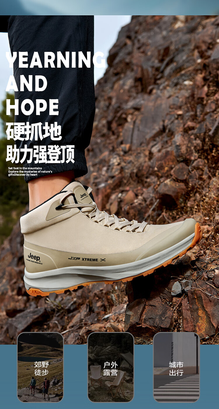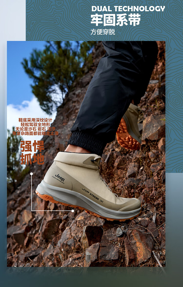 JEEP黑武士老爹鞋男秋冬新款防滑防水徒步登山鞋户外透气休闲运动鞋 经典黑 39