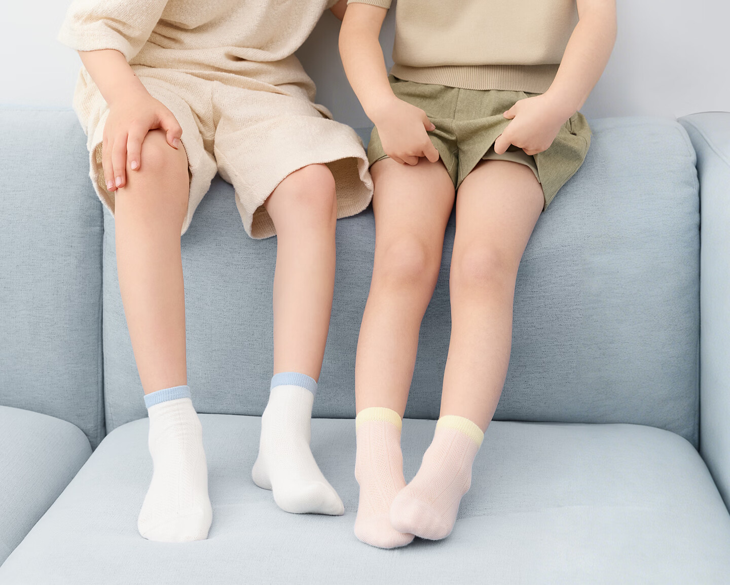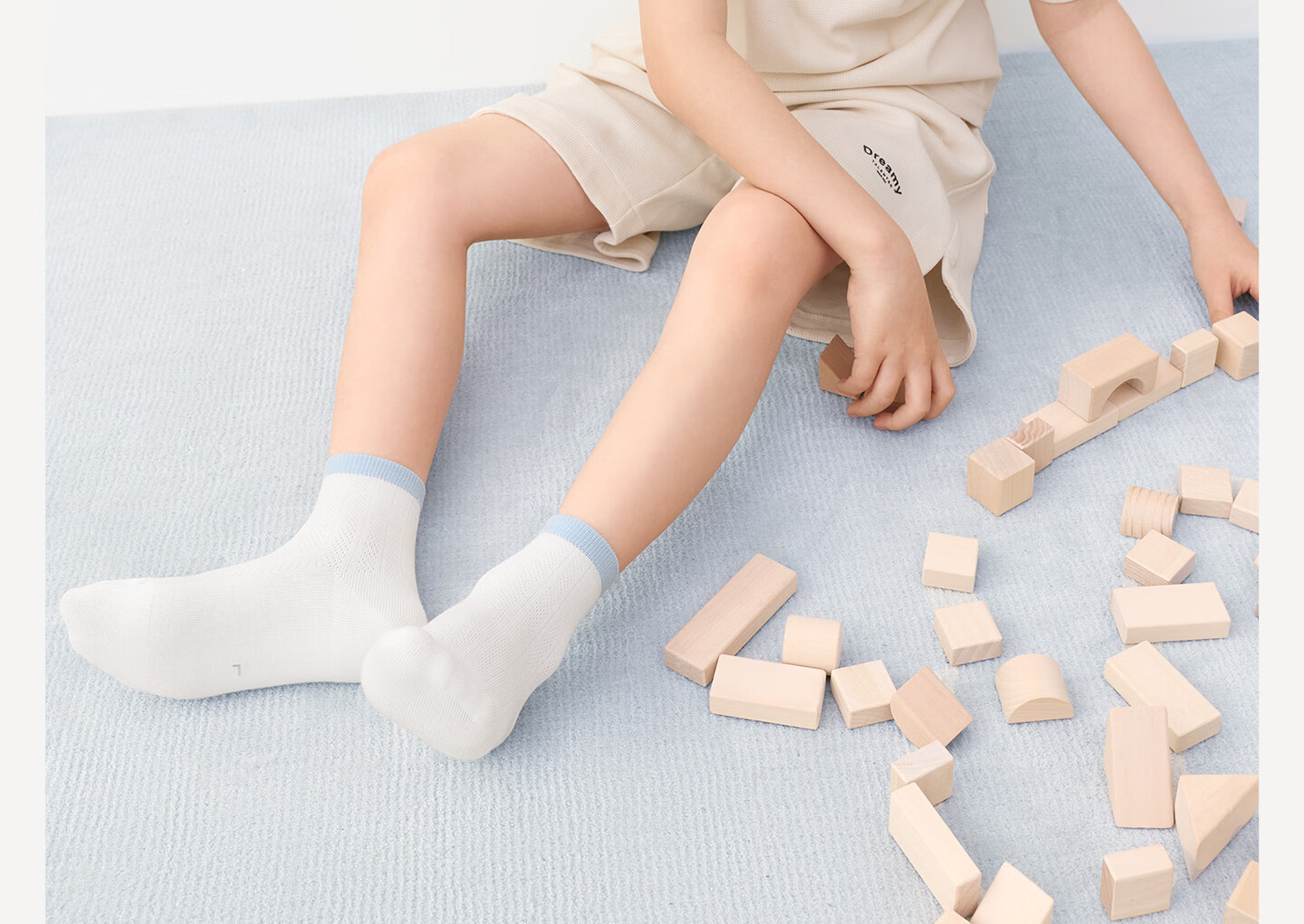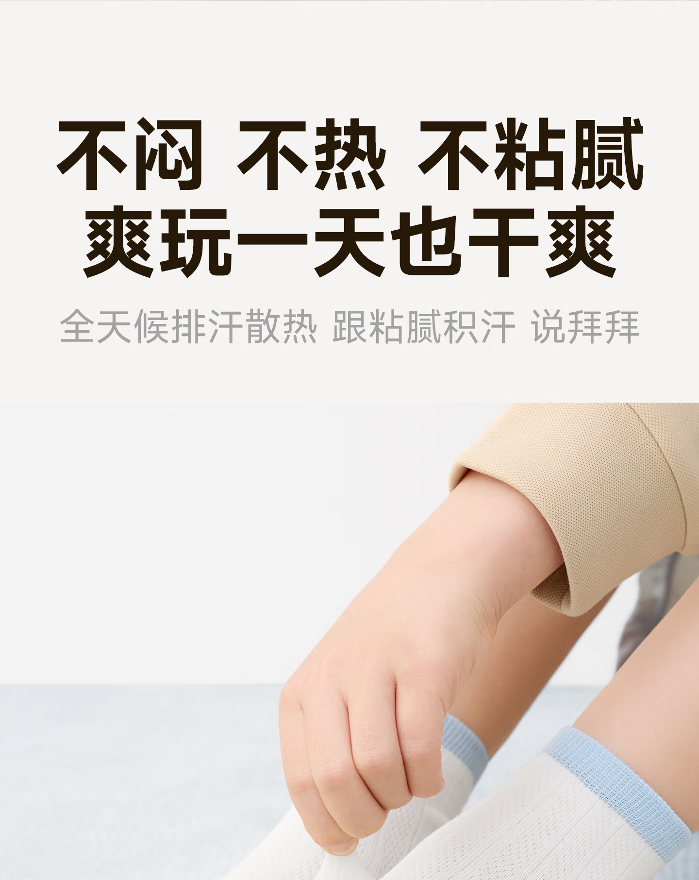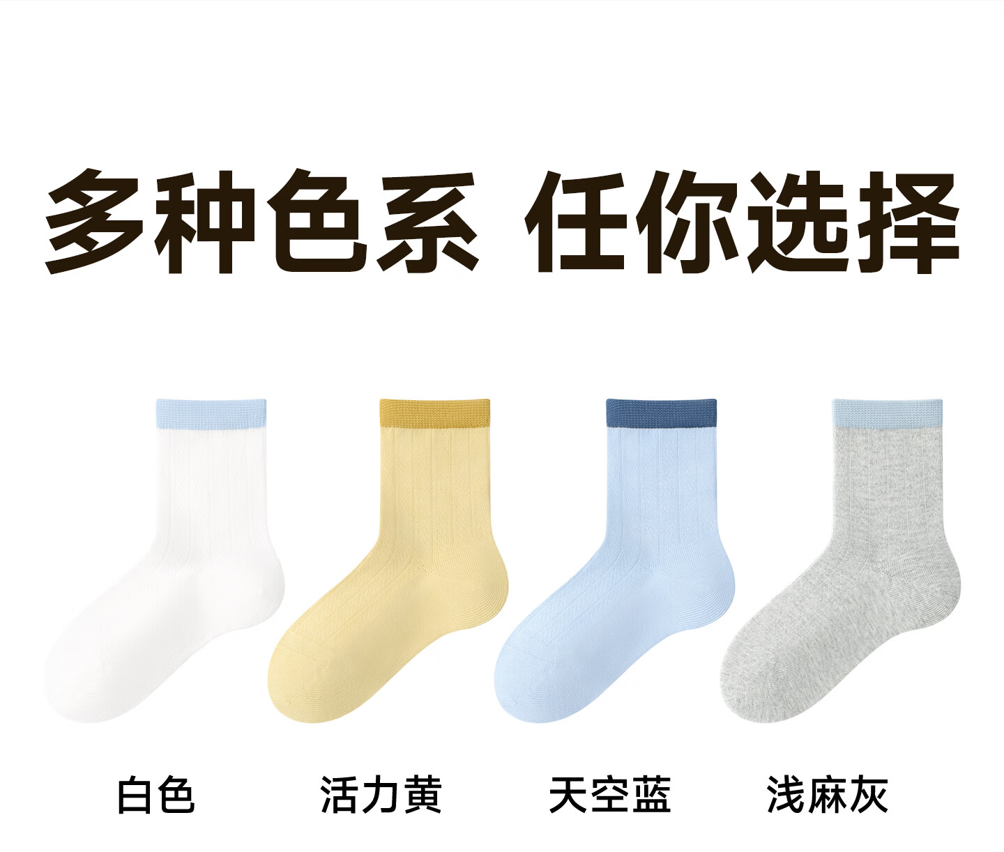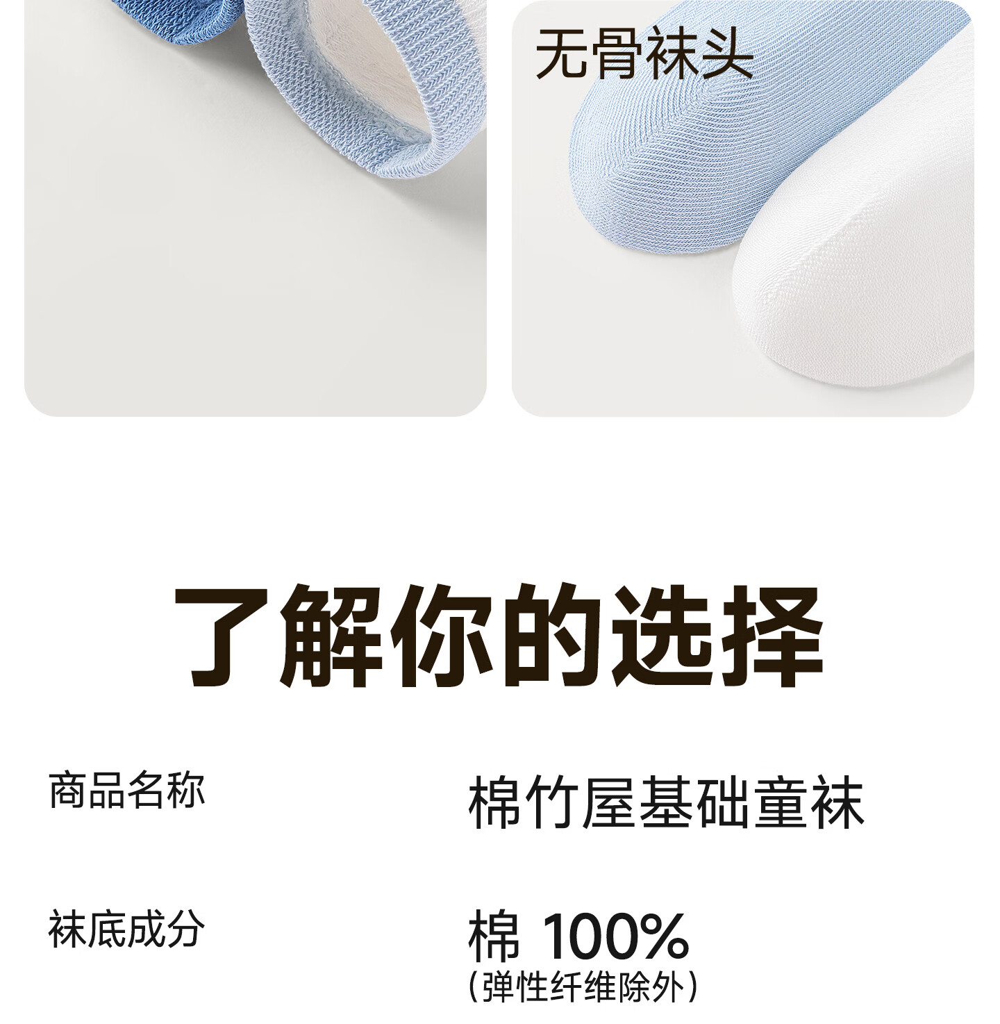 棉竹屋儿童袜子男童春夏季薄款纯棉100全棉a类网眼透气抗菌女童学生中筒 白色+浅麻灰+天空蓝+深蓝色+黑色 5双 9-12岁 适用脚长20-22cm XL