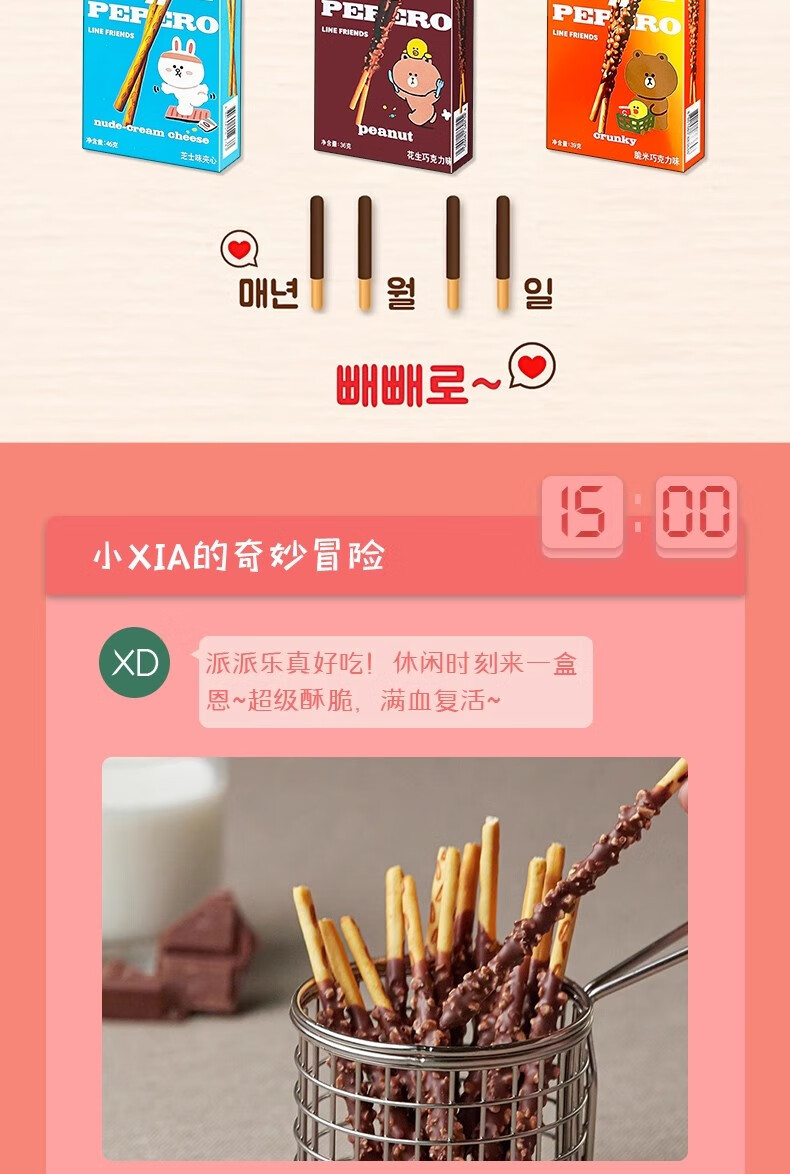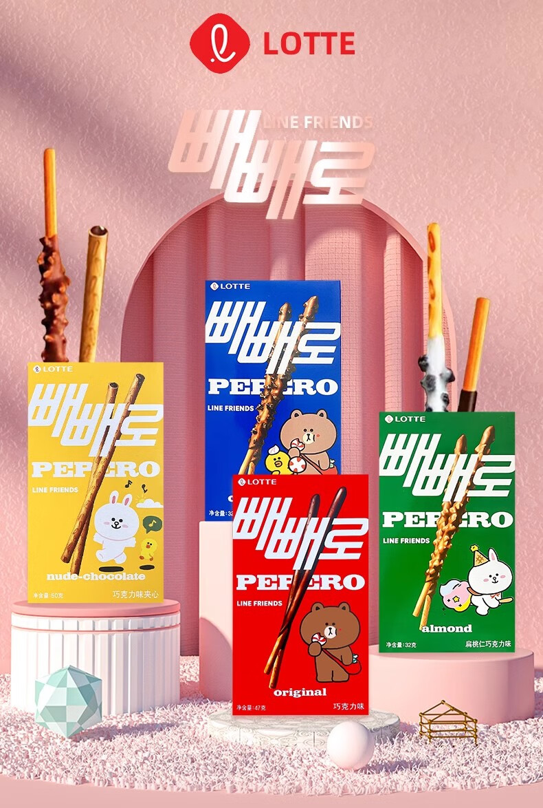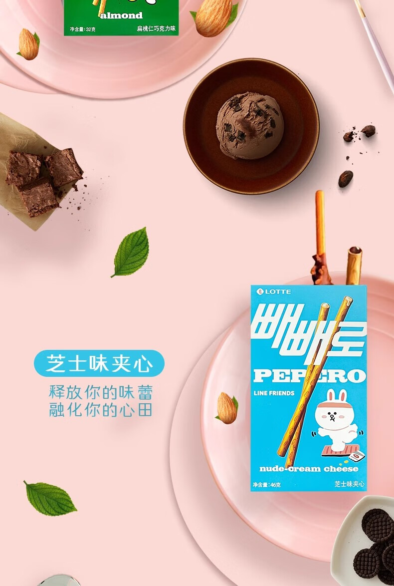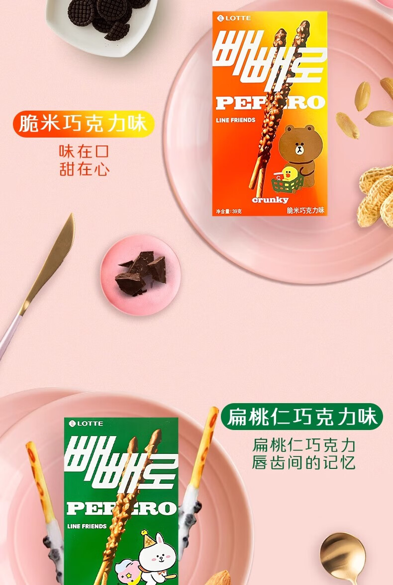 乐天 (LOTTE) 韩国进口pepero派派乐饼干棒涂层巧克力味装饰饼干休闲小零食 扁桃仁巧1+曲奇颗粒味1+脆米味1