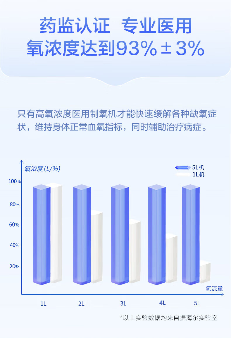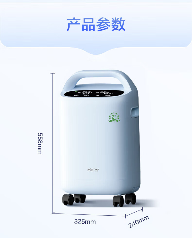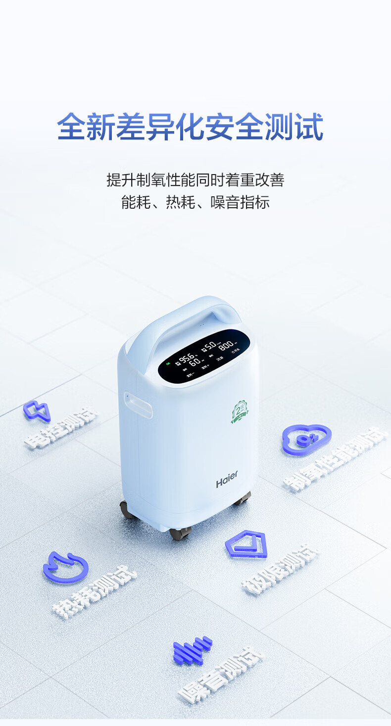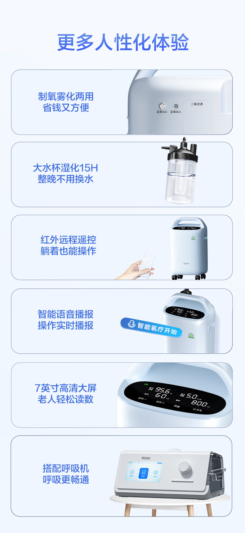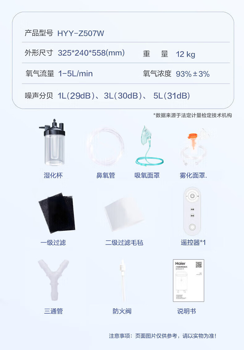 海尔制氧机家用老人医用5L升新国标中秋送礼吸氧机雾化一体机接呼吸机 3L医用雾化经典款301W+血氧仪