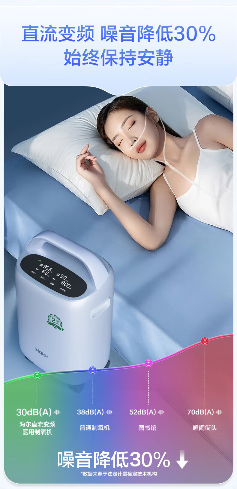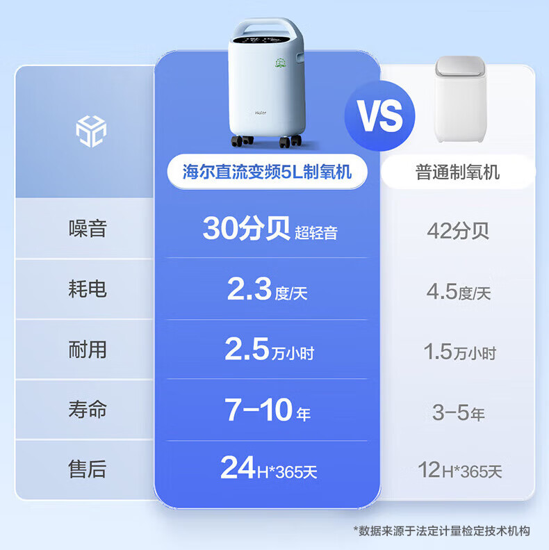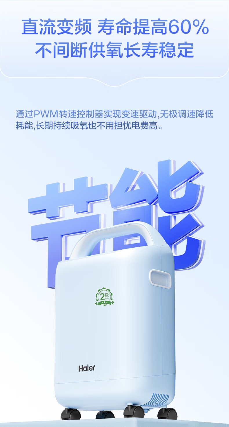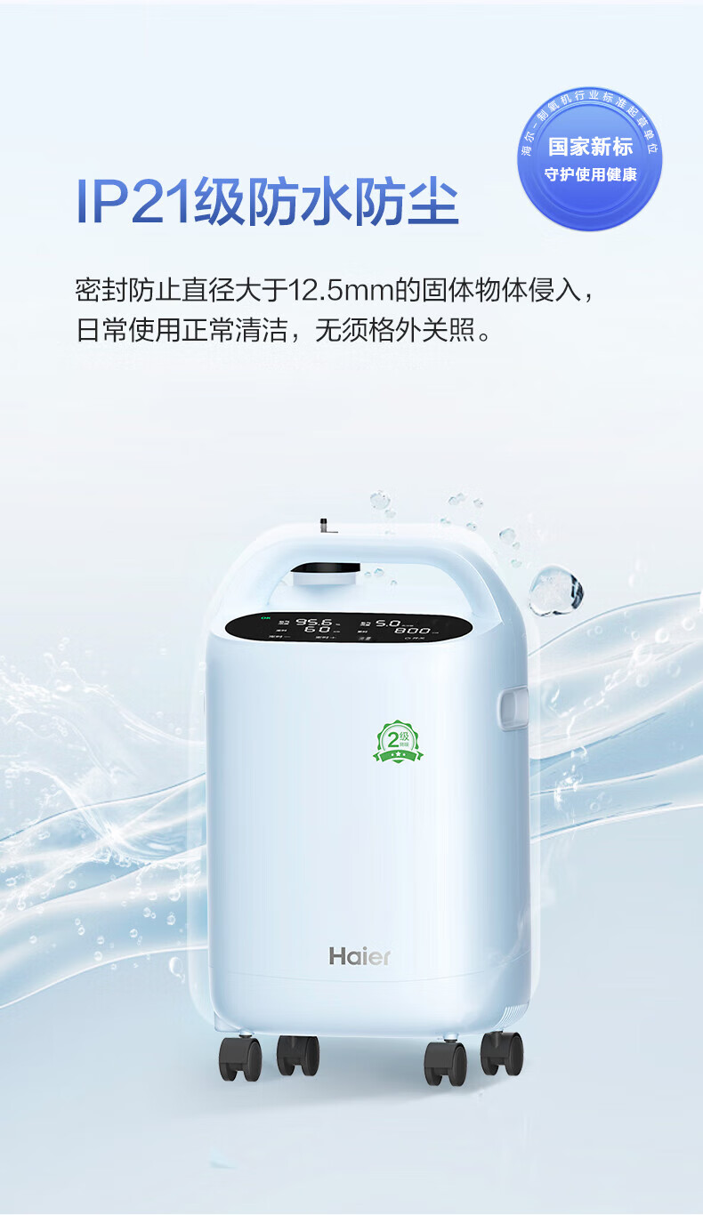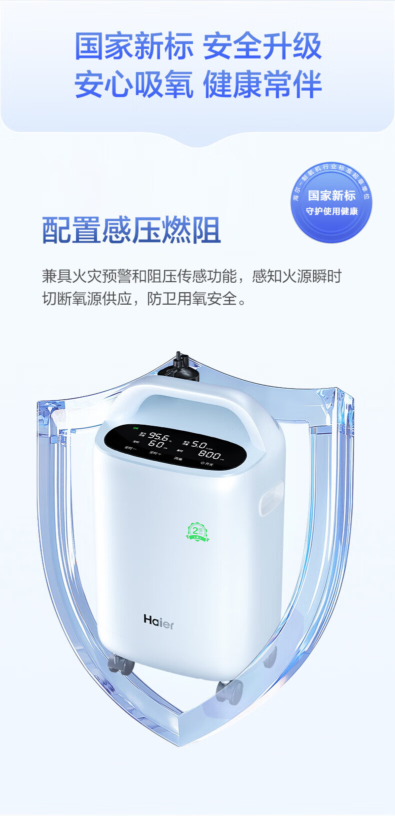 海尔制氧机家用老人医用5L升新国标中秋送礼吸氧机雾化一体机接呼吸机 3L医用雾化经典款301W+血氧仪