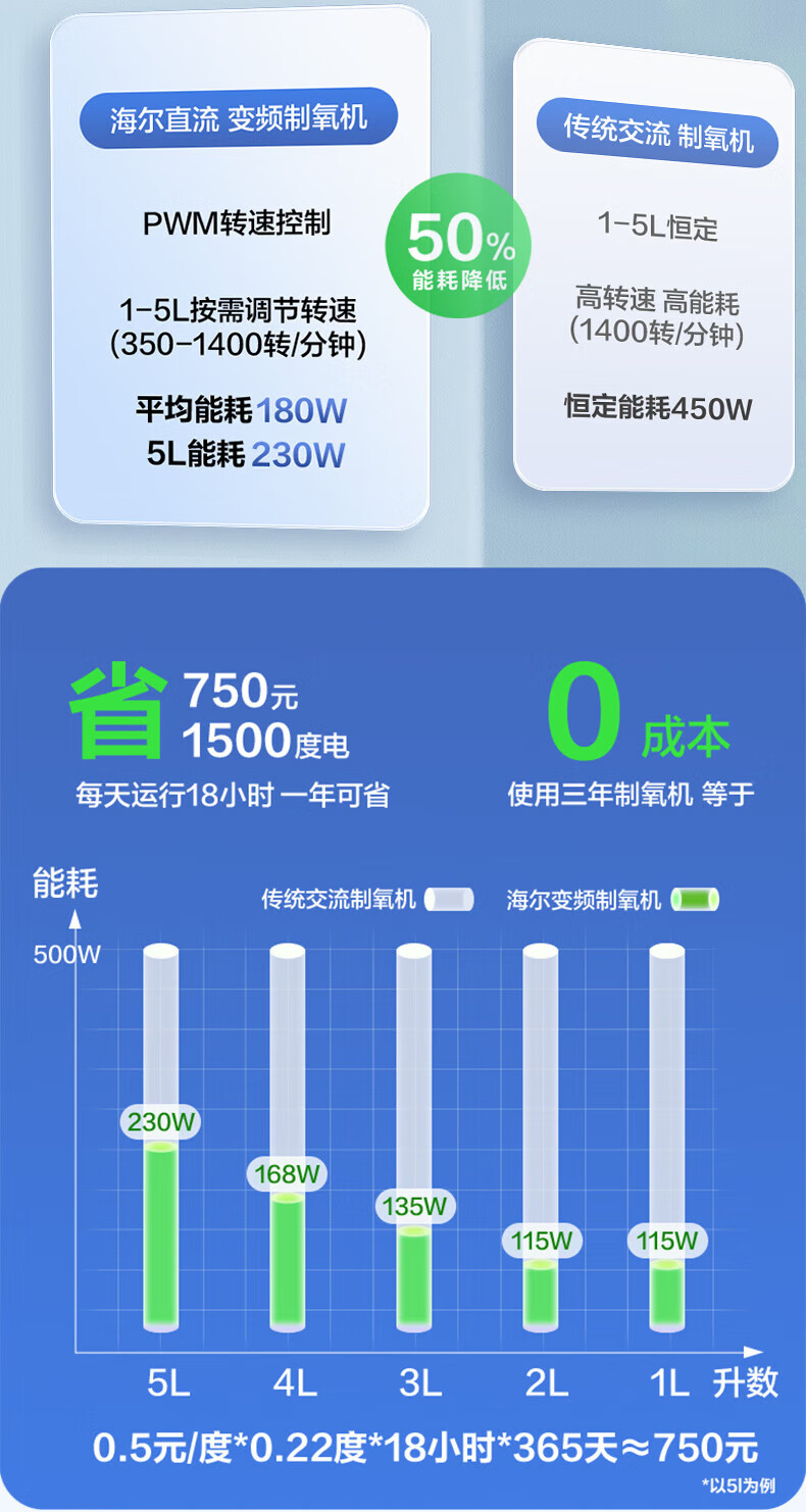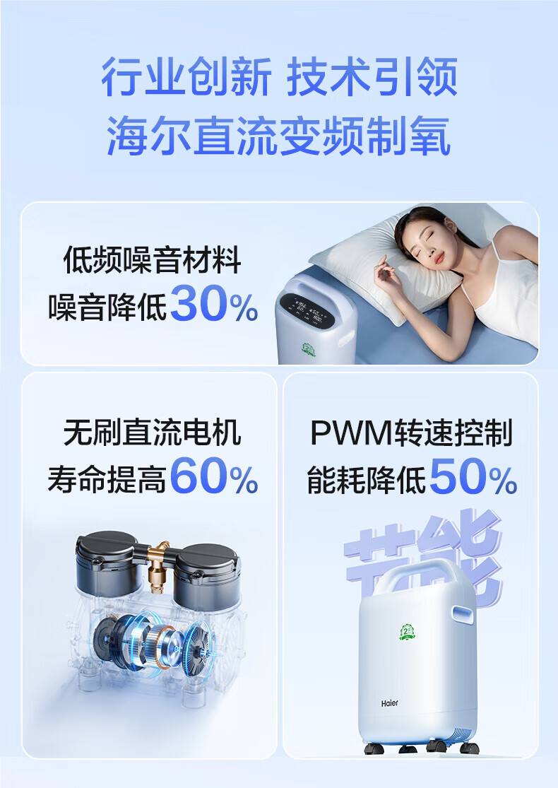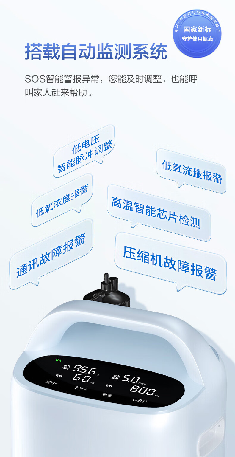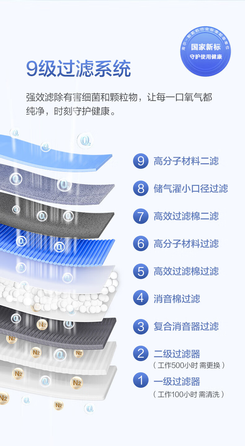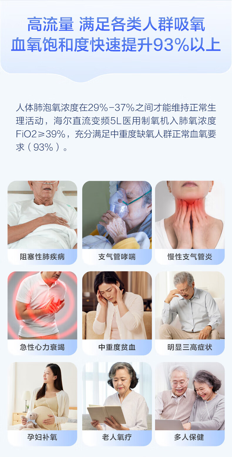 海尔制氧机家用老人医用5L升新国标中秋送礼吸氧机雾化一体机接呼吸机 3L医用雾化经典款301W+血氧仪