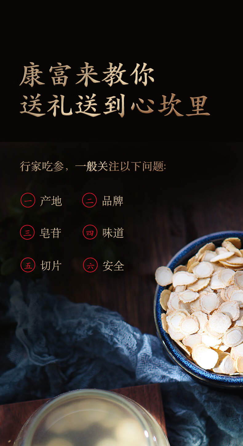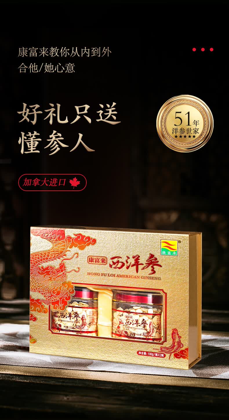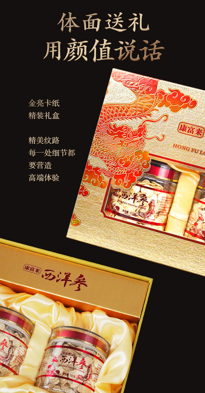 康富来西洋参片200克礼盒装加拿大进口花旗参切片高档健康礼盒送礼佳品