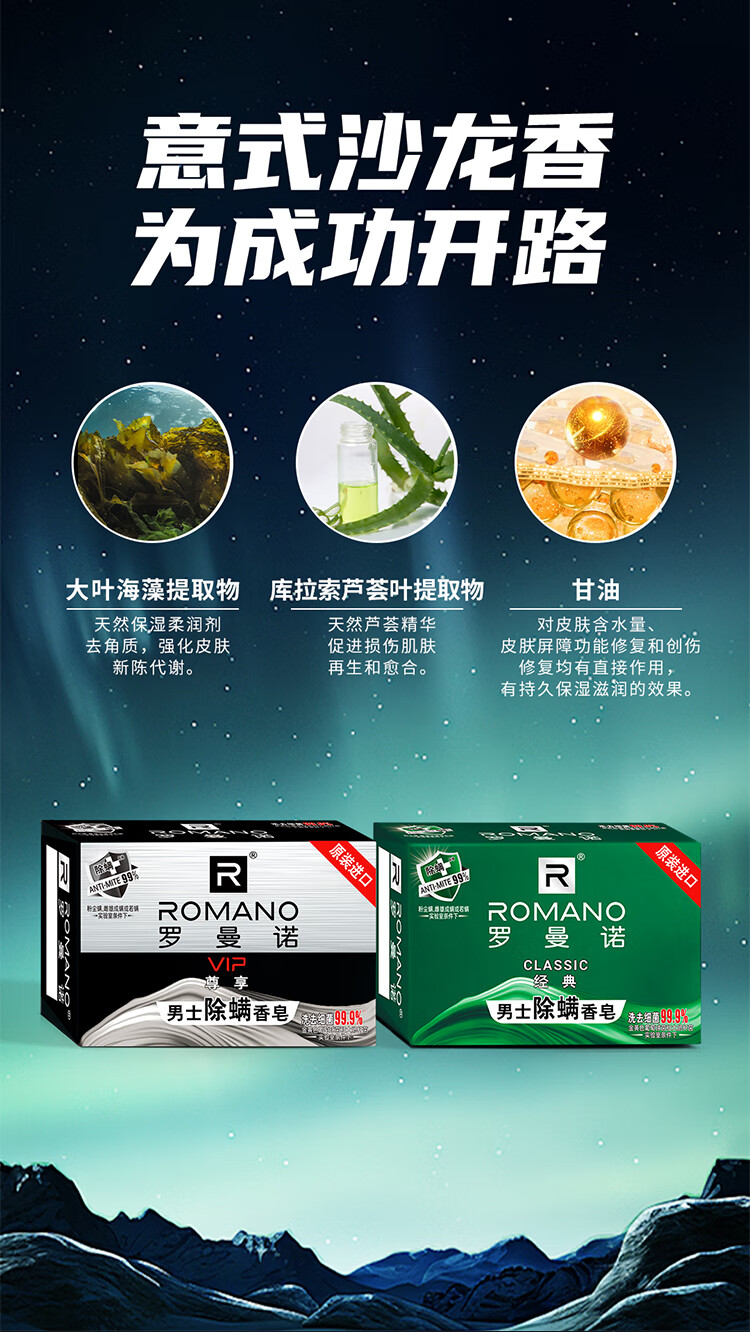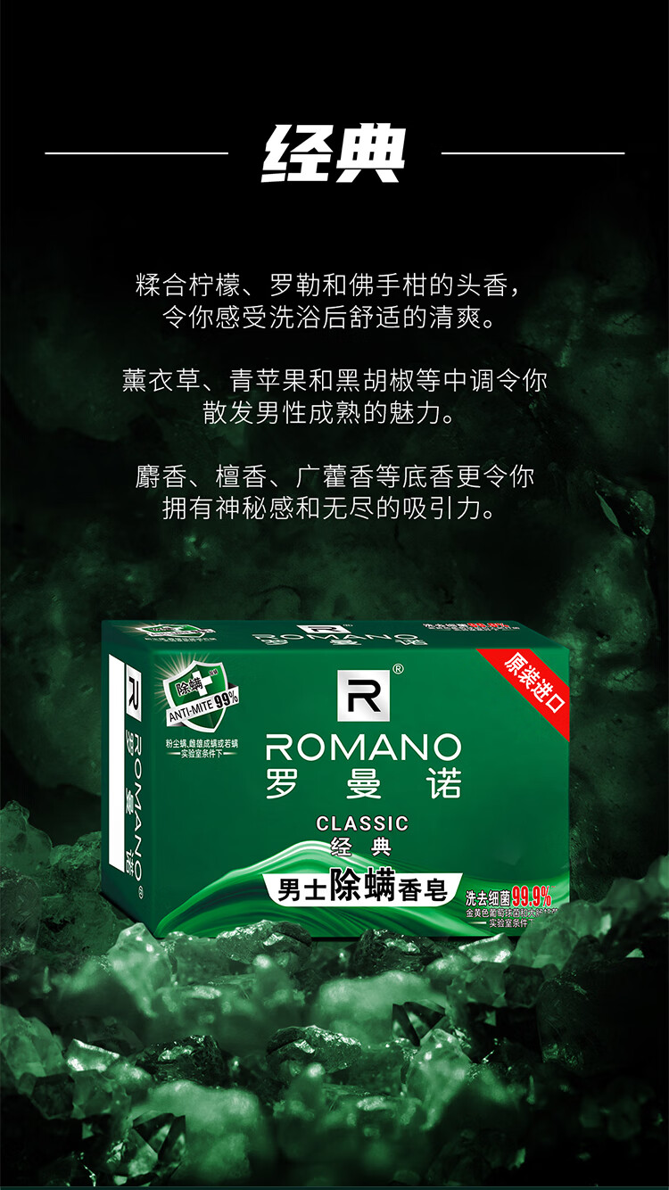 罗曼诺(ROMANO)经典男士除螨香皂控油清爽保湿留香 洗澡洗手沐浴清洁多用肥皂