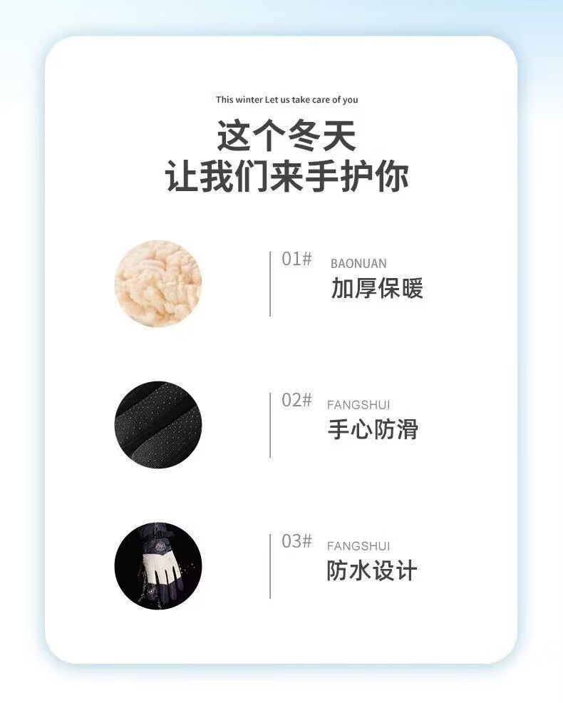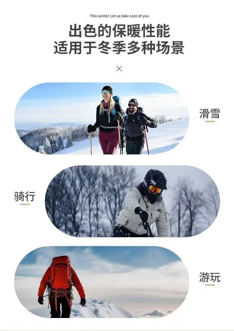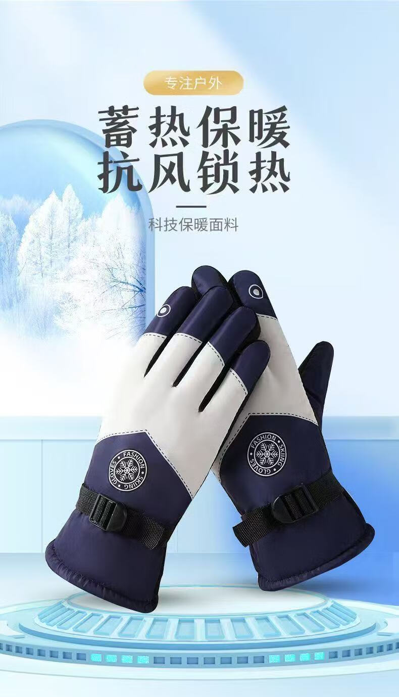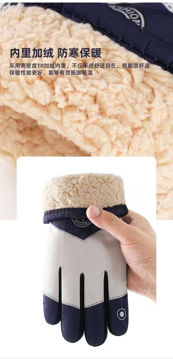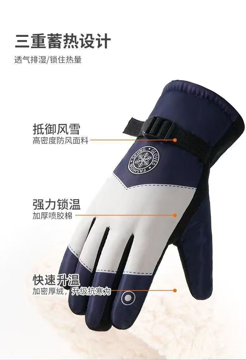 保暖防寒手套防风防水加绒特厚男女款手套骑行手套户外冬季棉手套 黑色