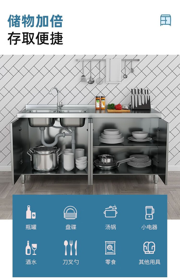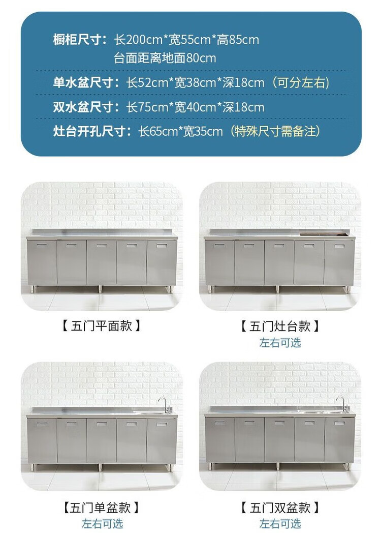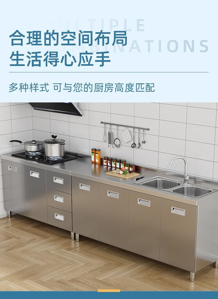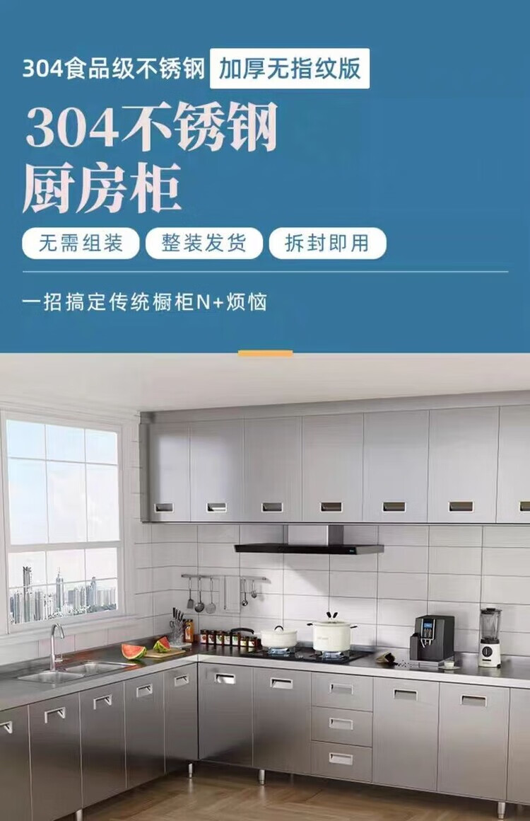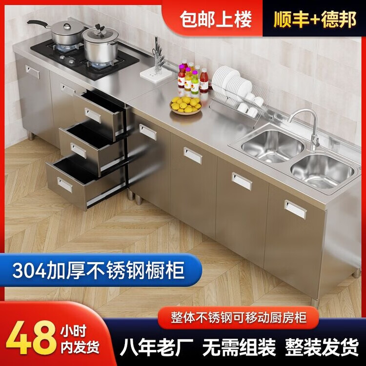 迈途森304整体不锈钢厨房橱柜简易灶台一体储物收纳碗柜农村家用小户型 40cm平面款 (角柜) 201不锈钢加厚款