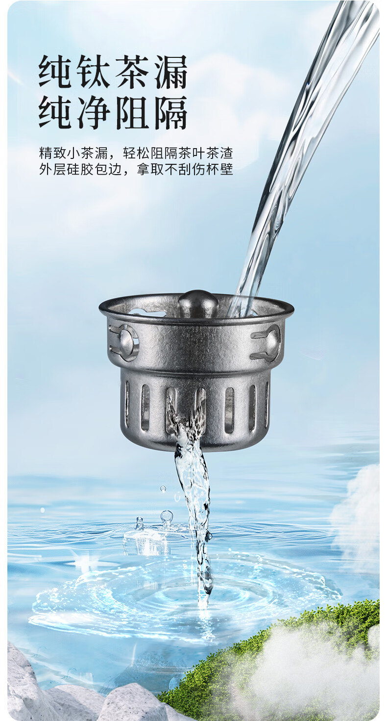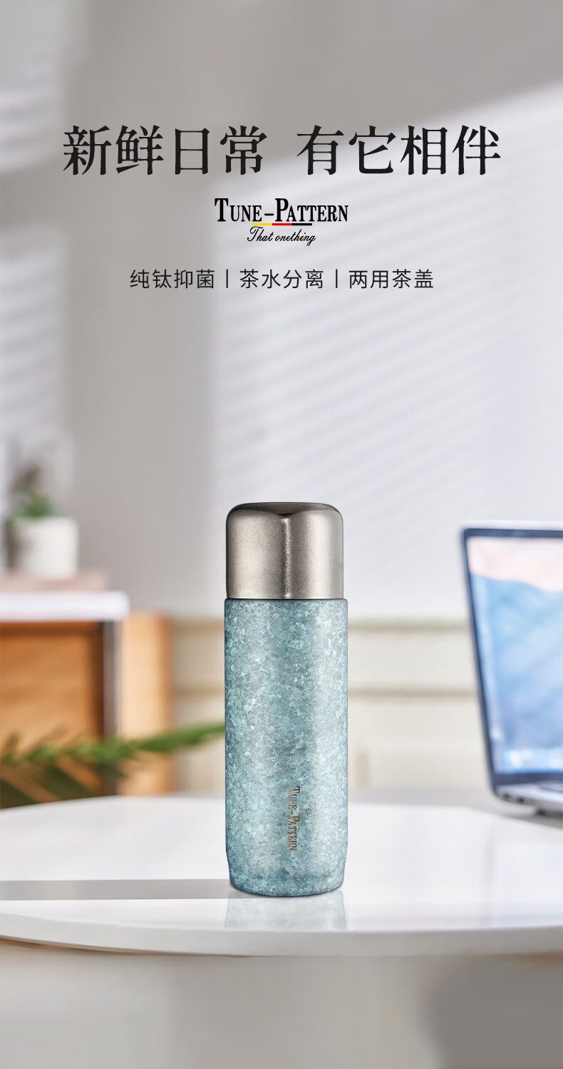 大卡纯钛保温杯高档焖茶杯茶水分离养生泡茶水杯商务办公礼品钛杯定制 青釉星碎【纯钛+礼盒】430ml