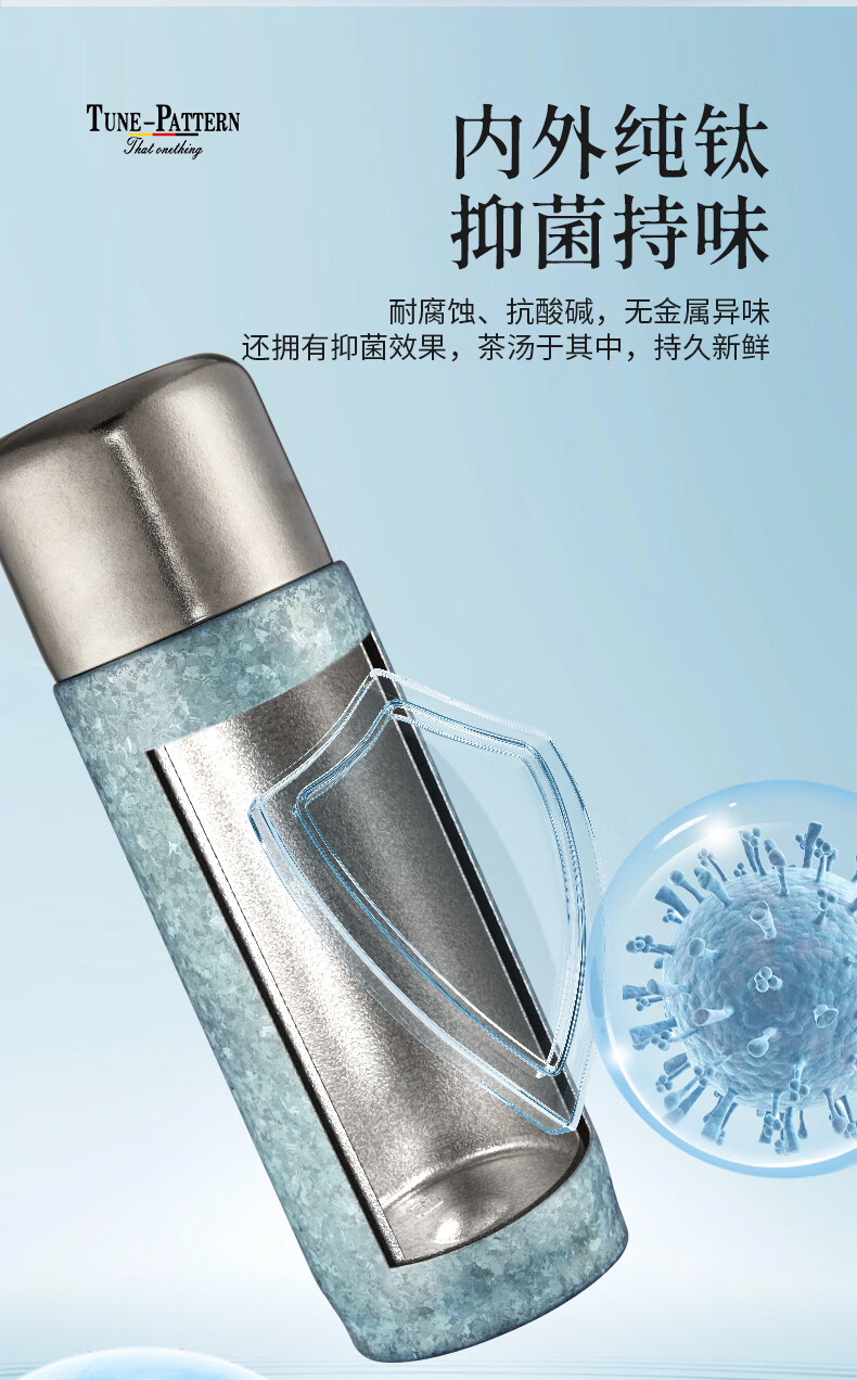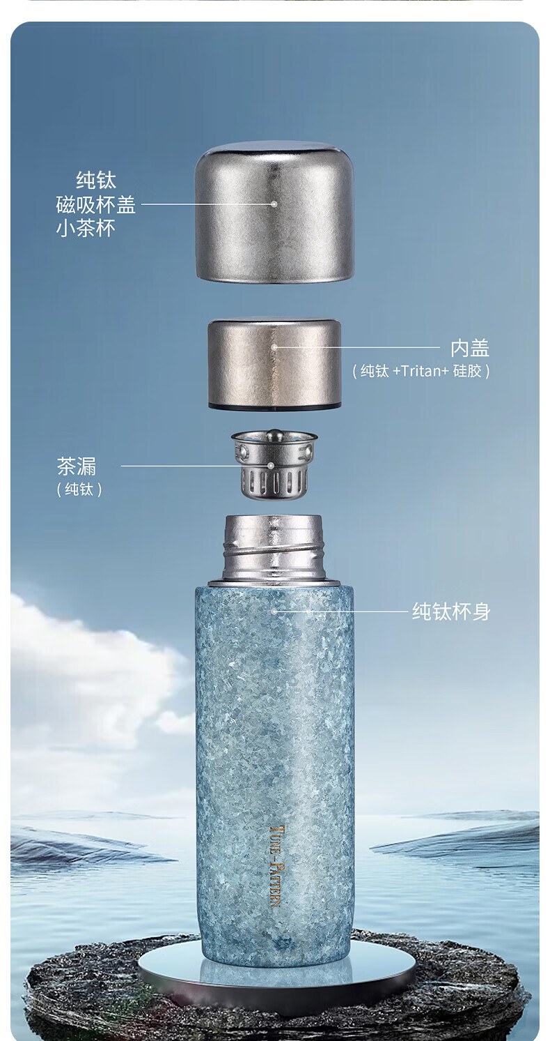 TUNE-PATTERN纯钛保温杯磁吸焖泡杯臻享双层钛杯子泡茶茶水分离养生送礼礼盒 炫银【送定制杯套+杯刷】450ml