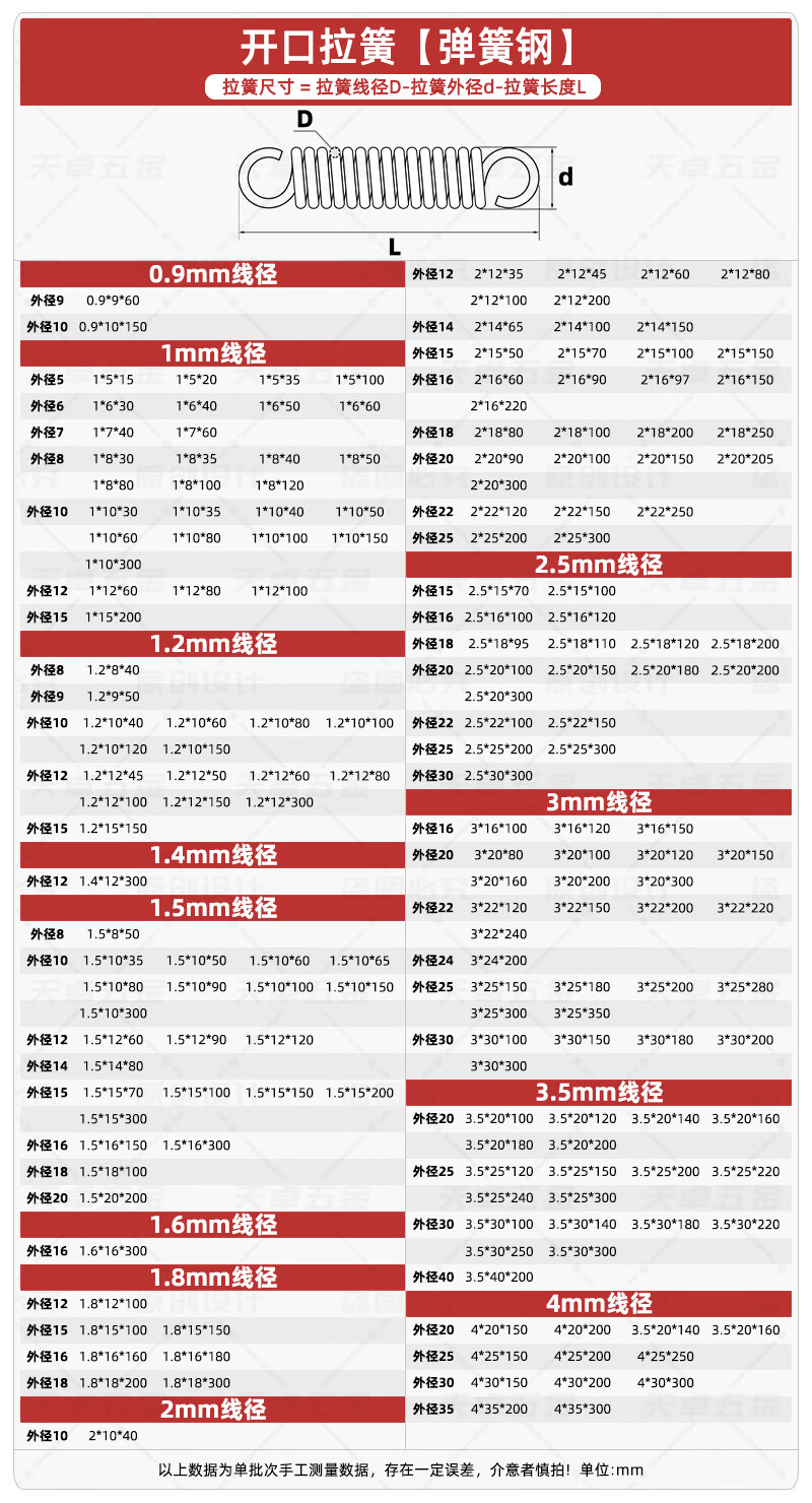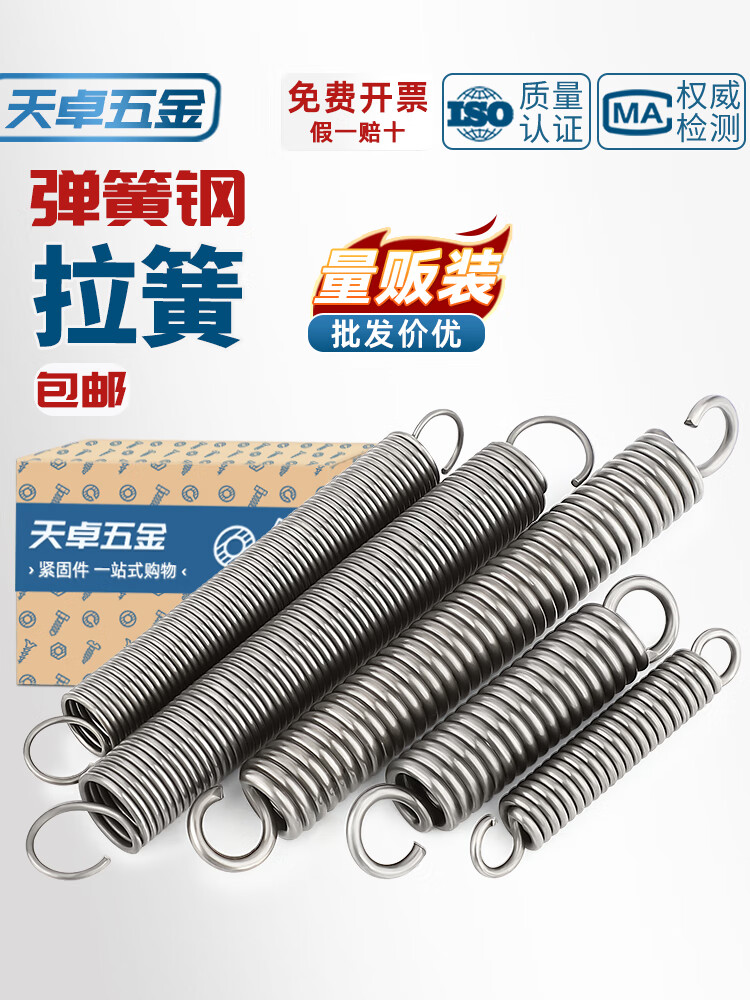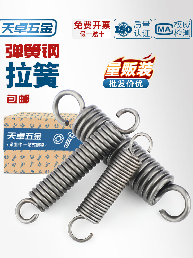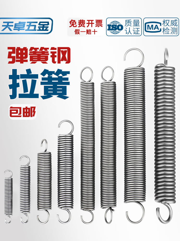 天卓五金小弹簧现货拉簧带钩定制强力拉伸平板车不锈钢烤箱拖把镀锌回拉簧 3.5*25*200(开口)-1个