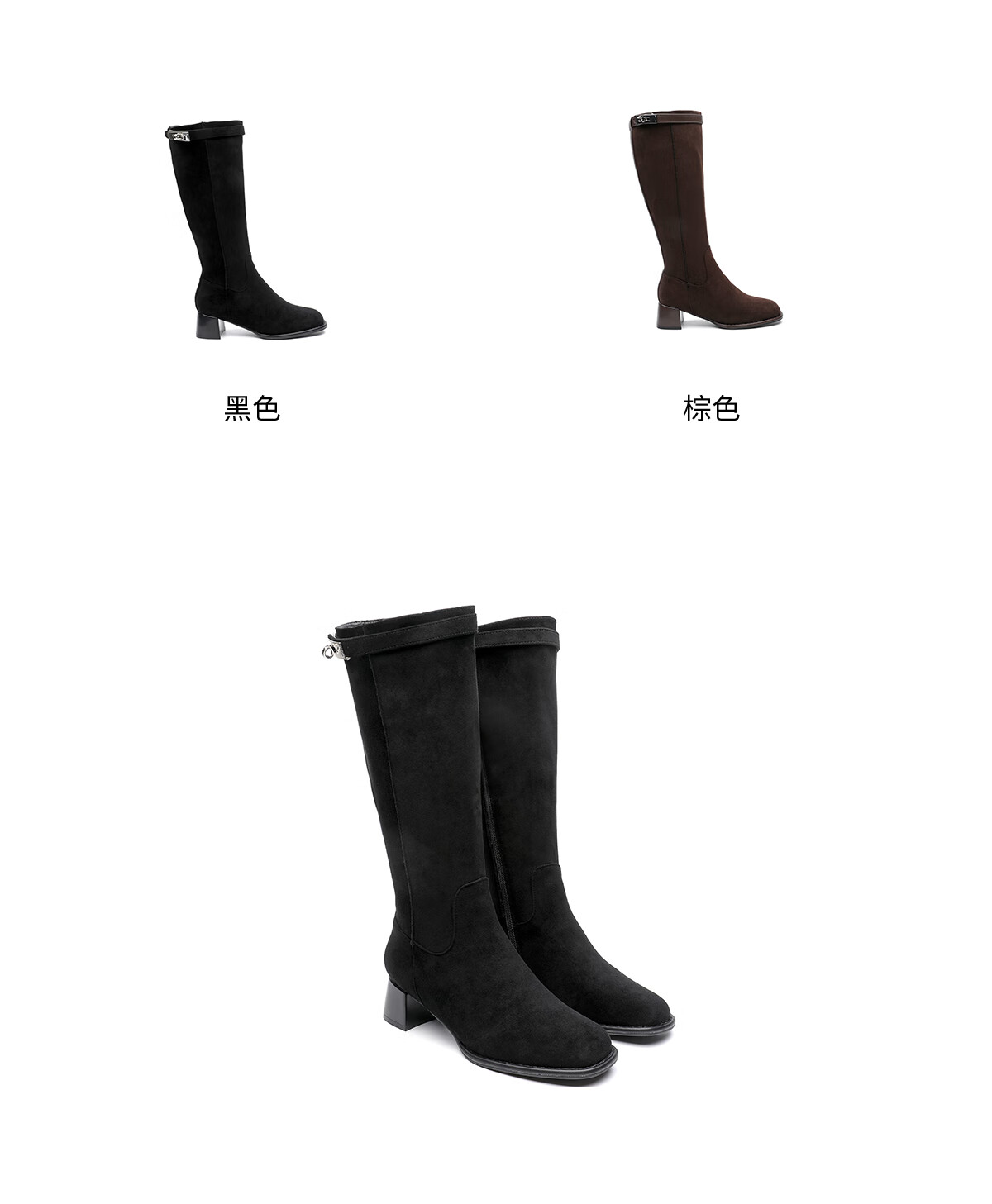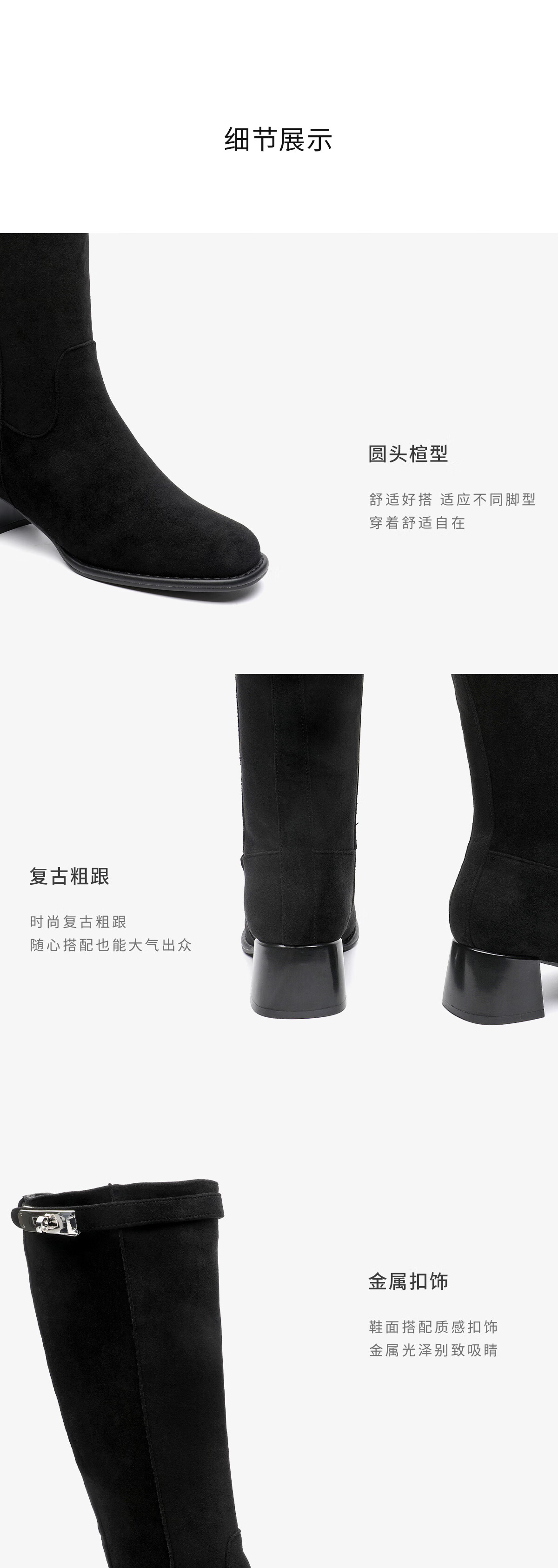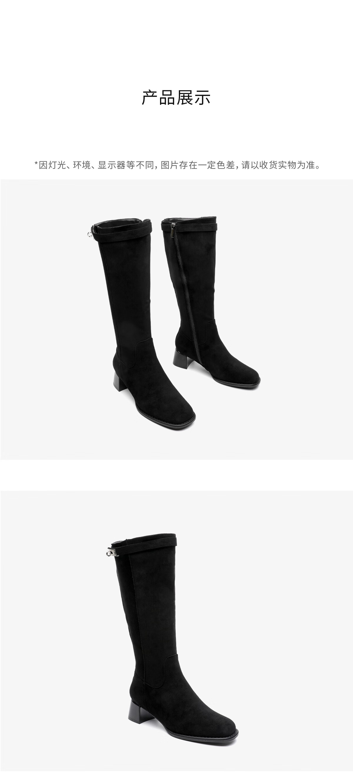 月芽儿高筒靴女2025年秋季季新款复古百搭骑士靴不过膝增高女靴子 绒里黑色01T 38