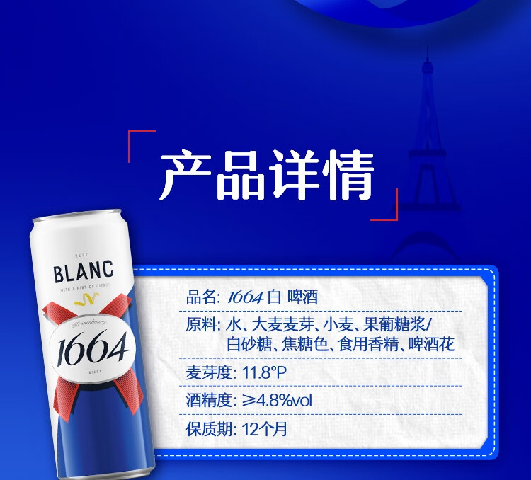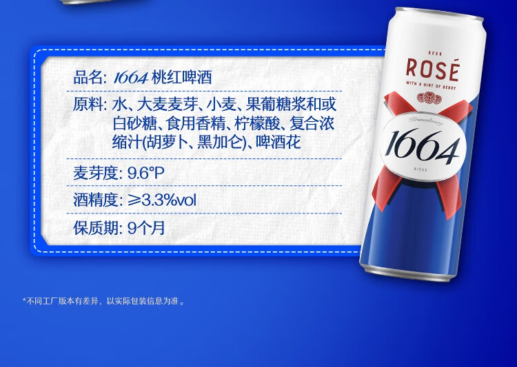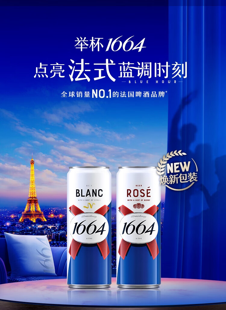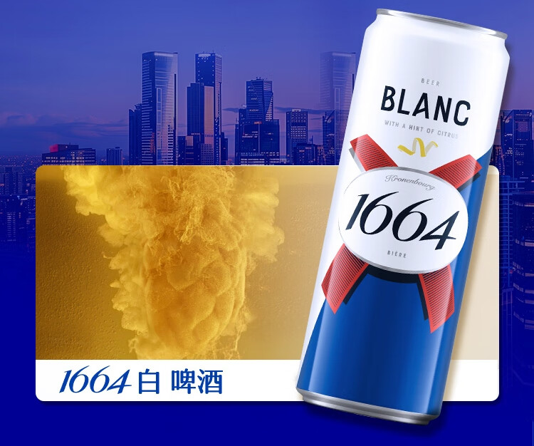 kronenbourg 1664 双口味310ml*18罐(白9+桃红9)精酿啤酒小麦风味喜酒京东自营
