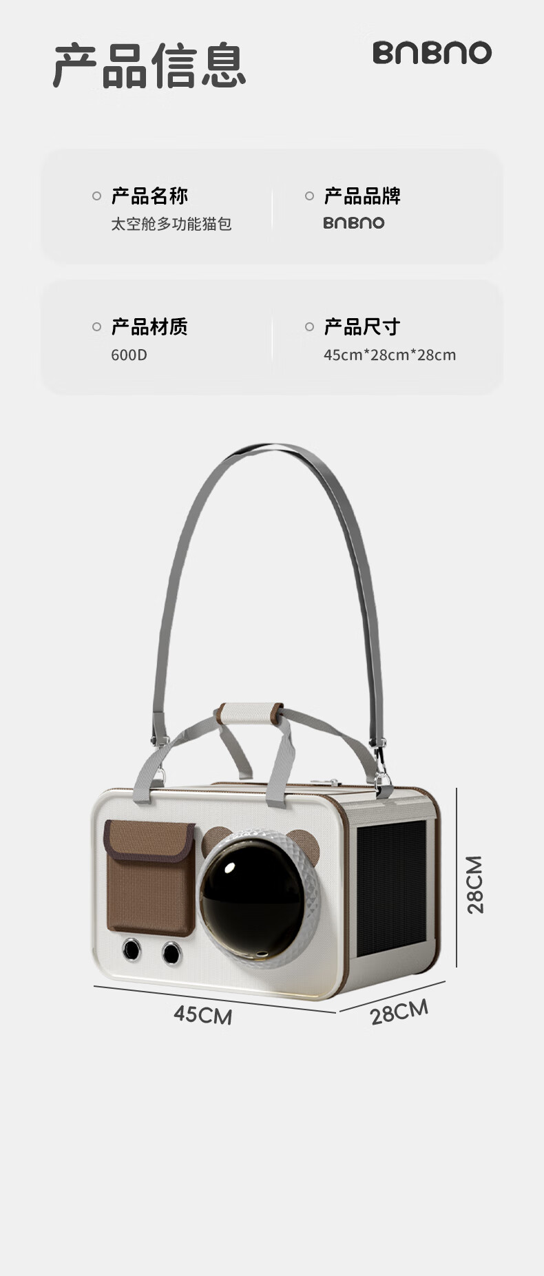 BNBNO猫包外出便携猫咪携带猫笼手提式车载包大容量高颜值单肩宠物背包