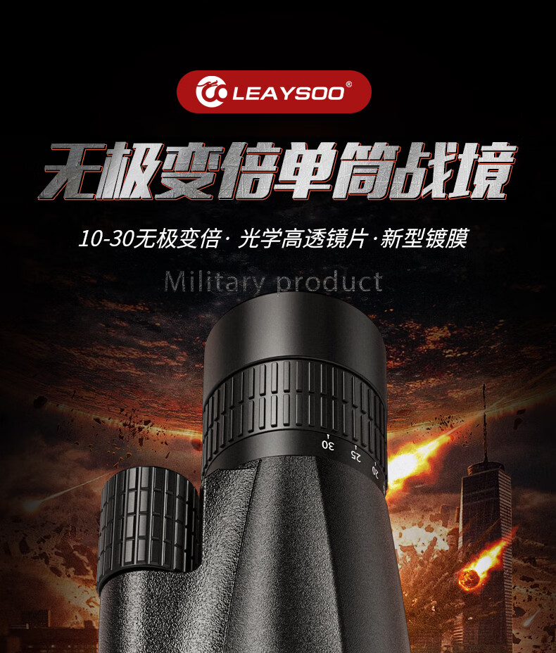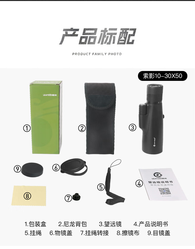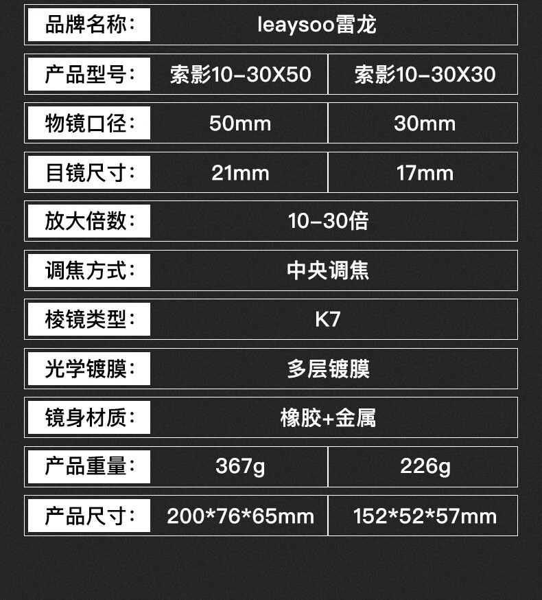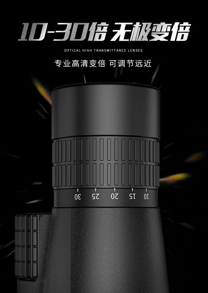 雷龙索影10-30X50无极变倍高清高倍微光可视便携专业级单筒手机望远镜