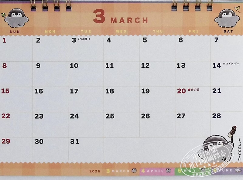 预售 正能量企鹅2026 插画日历 台历版 日文原版日韩 卓上 コウペンちゃん 2026年1月始まりカレンダー
