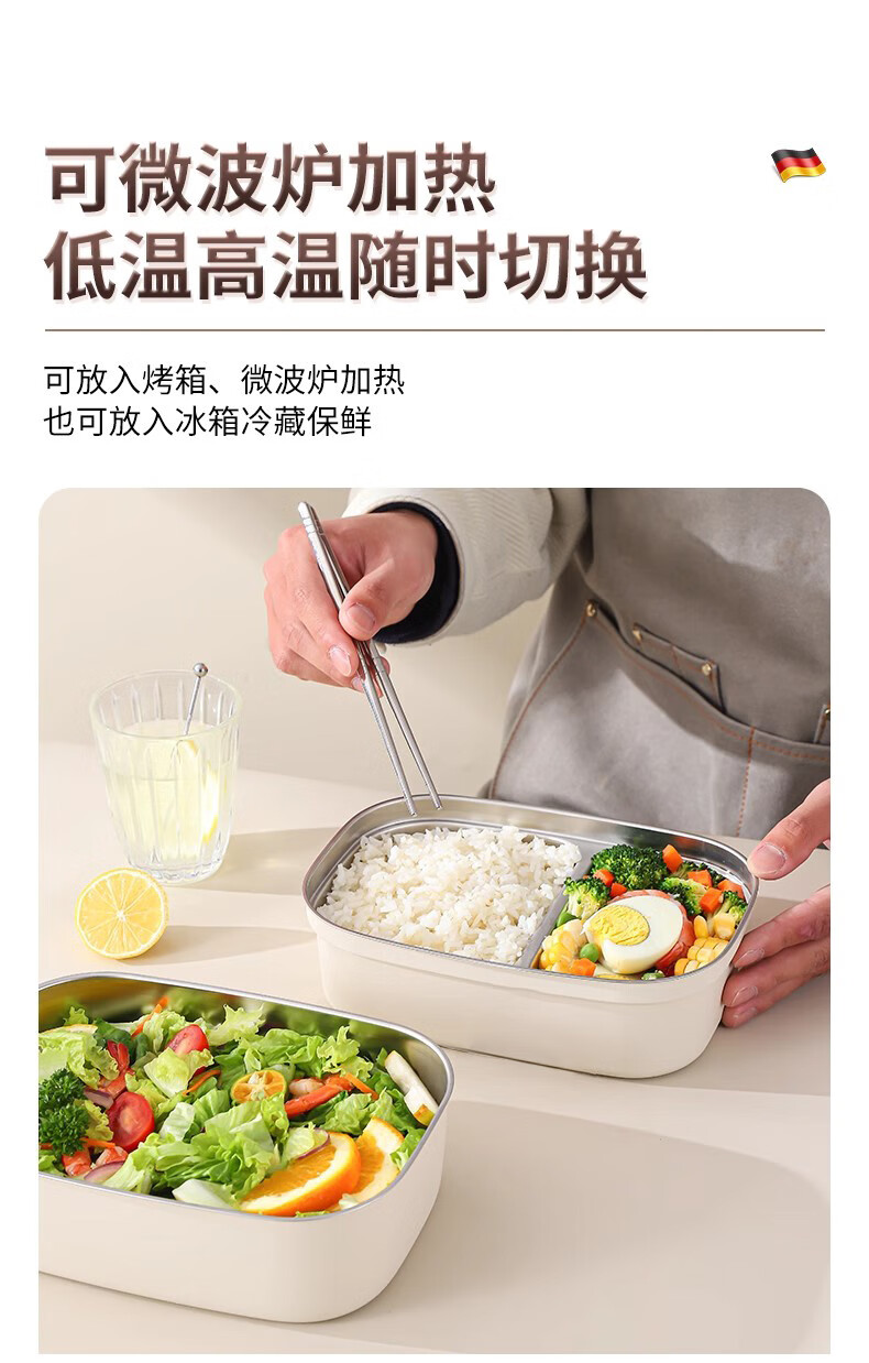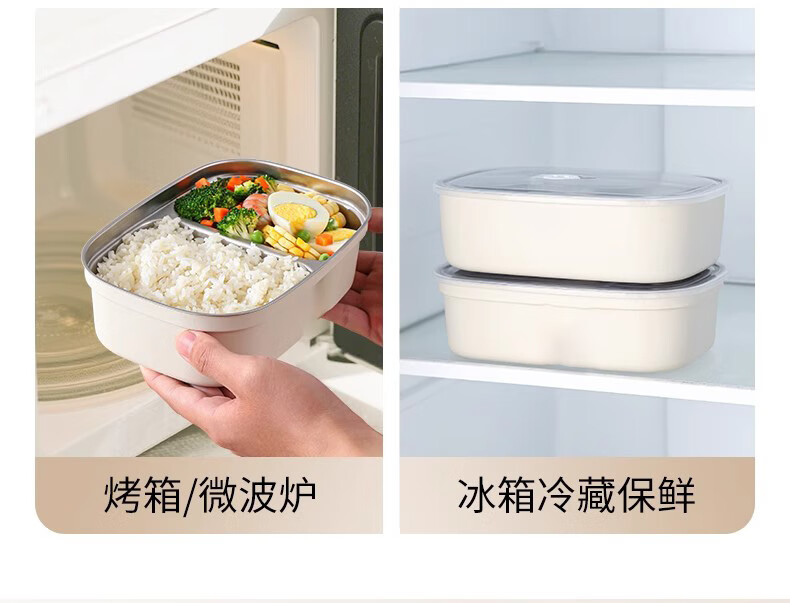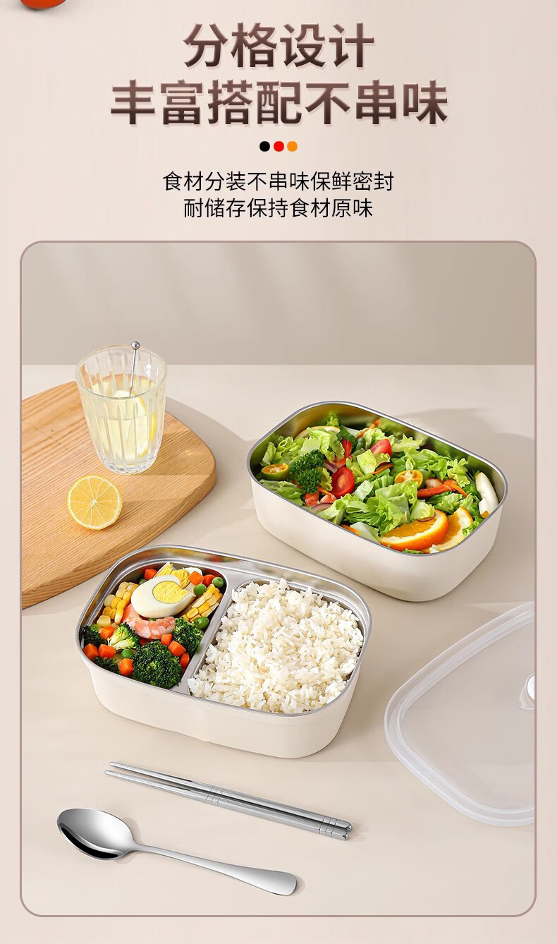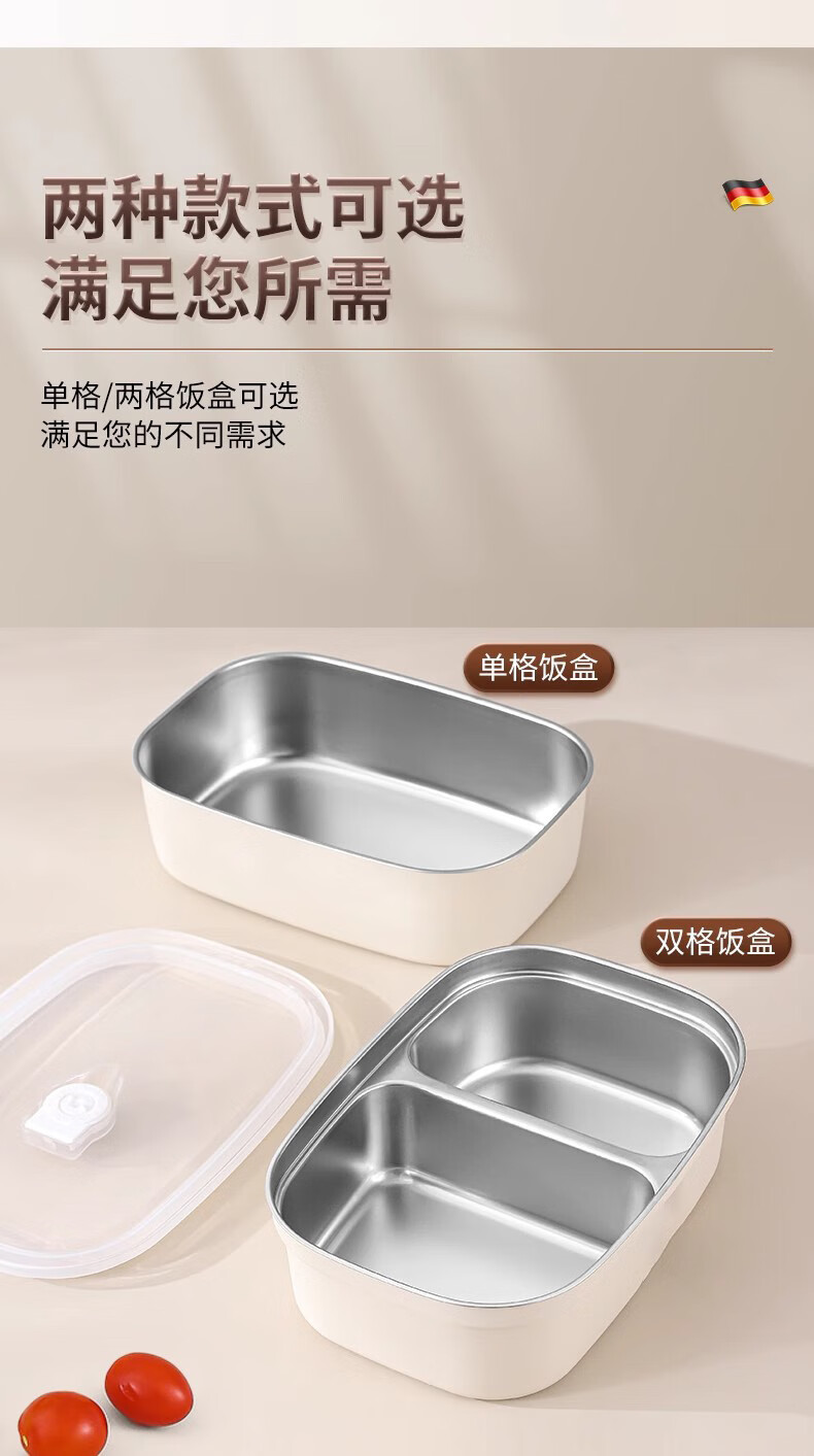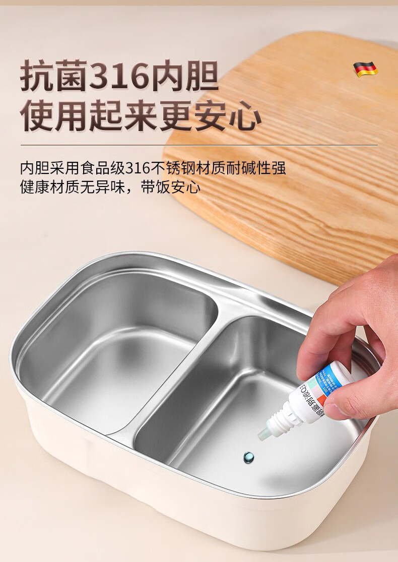 百亿熊316L不锈钢分隔饭盒抗菌上班族学生带饭微波炉加热便当餐盒多层 双格 1500ml