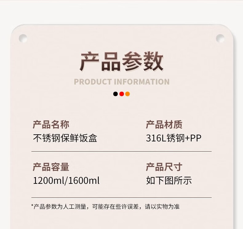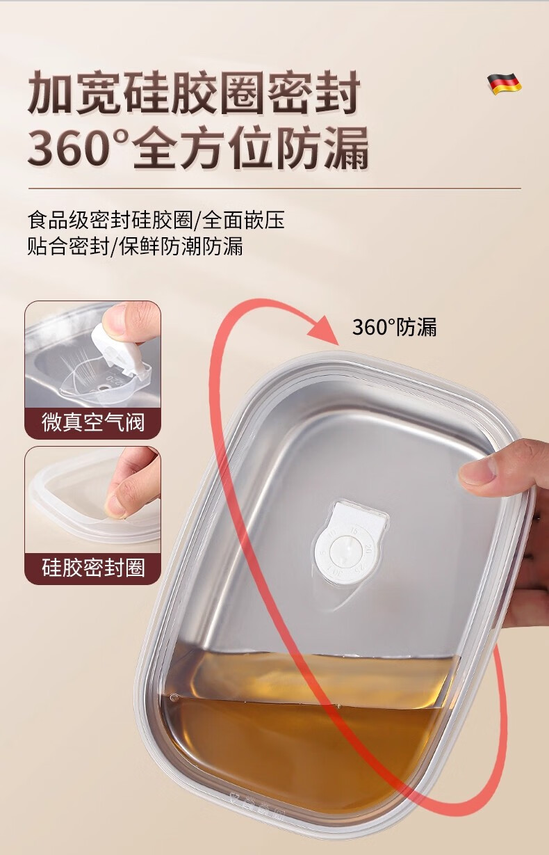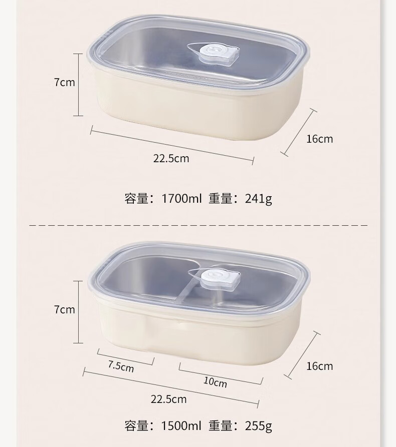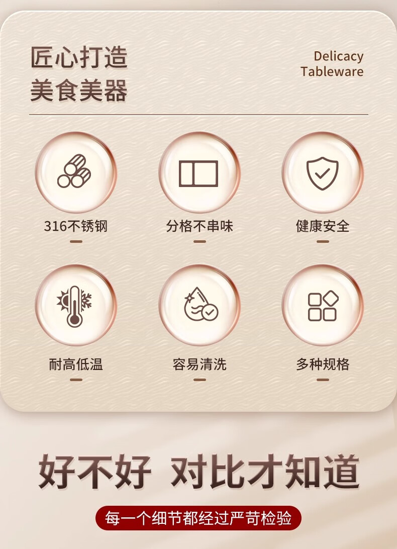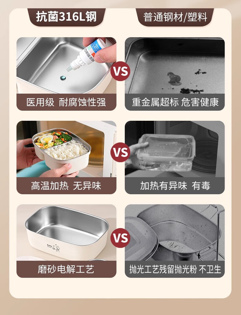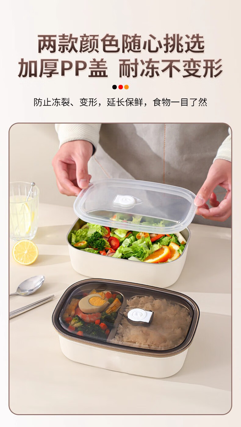 百亿熊316L不锈钢分隔饭盒抗菌上班族学生带饭微波炉加热便当餐盒多层 双格 1500ml