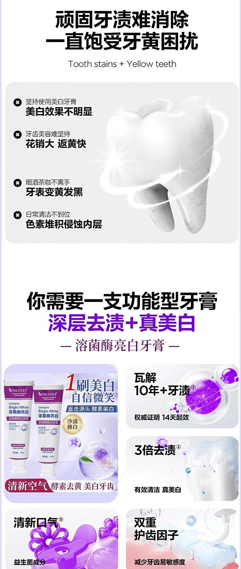 TR 10100g去渍清新口气牙膏 100g溶酶菌亮白牙膏