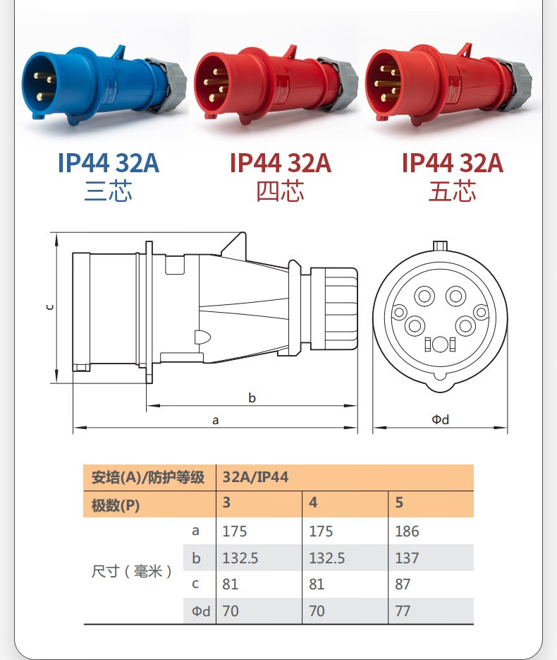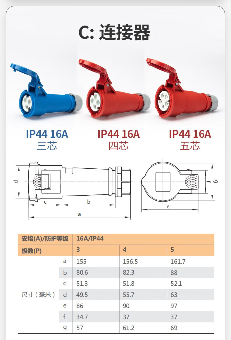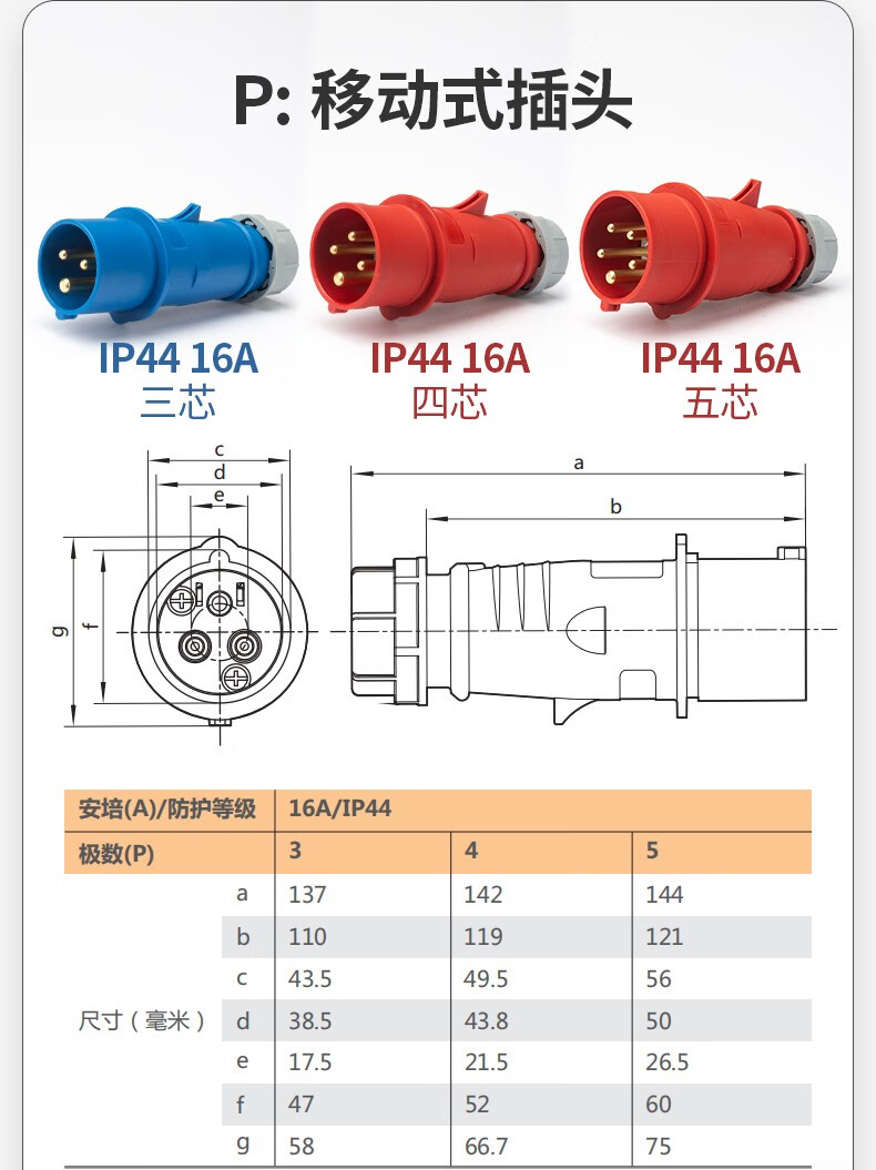 正泰(CHNT)航空插头 工业插头公母对接插座连接器 三相电380V大功率防水插头 220V插头 3芯 16A
