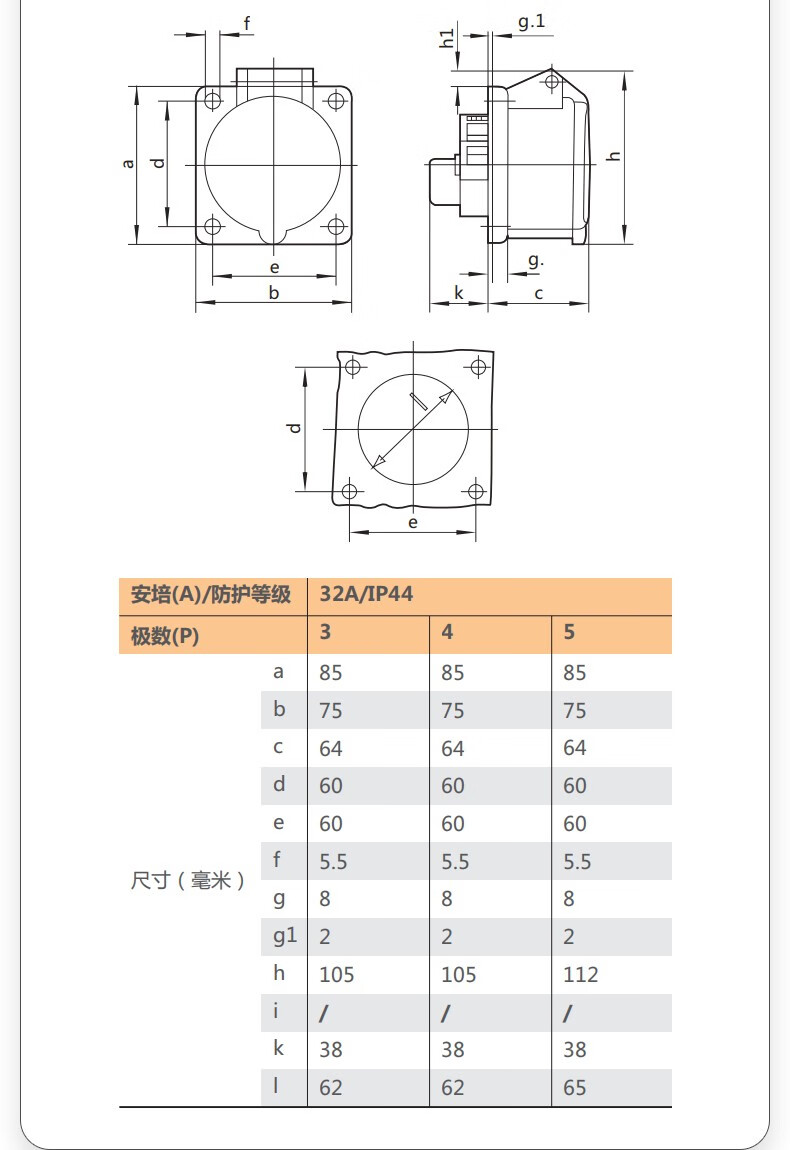 NVC雷士电工 开关插座 10a斜五孔插座 86型暗装插座面板 N25奶油白