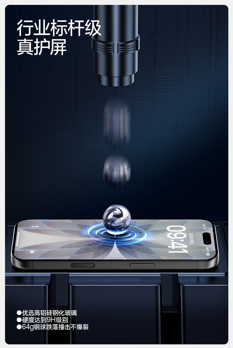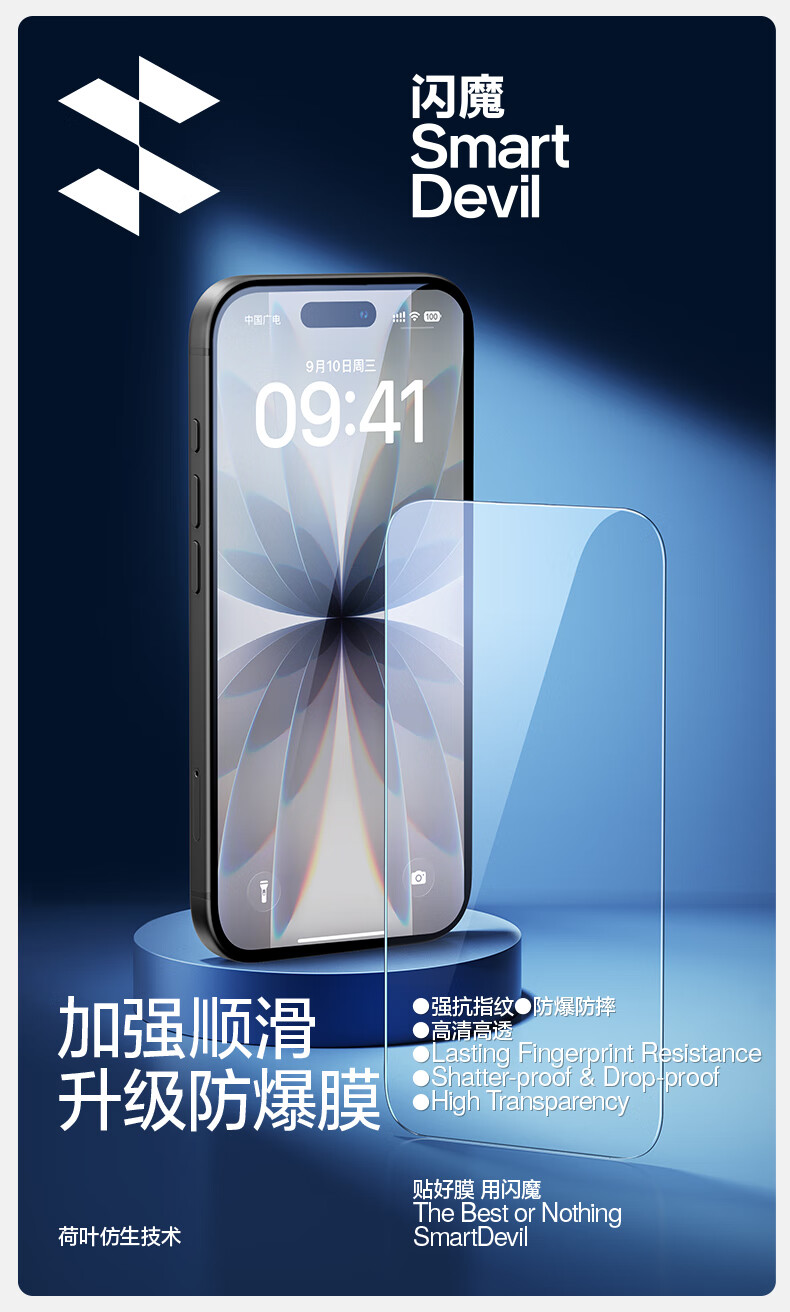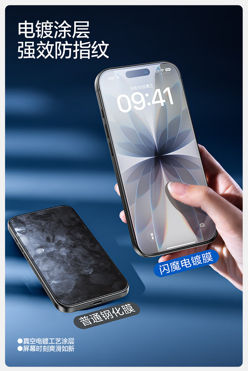 闪魔【京配包邮】适用iPhone17钢化膜苹果17手机膜高清防爆防摔抗指纹非全屏贴膜2片装